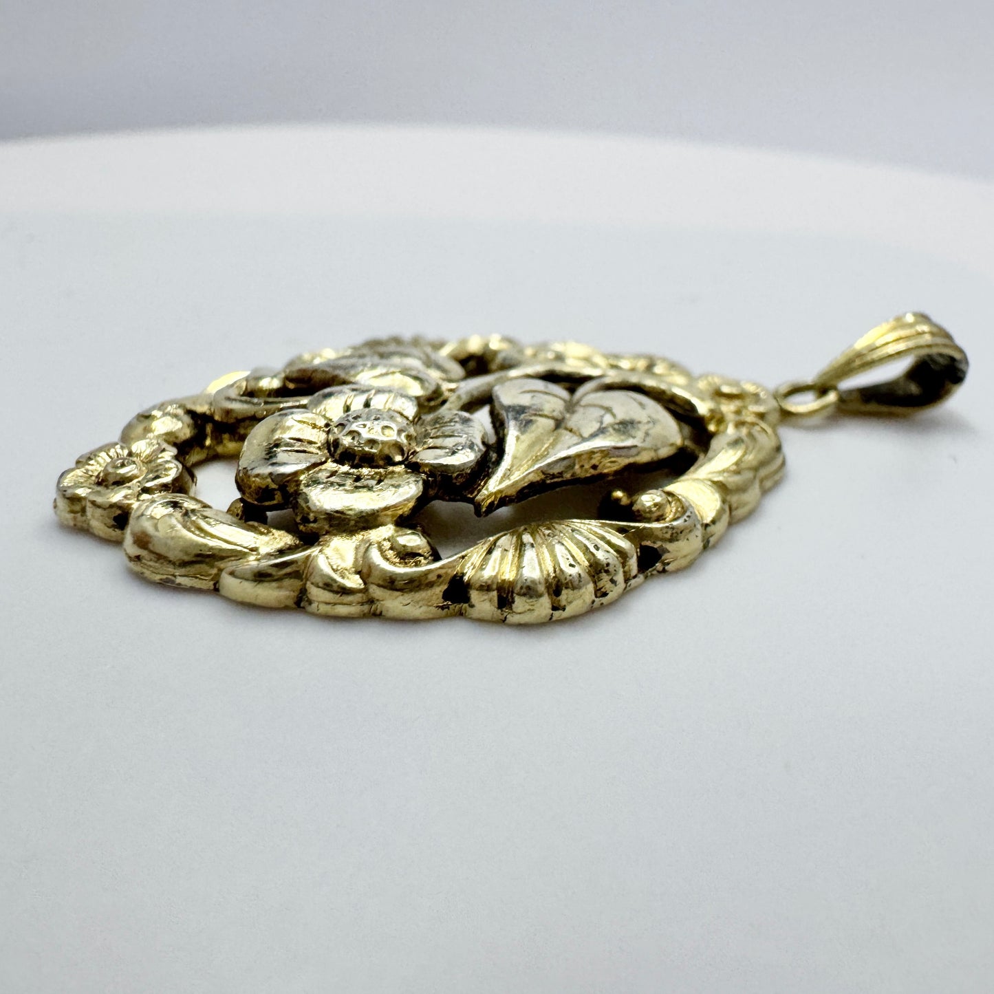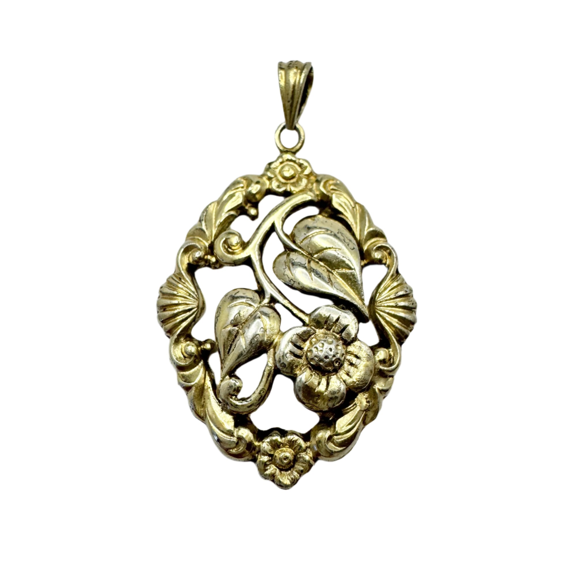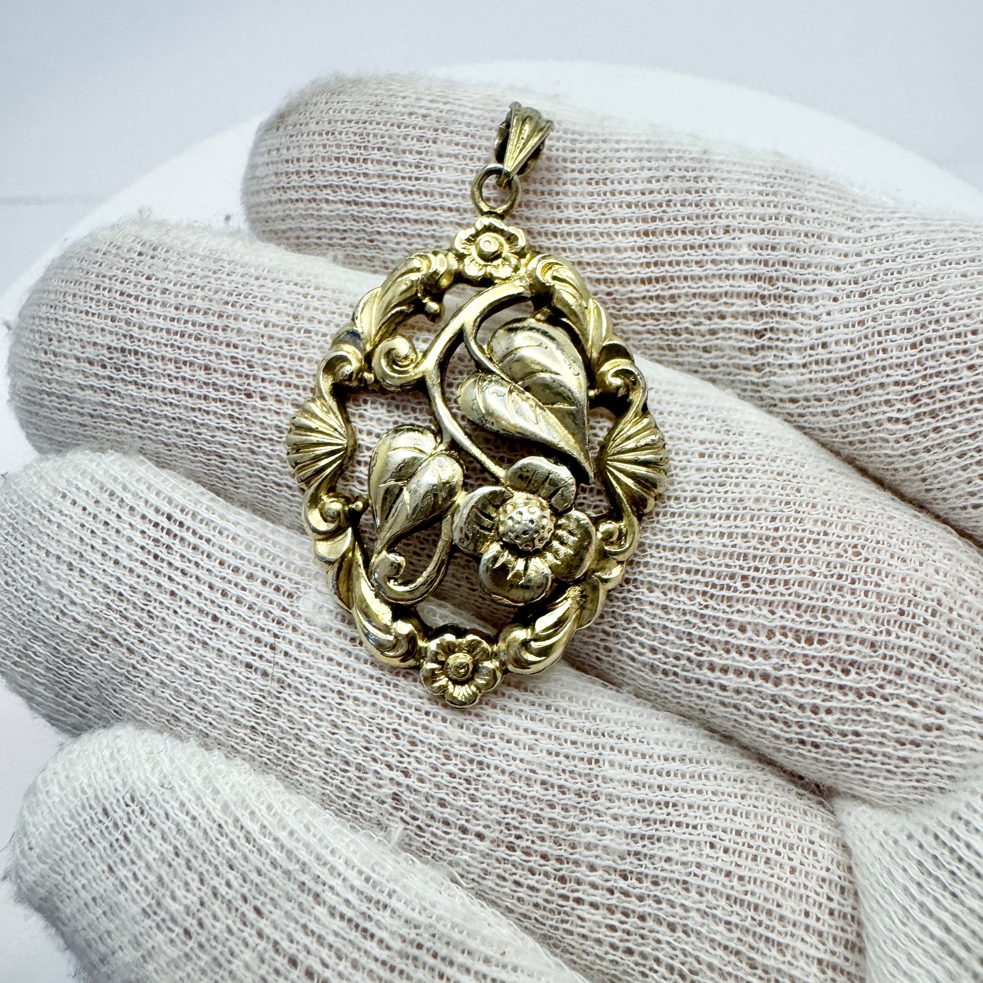 G Dahlgren, Sweden 1947. Vintage Gilt Slid Silver Floral Pendant.