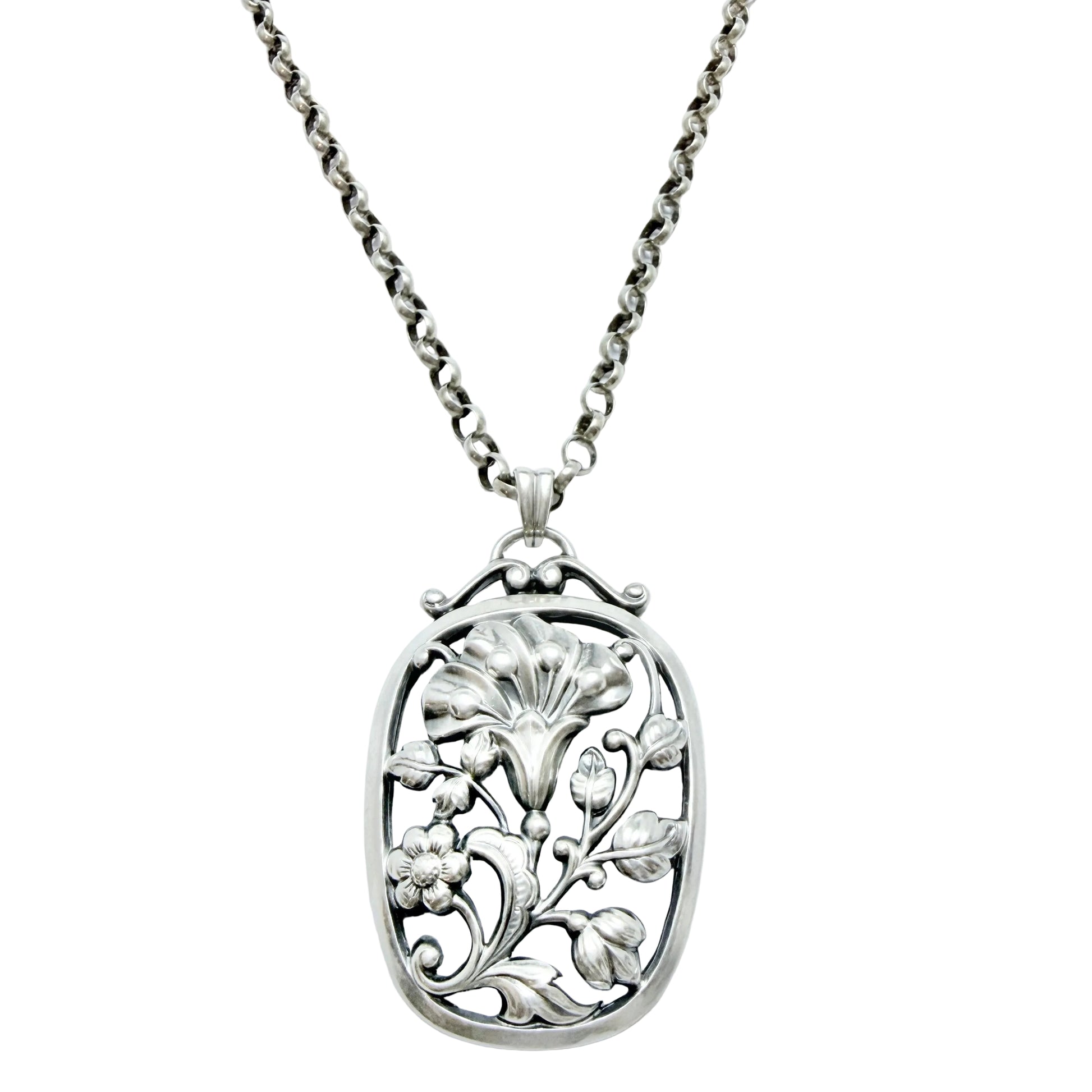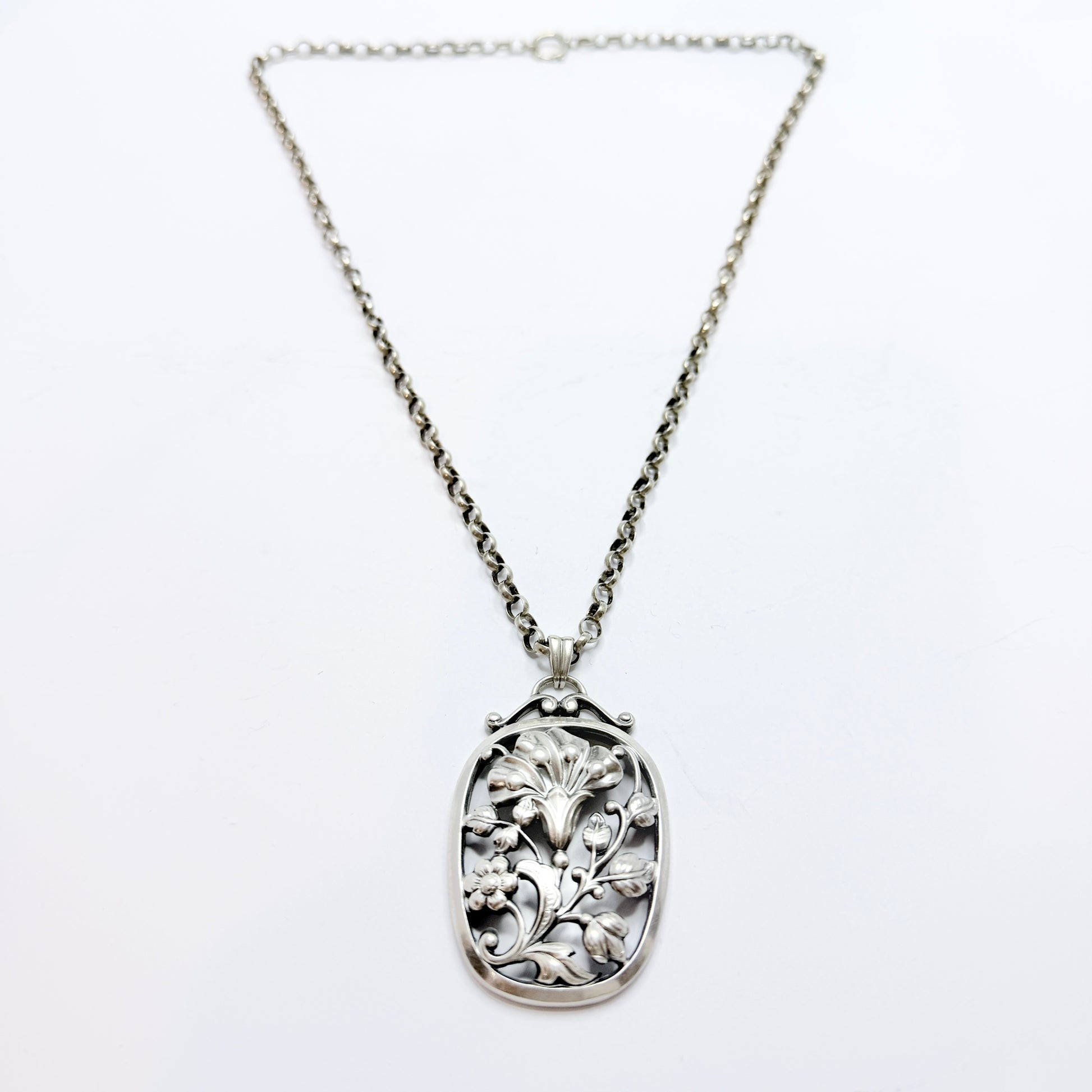 Wonderful vintage sterling silver floral pendant necklace. Pendant hallmarked for G Dahlgren, Sweden year 1947. Chain is unmarked and older with hand soldered loops.