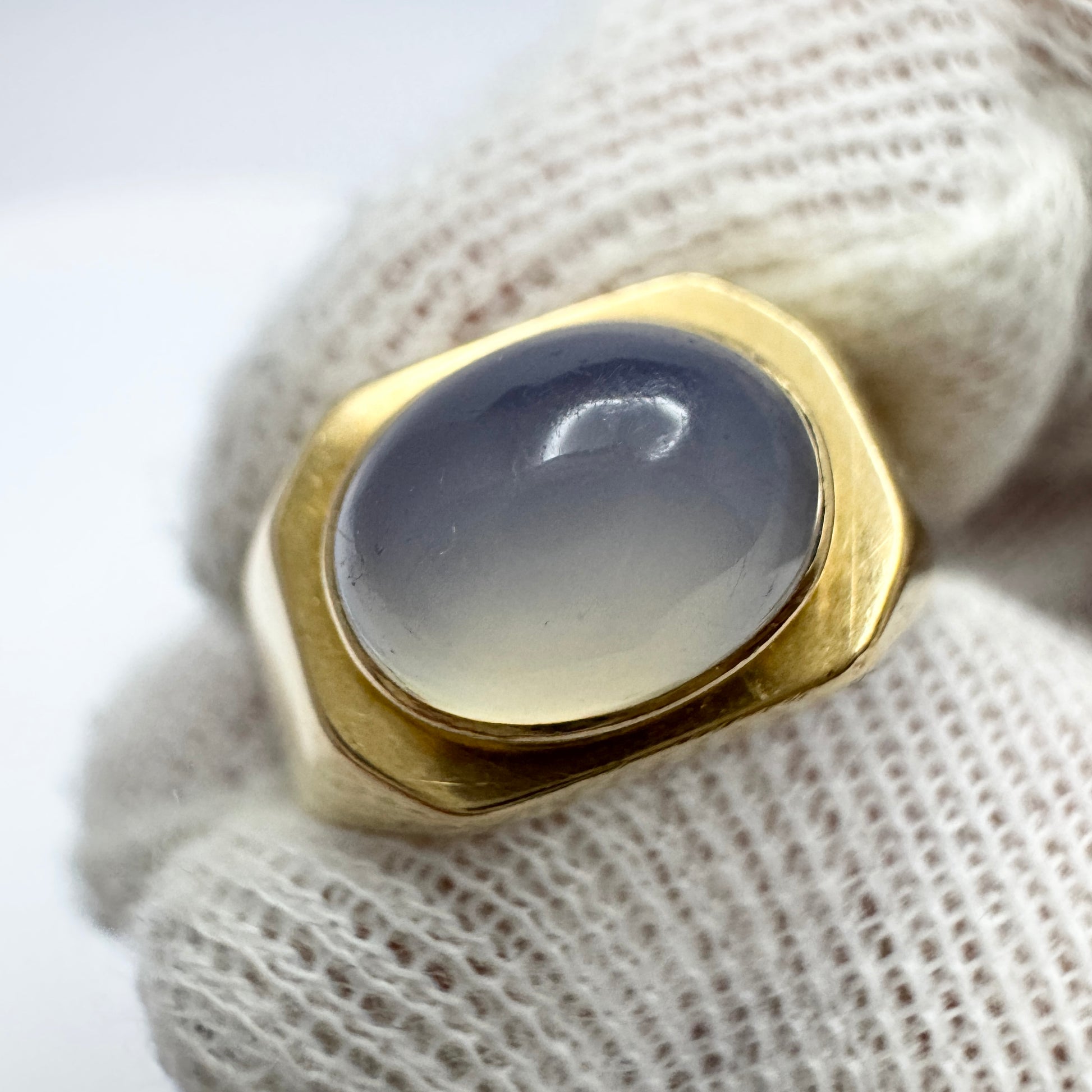G Dahlgren, Sweden 1957. Vintage 18k Gold Chalcedony Ring.
