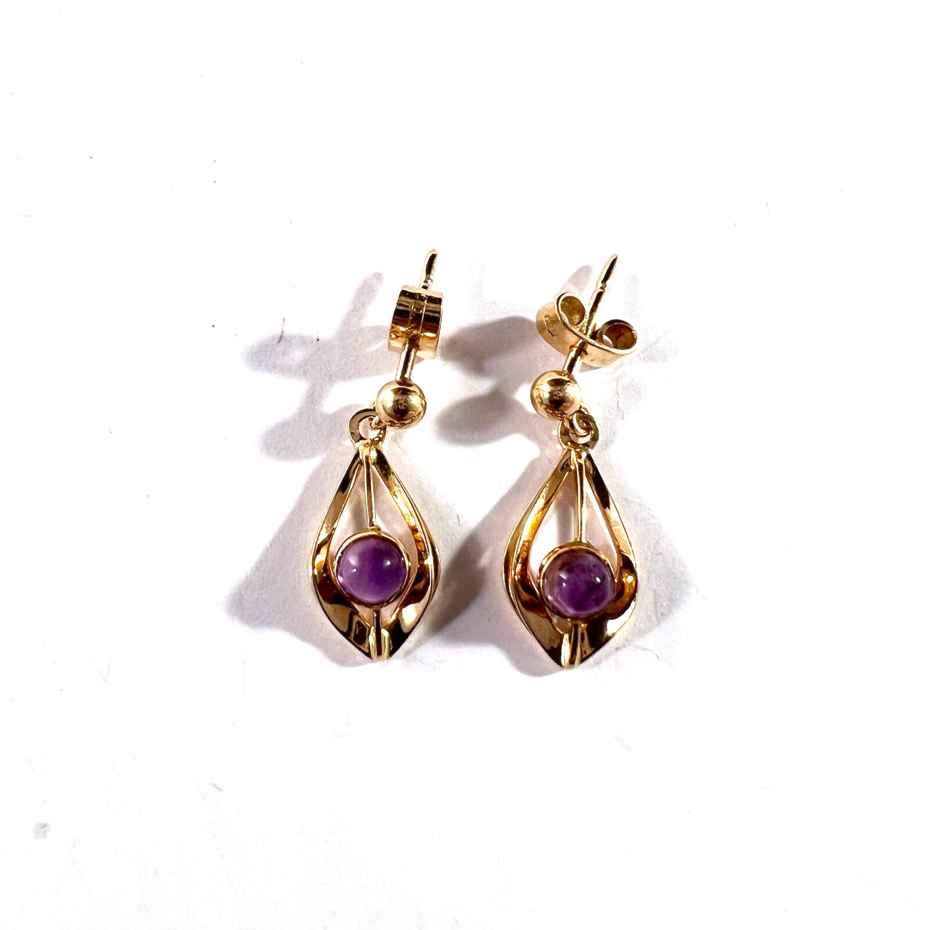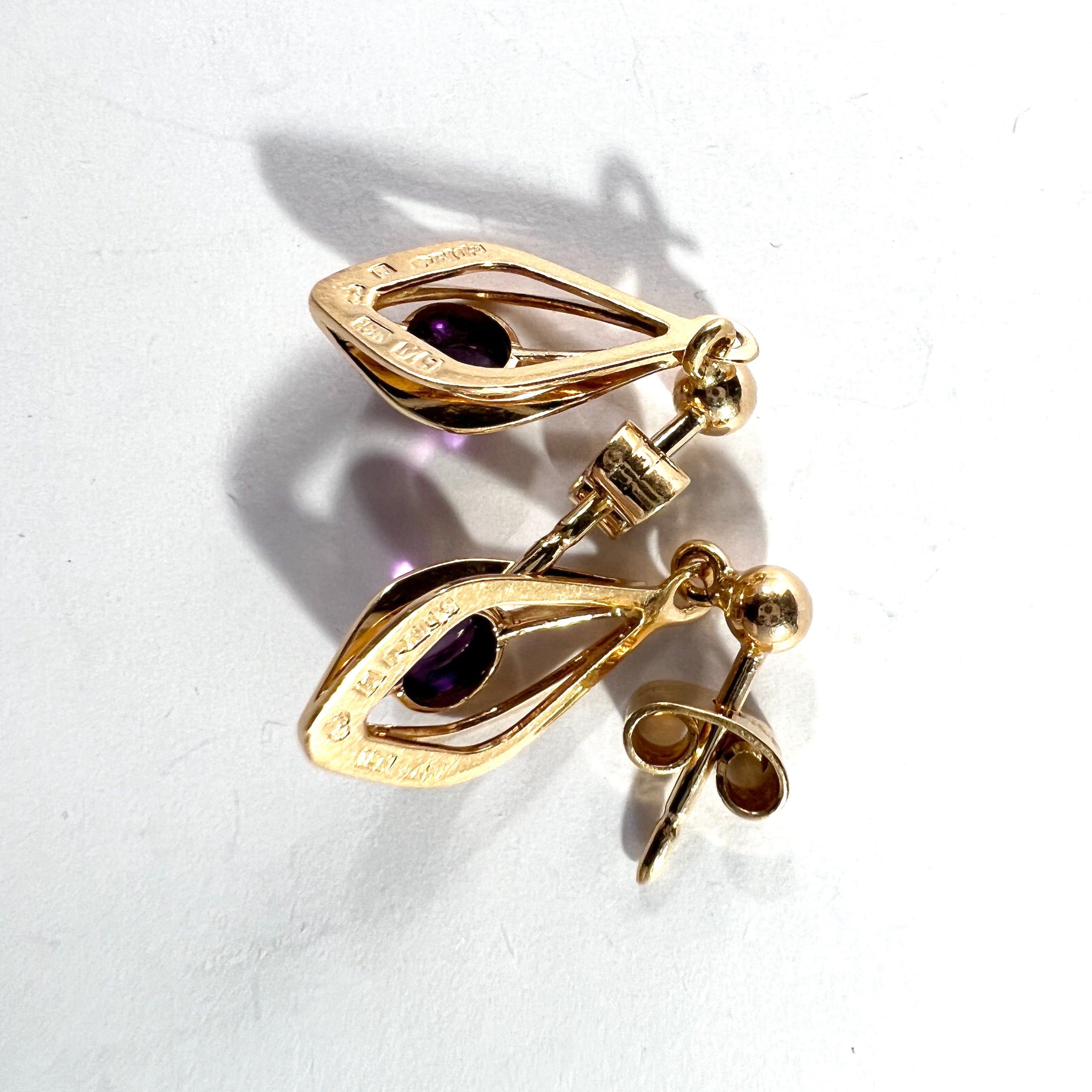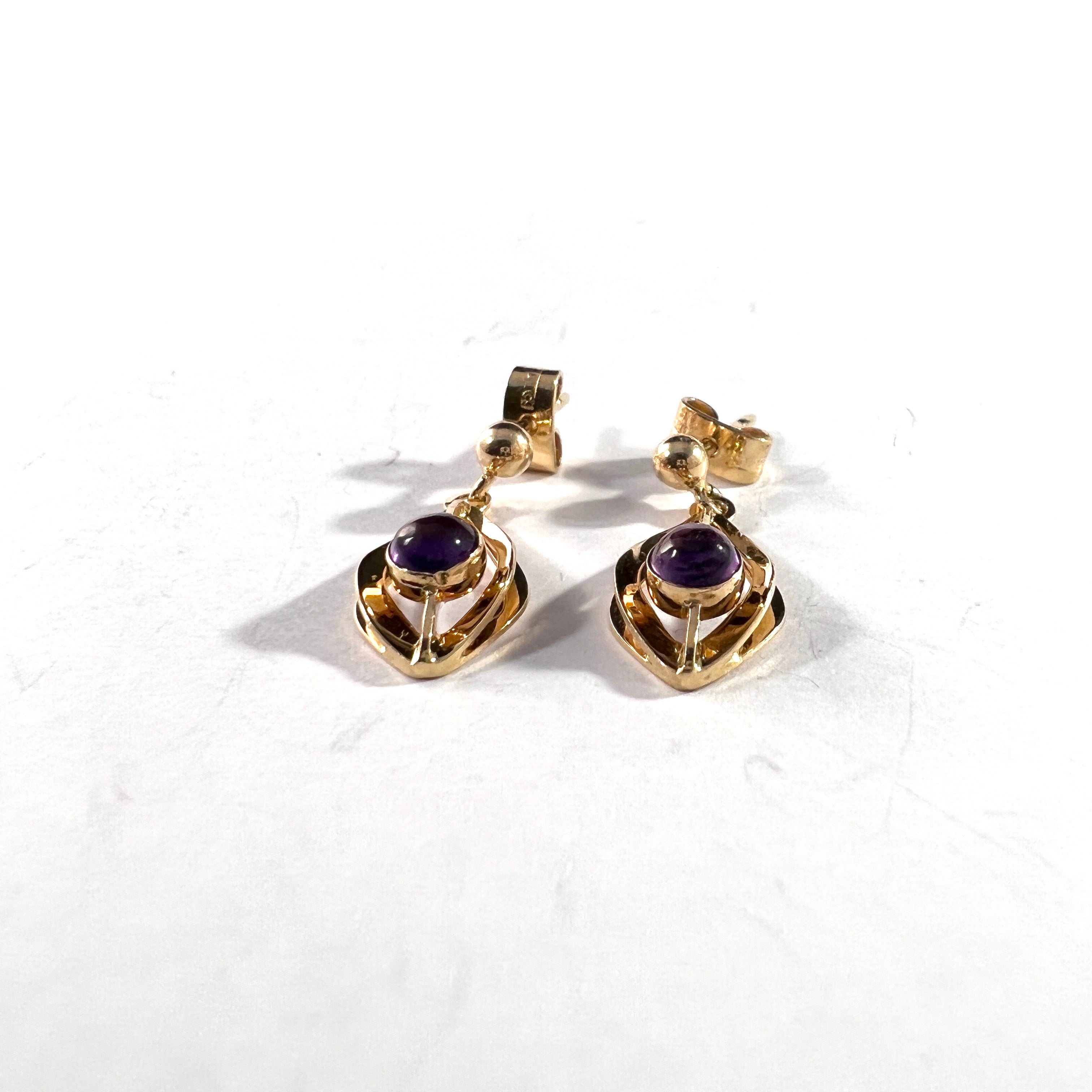 G Dahlgren, Sweden 1962. Vintage Mid-Century 18k Gold Amethyst Earrings.
