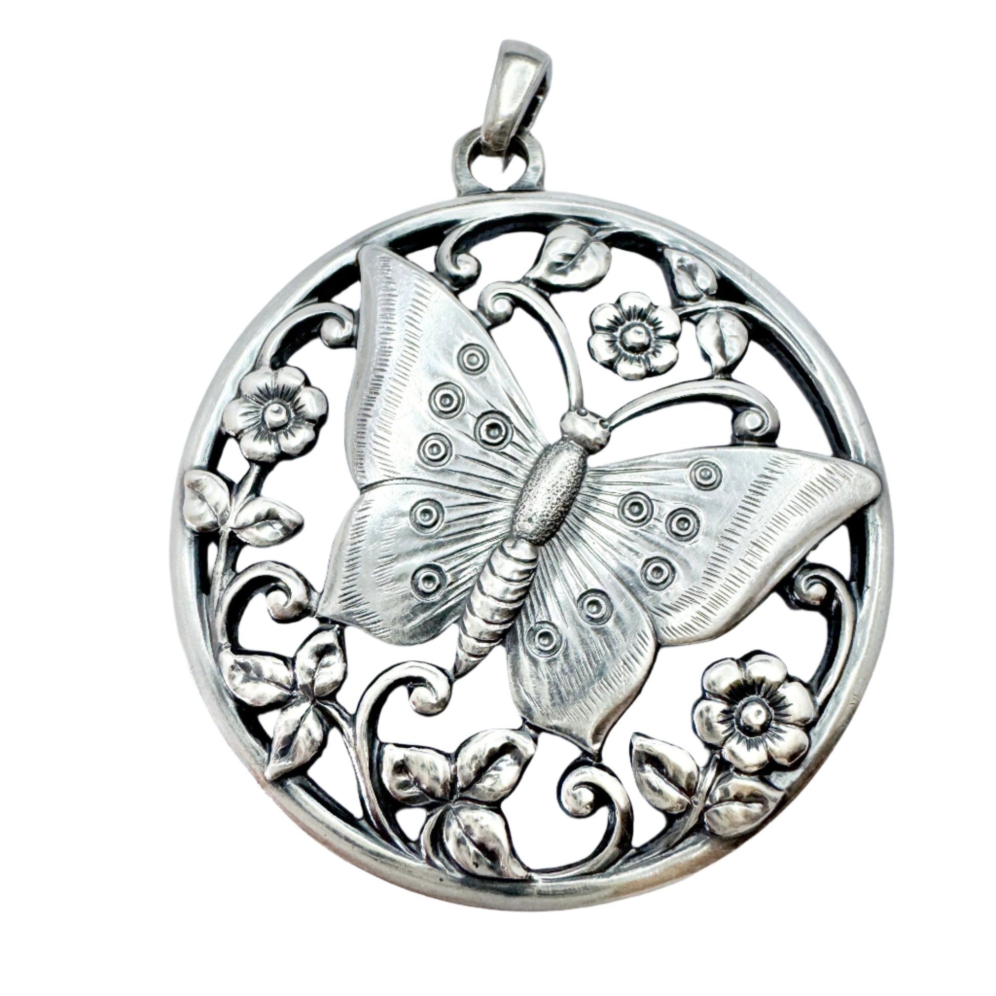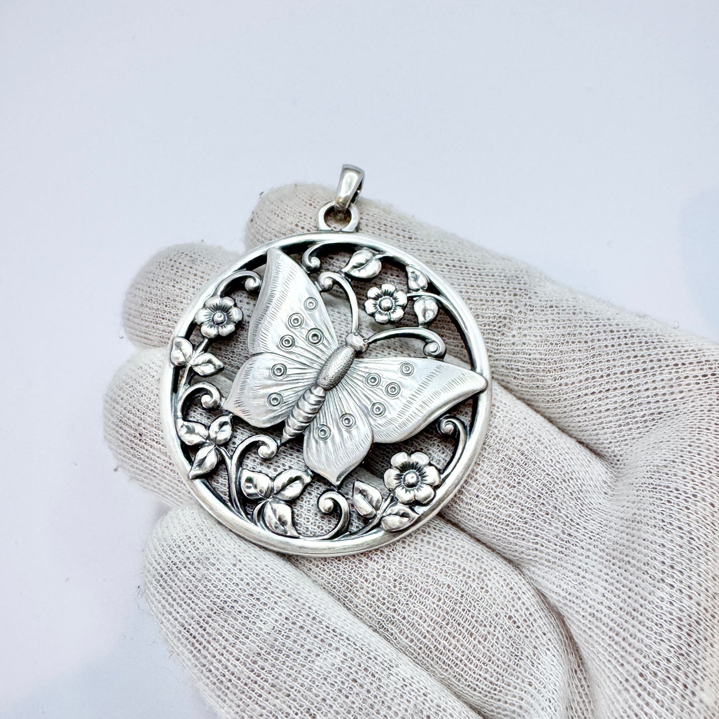 G Dahlgren, Sweden year 1950. Vintage Large Solid Silver Butterfly Pendant.