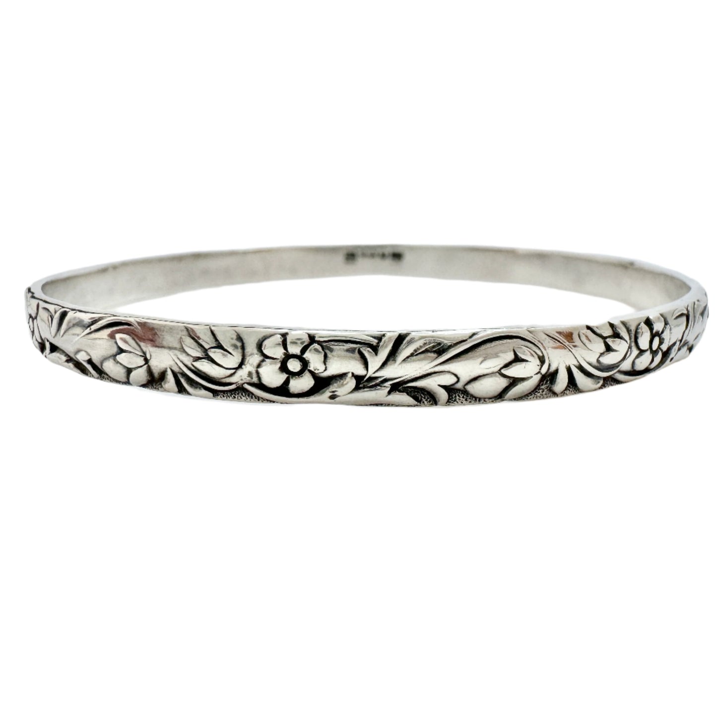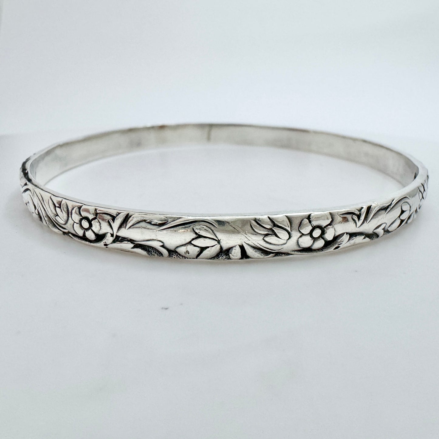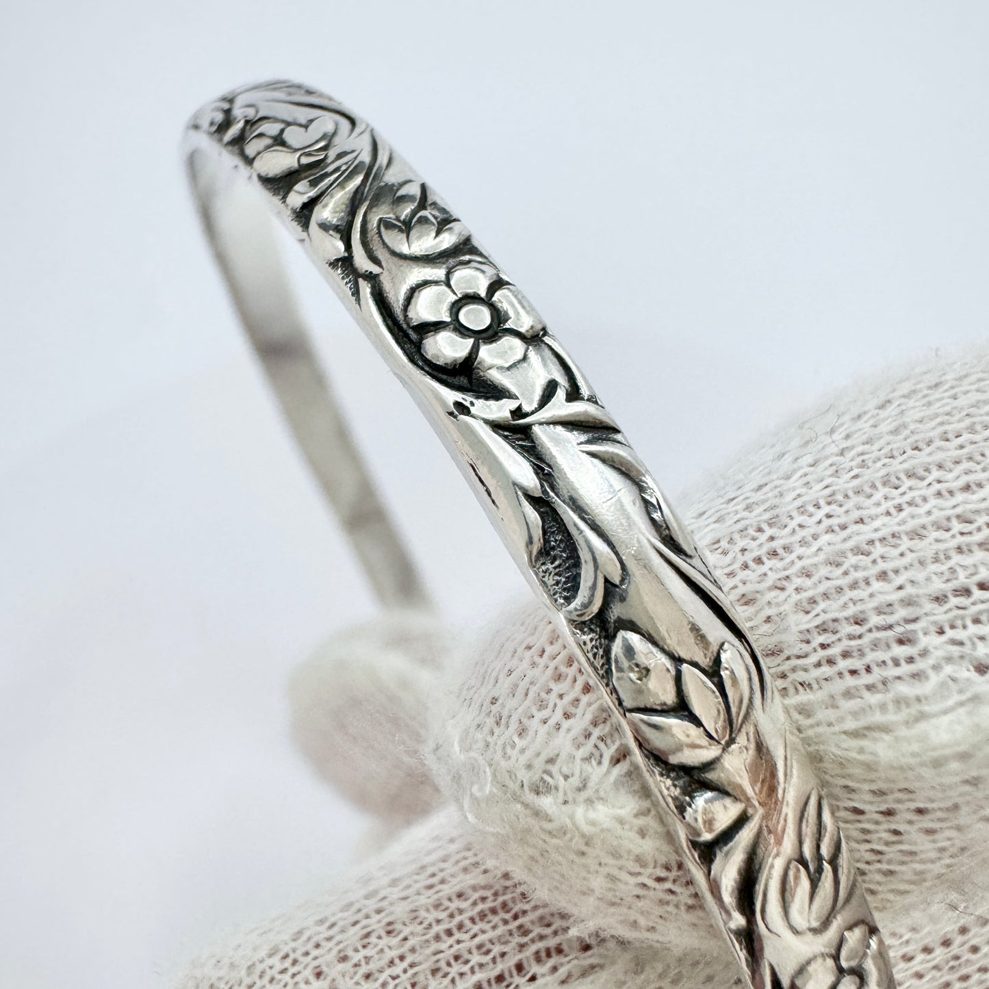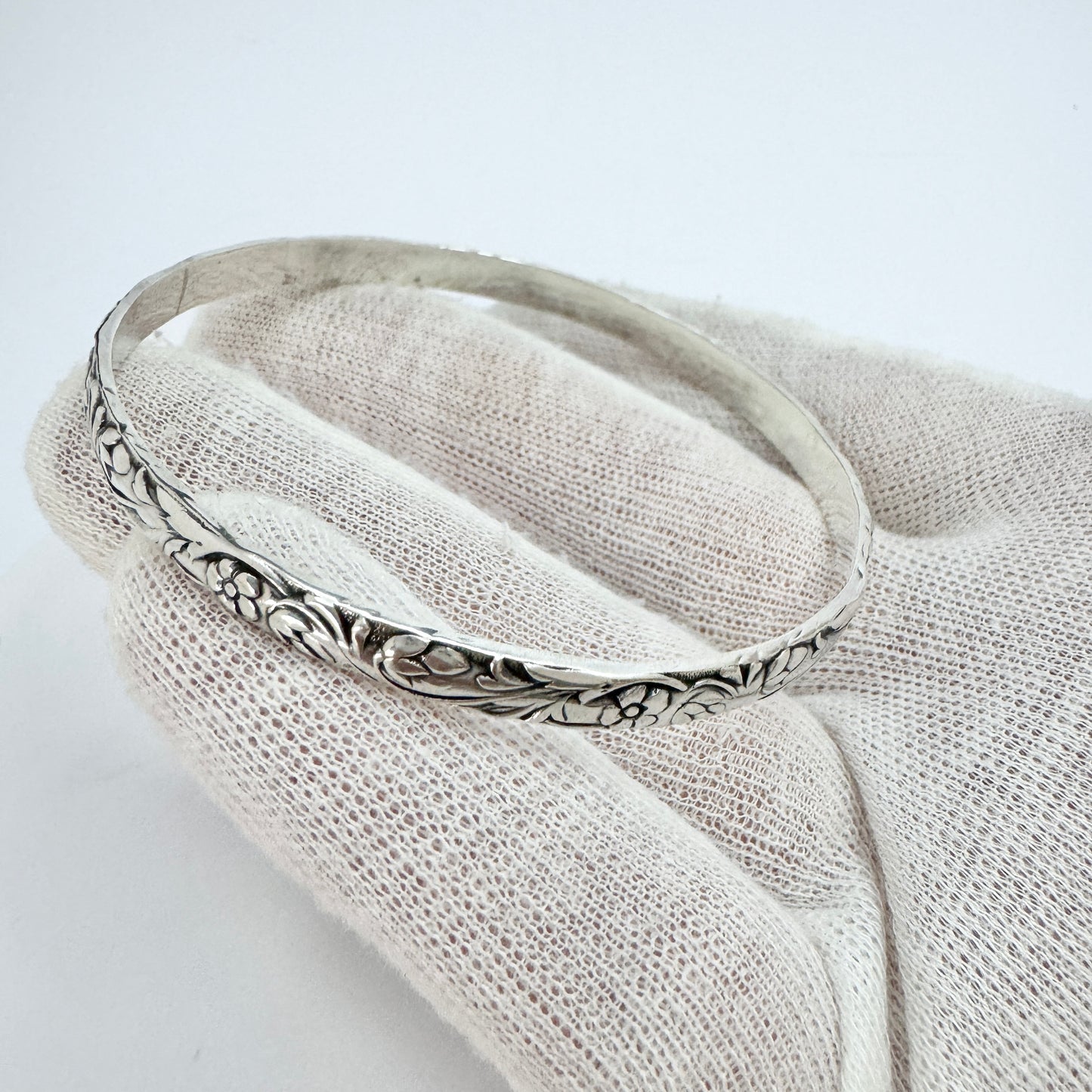 G Kaplan, Sweden year 1960. Vintage Sterling Silver Floral Bangle Bracelet.