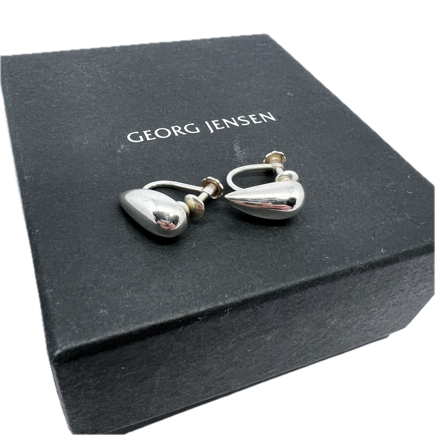 Beautiful vintage sterling silver pair of screw back earrings. Fully hallmarked for renowned Georg Jensen, Copenhagen Denmark. in Georg Jensen Box.