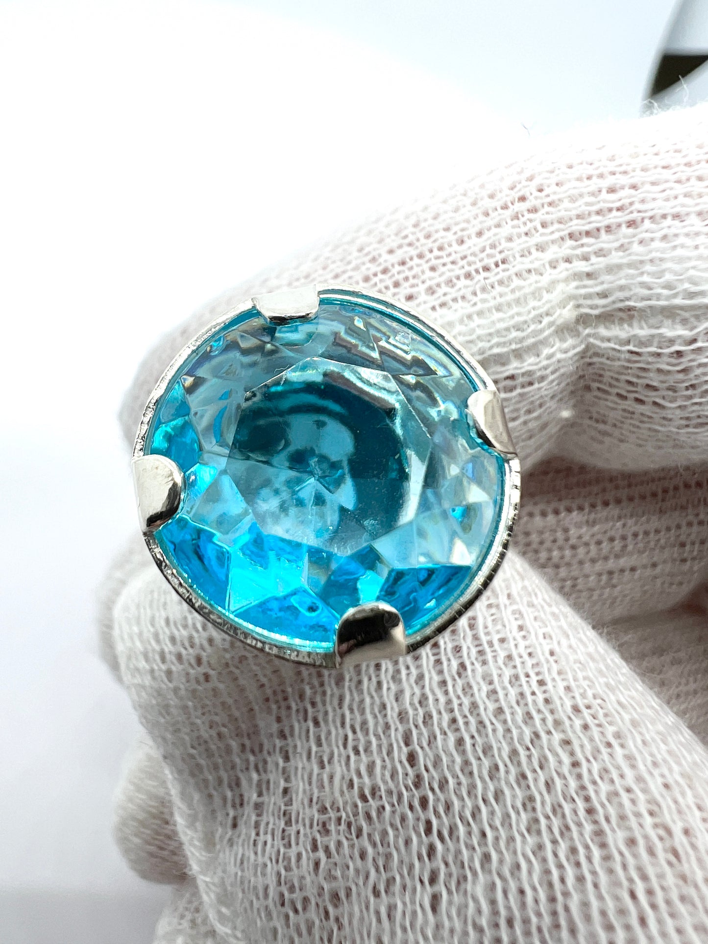 Germany 1960-70s. Solid Silver Intense Blue Glass Ring. New Old Stock. Adjustable, Pick Your Size.