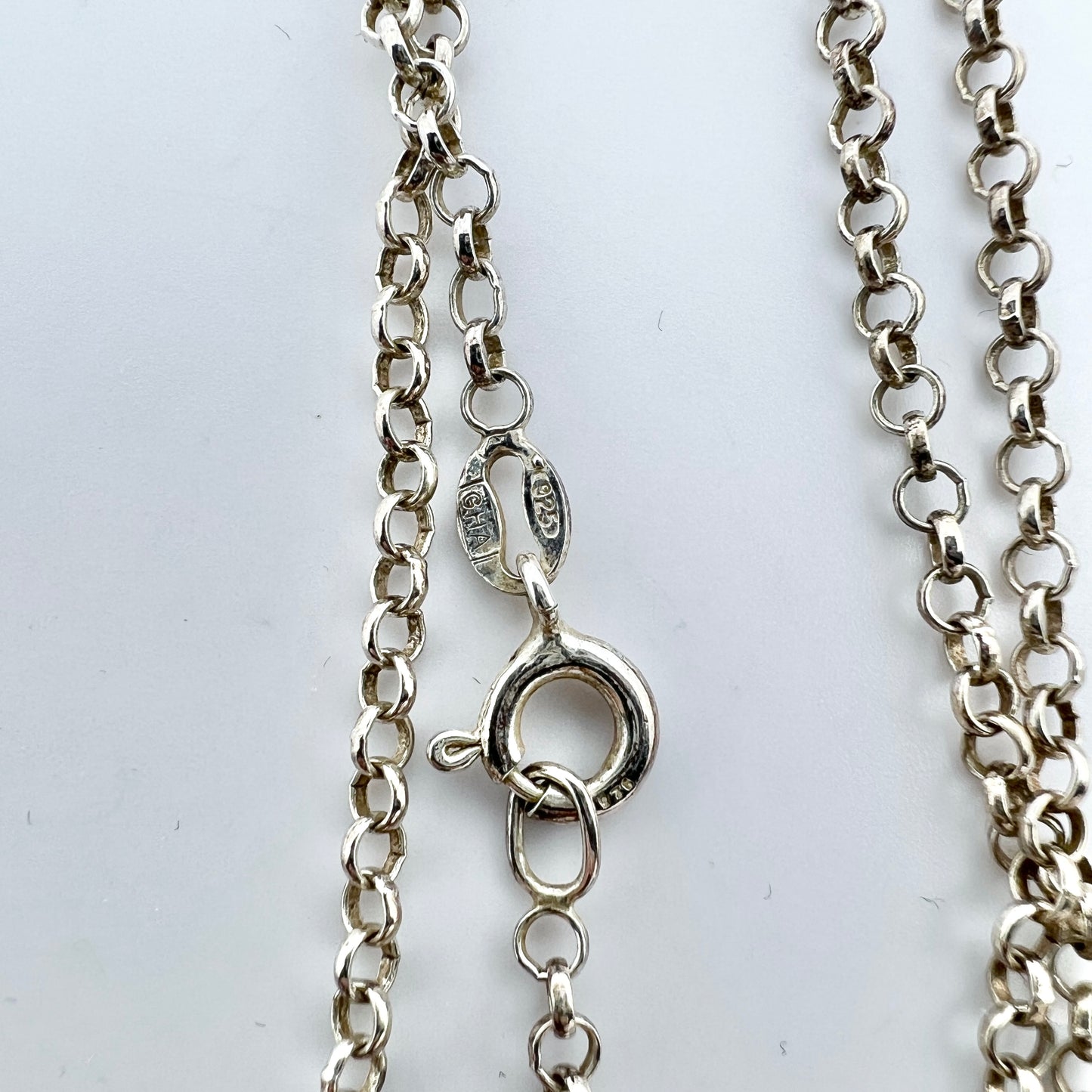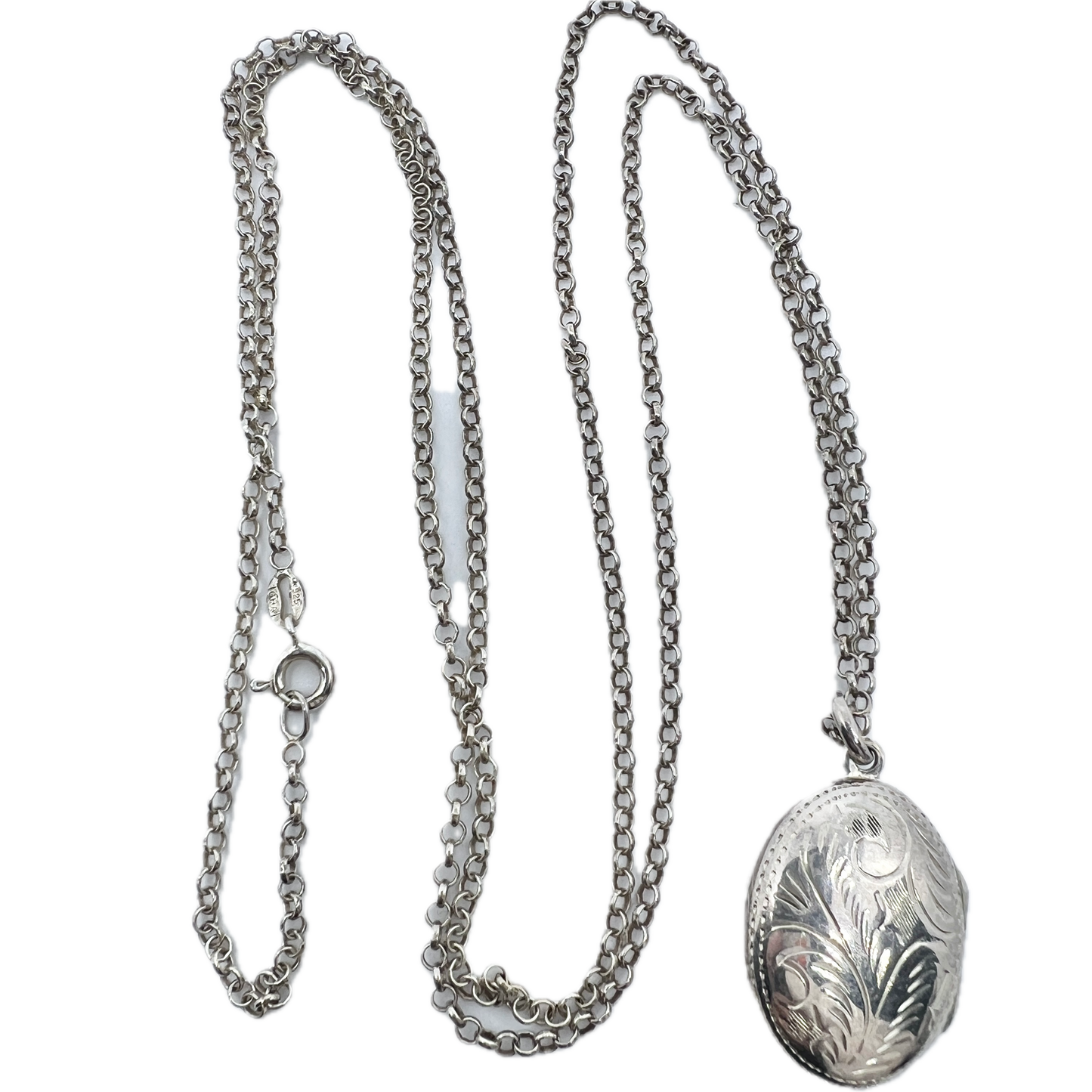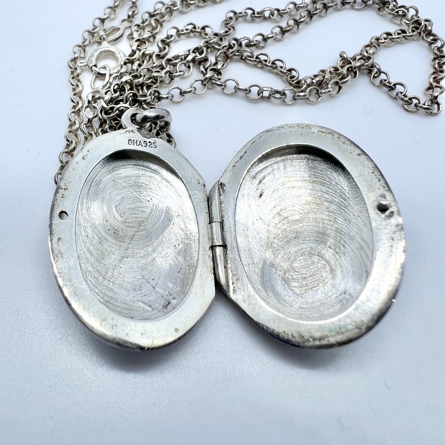 GHA, Sweden. Vintage Sterling Silver Locket Pendant 30 inch Chain Necklace.