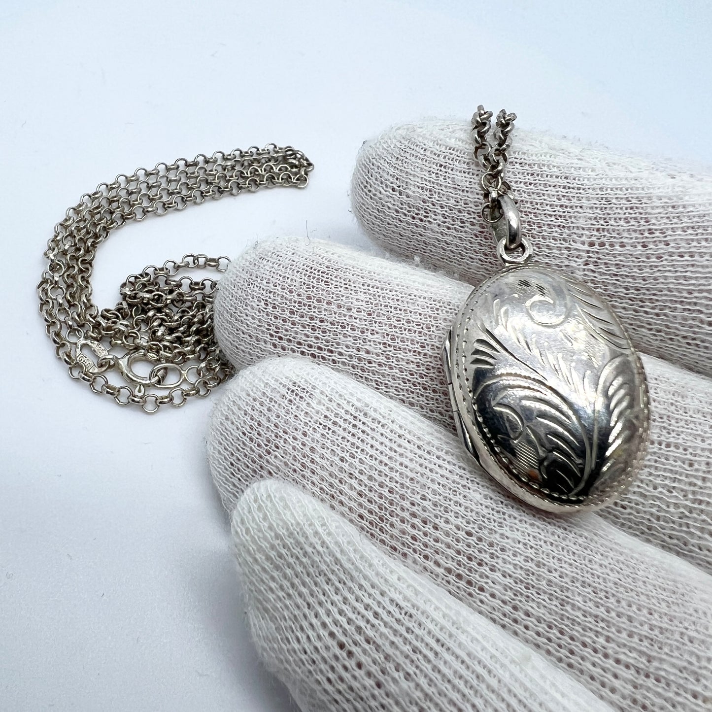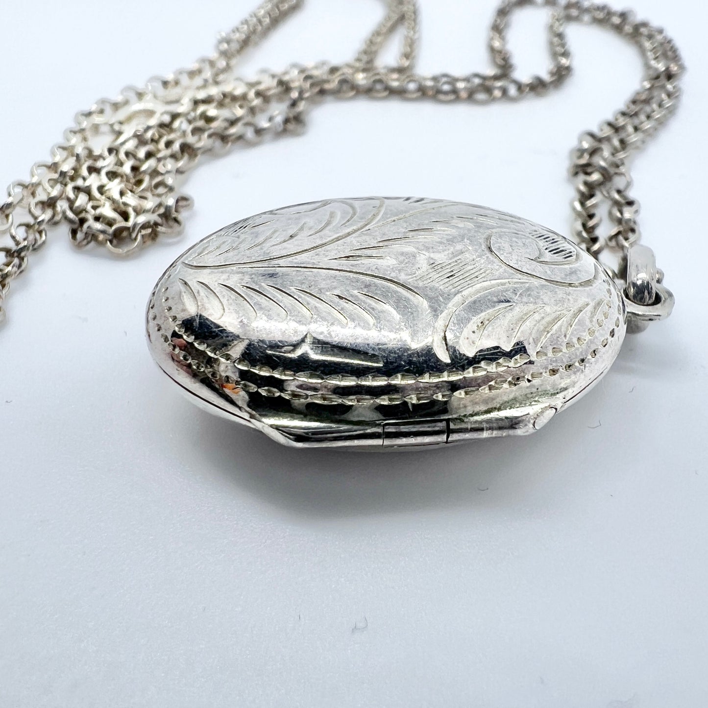 Charming vintage sterling silver locket pendant necklace. Hallmarked for GHA, Sweden, vintage.