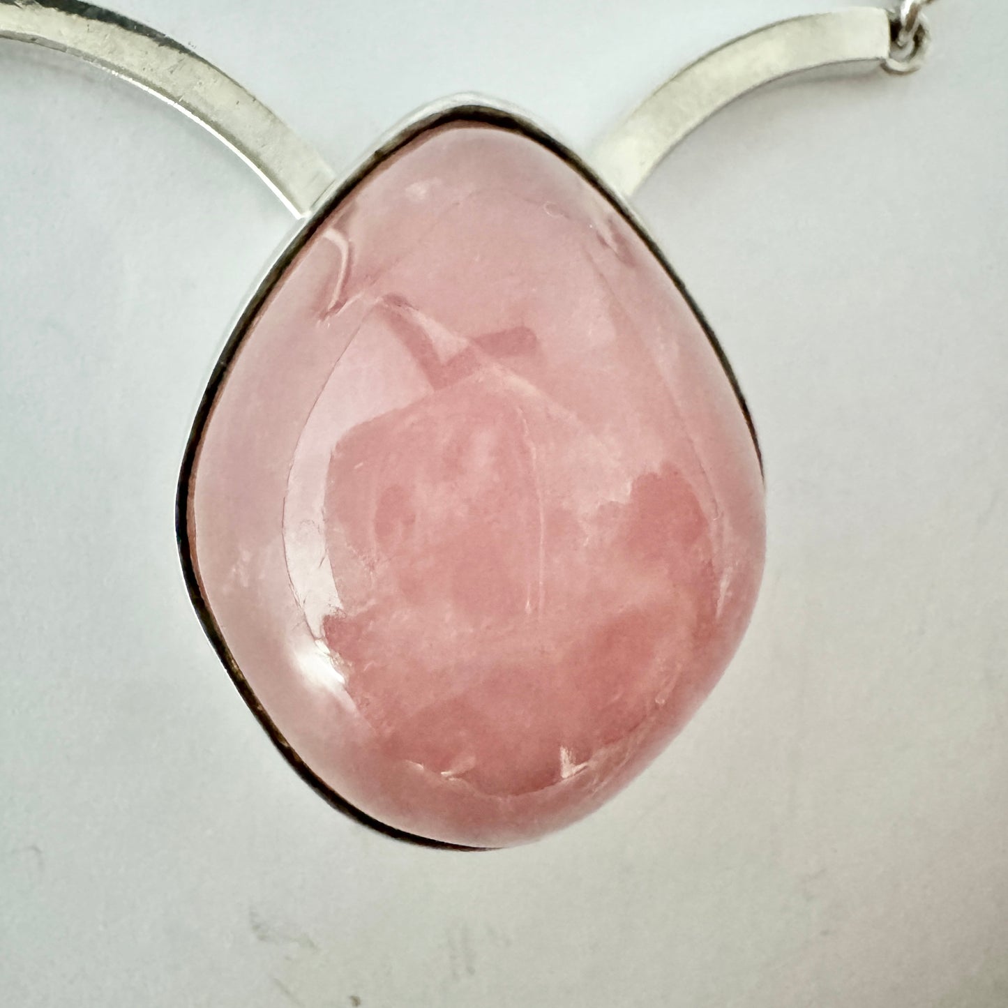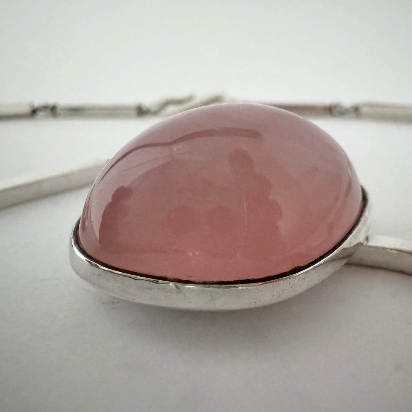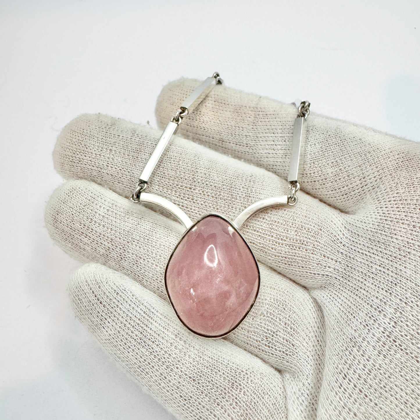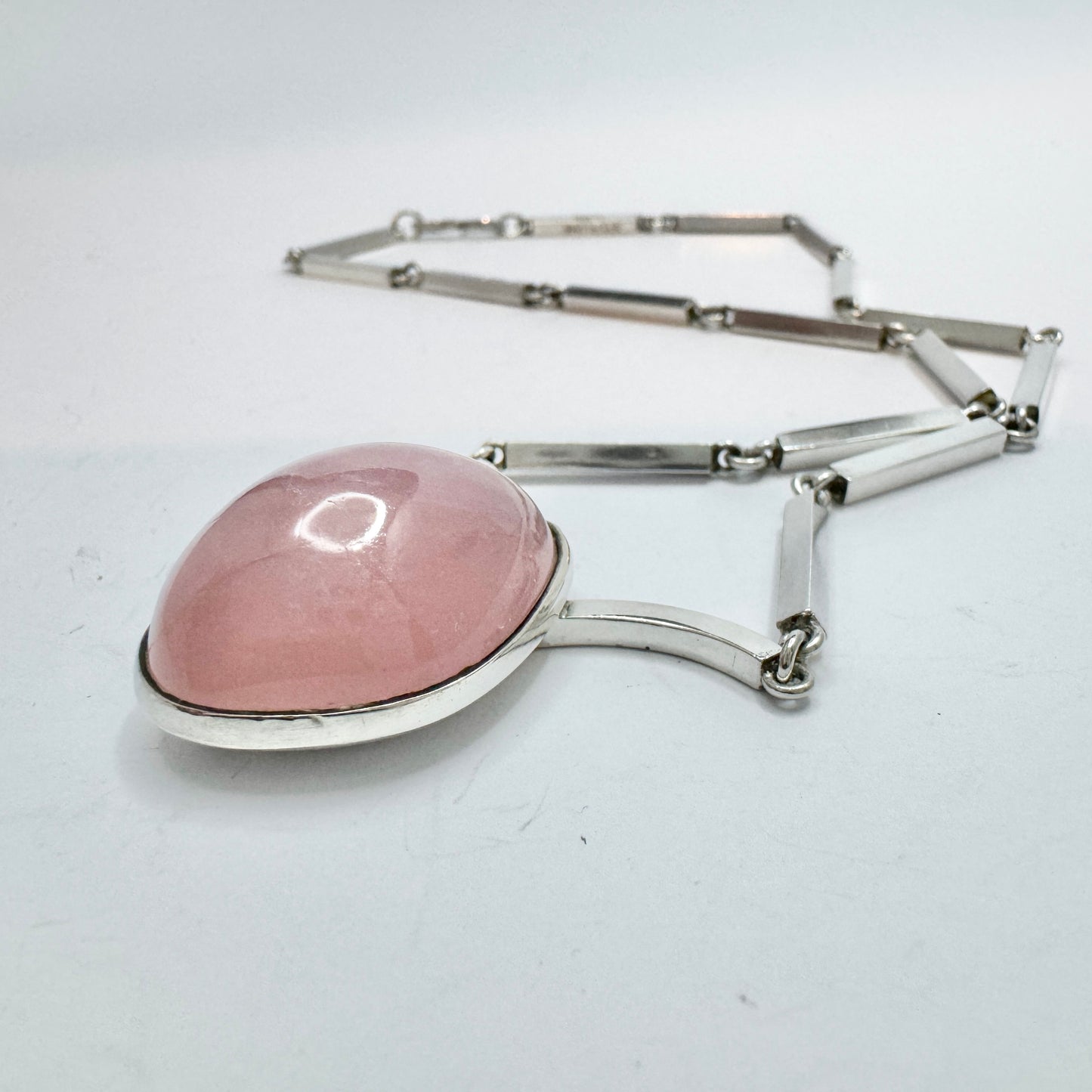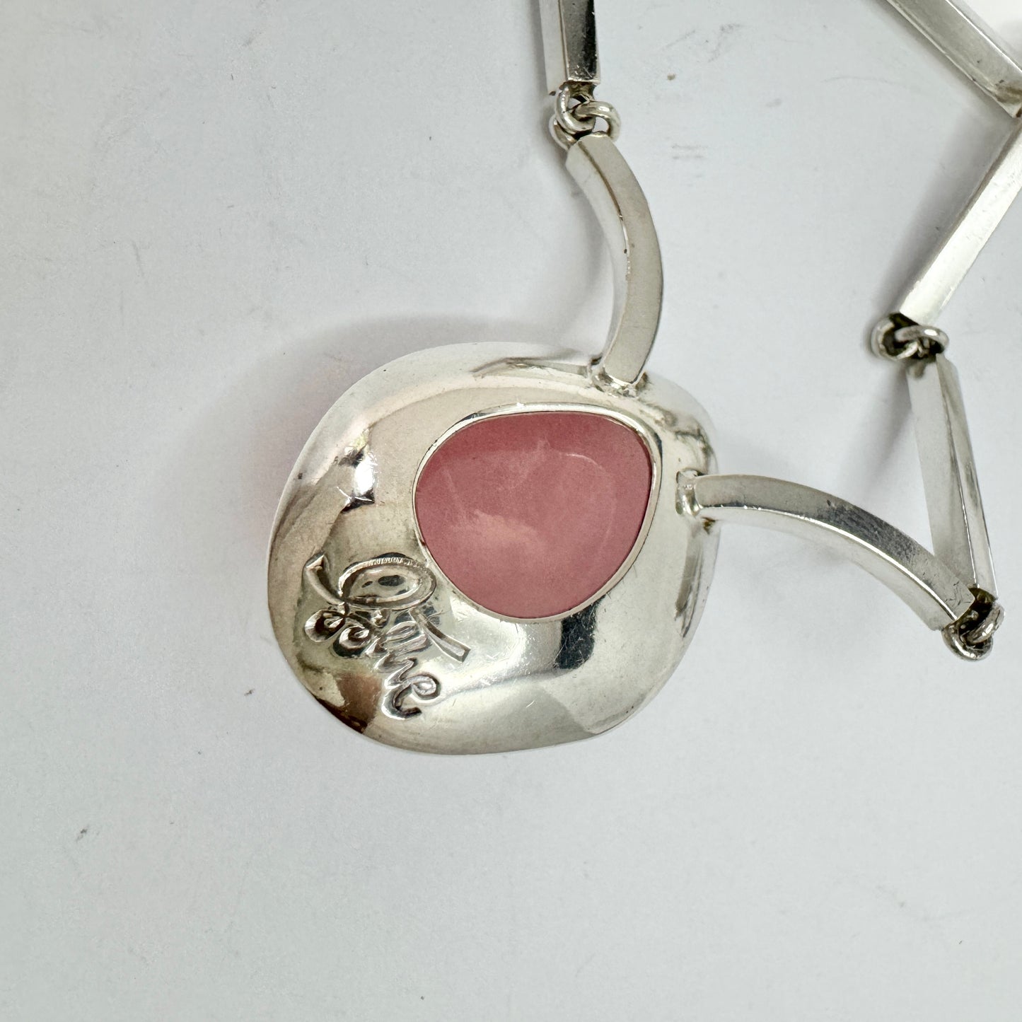 Göte Carlebjörk, Sweden 1958. Vintage Sterling Silver Rose Quartz Pendant Necklace. Signed.