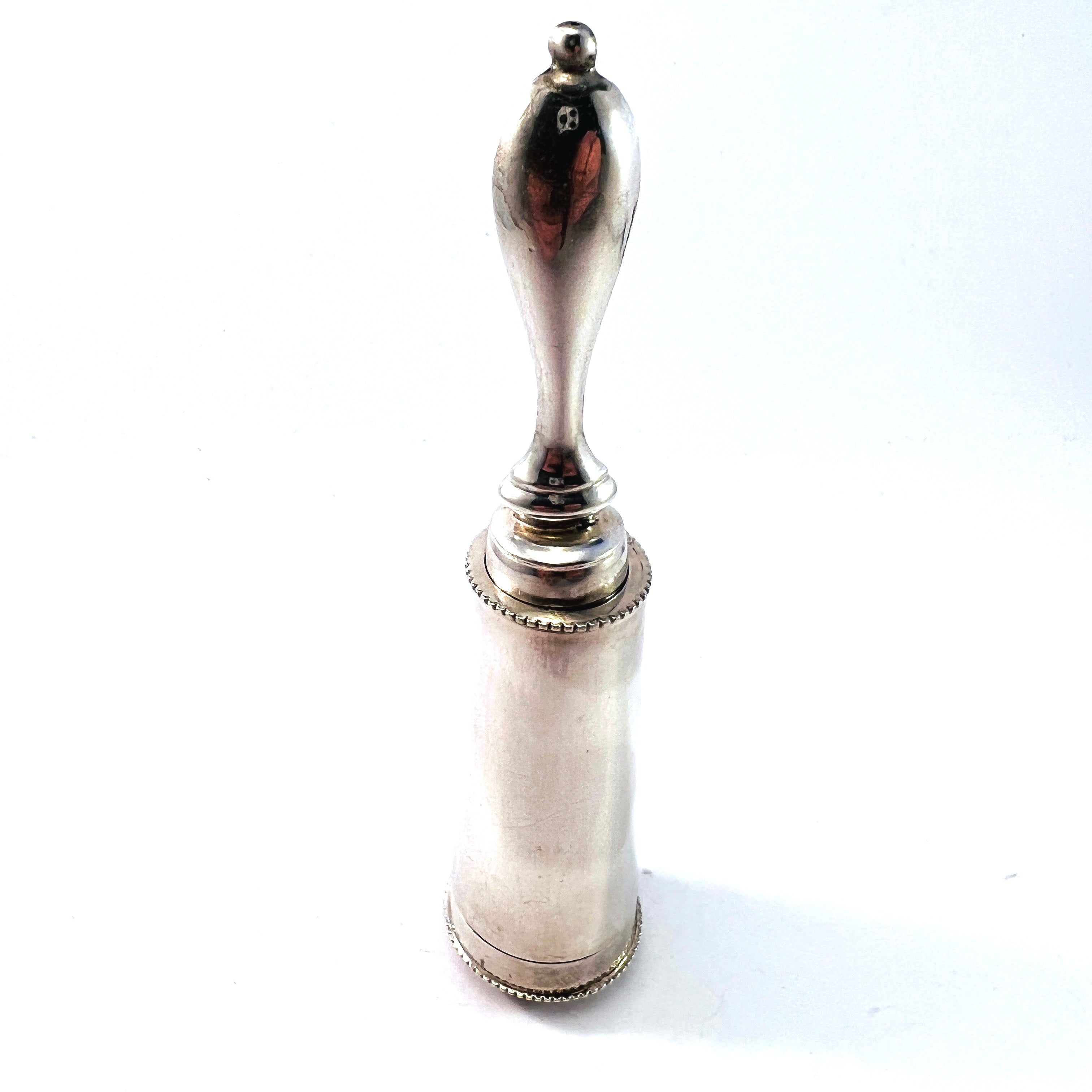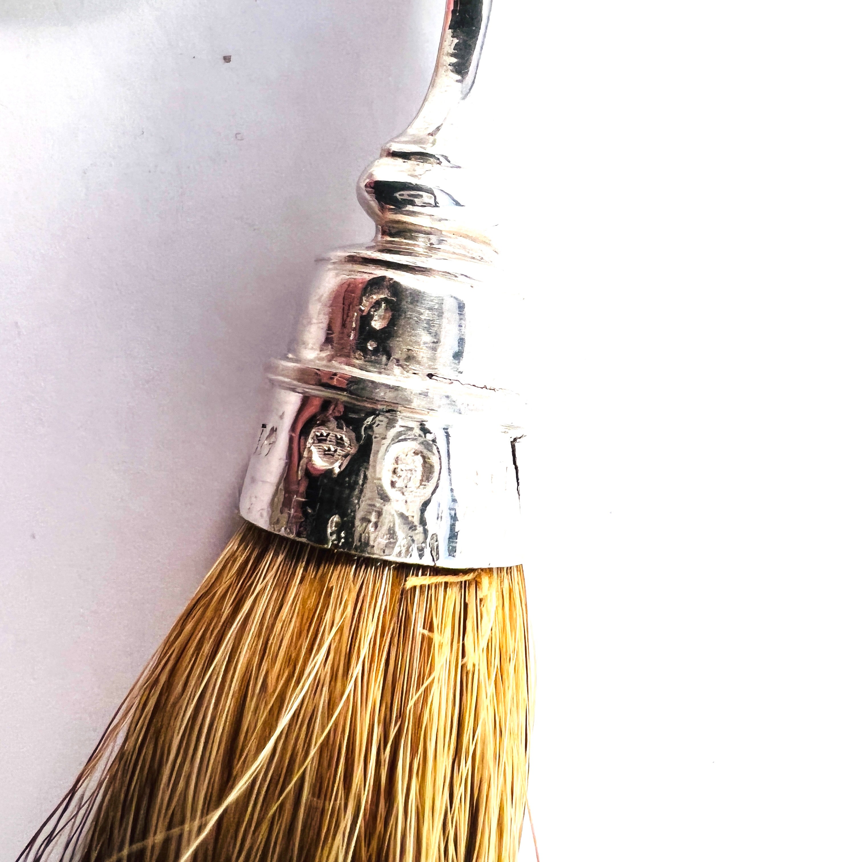 Beautiful antique early Victorian sterling silver shaving brush. Fully hallmarked for Gudtaf Flocker, Stockholm, Sweden year 1841.
