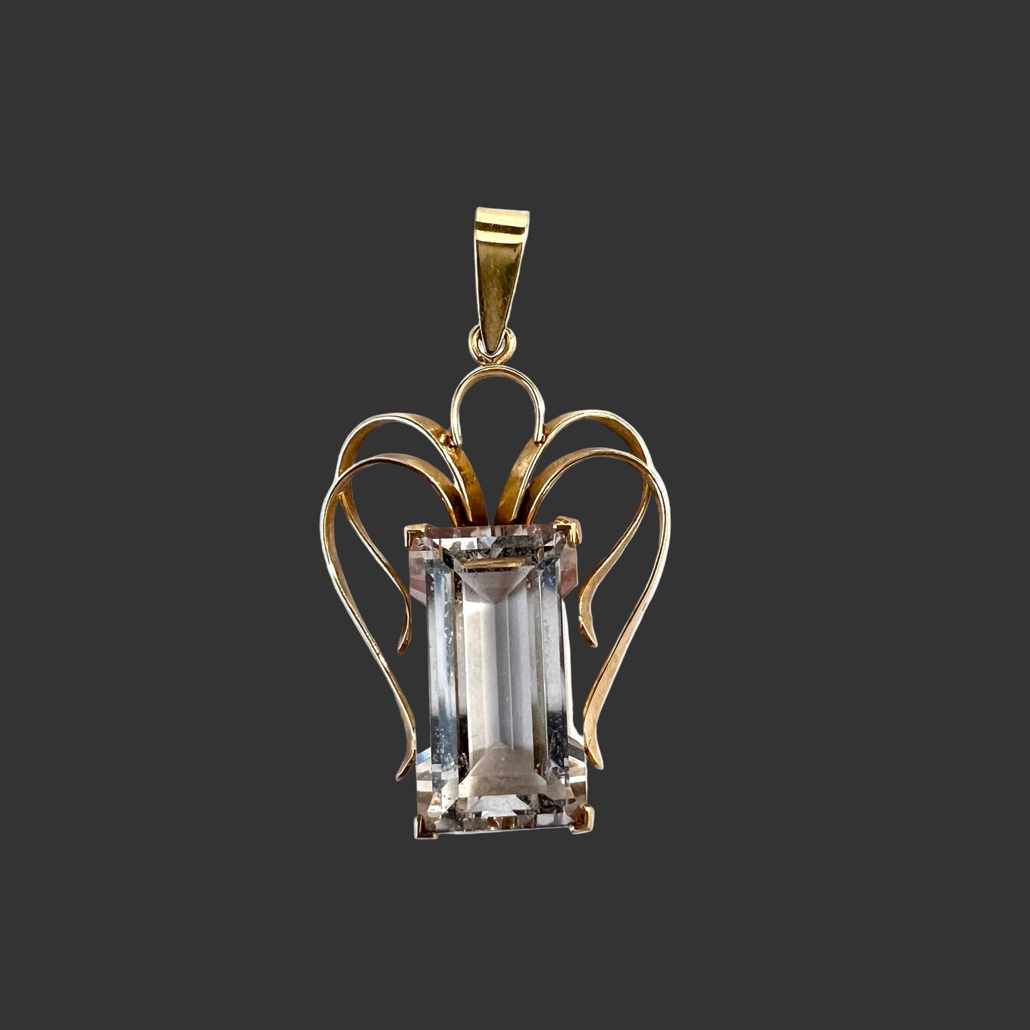 Guldvaruhuset, Stockholm 1956. Vintage 18k Gold Rock Crystal Pendant.