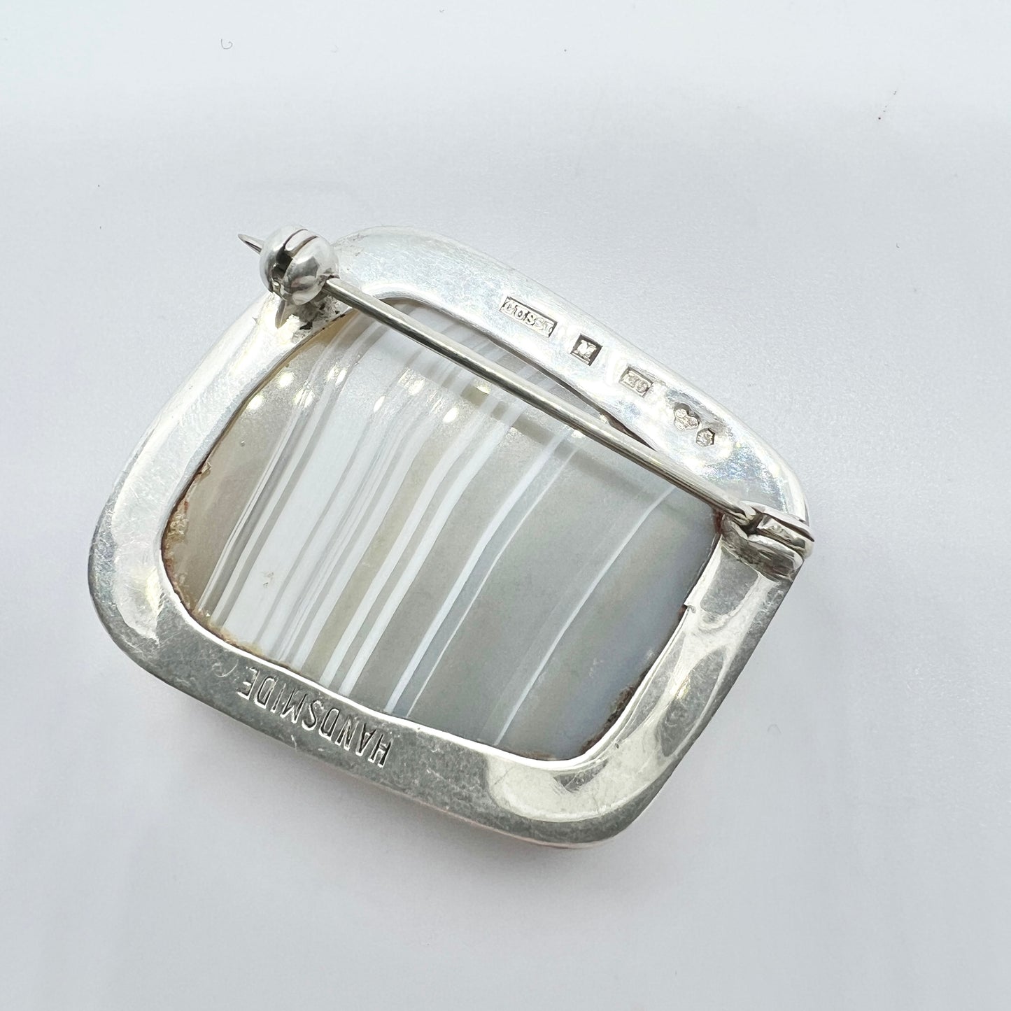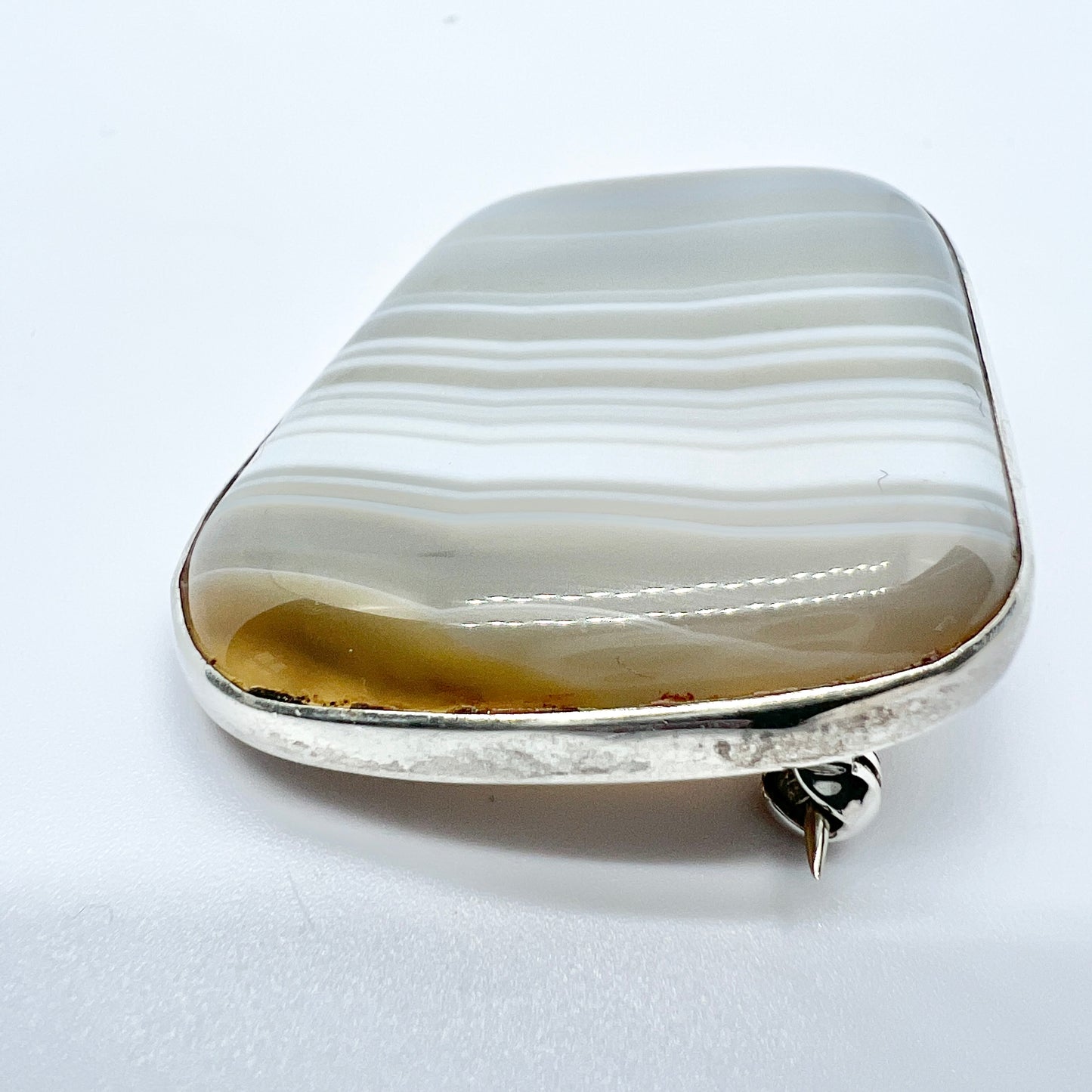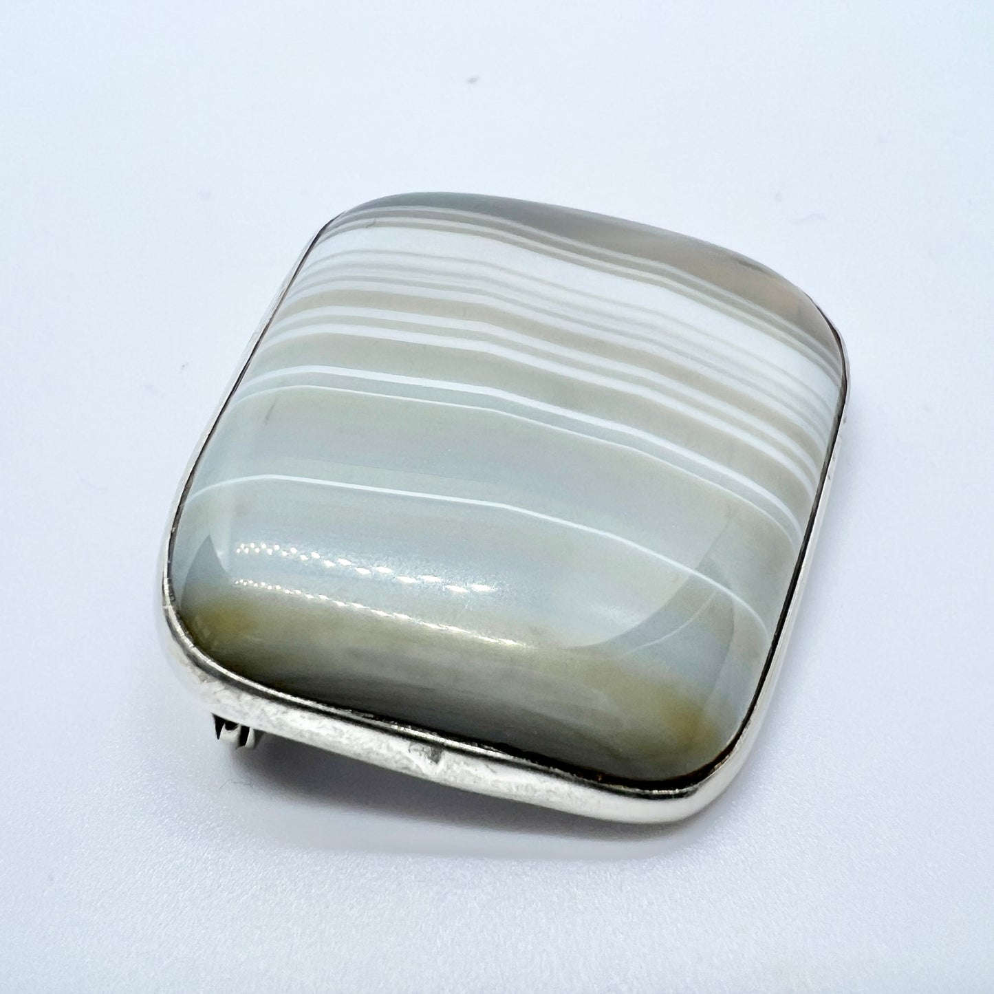 GUSSI, Sweden 1958. Vintage Sterling Silver Agate Brooch.