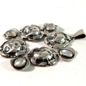 H.C. Mathiasen Denmark c 1920 Silver Moonstone Large Art Nouveau Skonvirke Pendant.