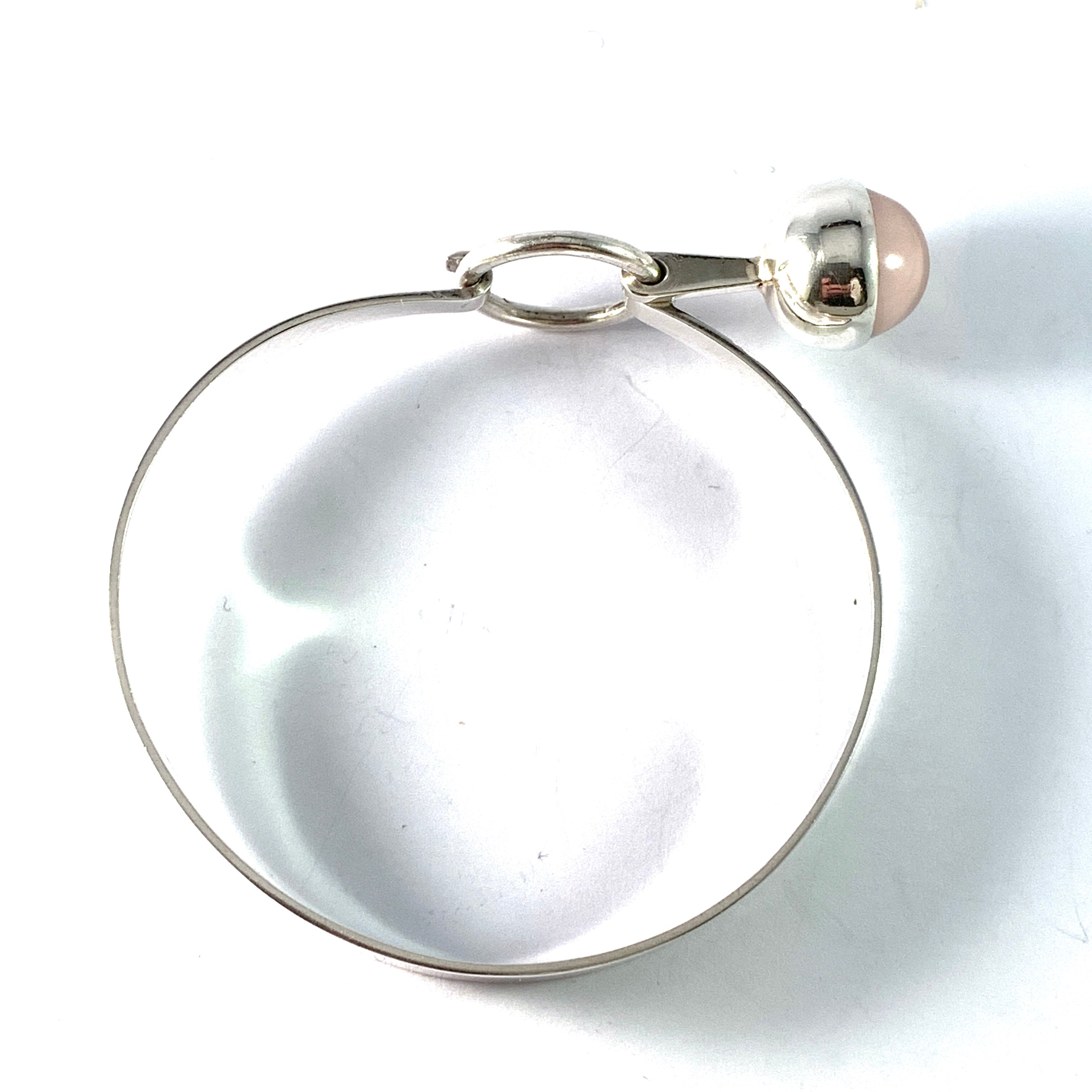 H.Kaksonen for Kaunis Koru Finland 1964 Vinage Solid Silver Rose Quartz Bracelet.