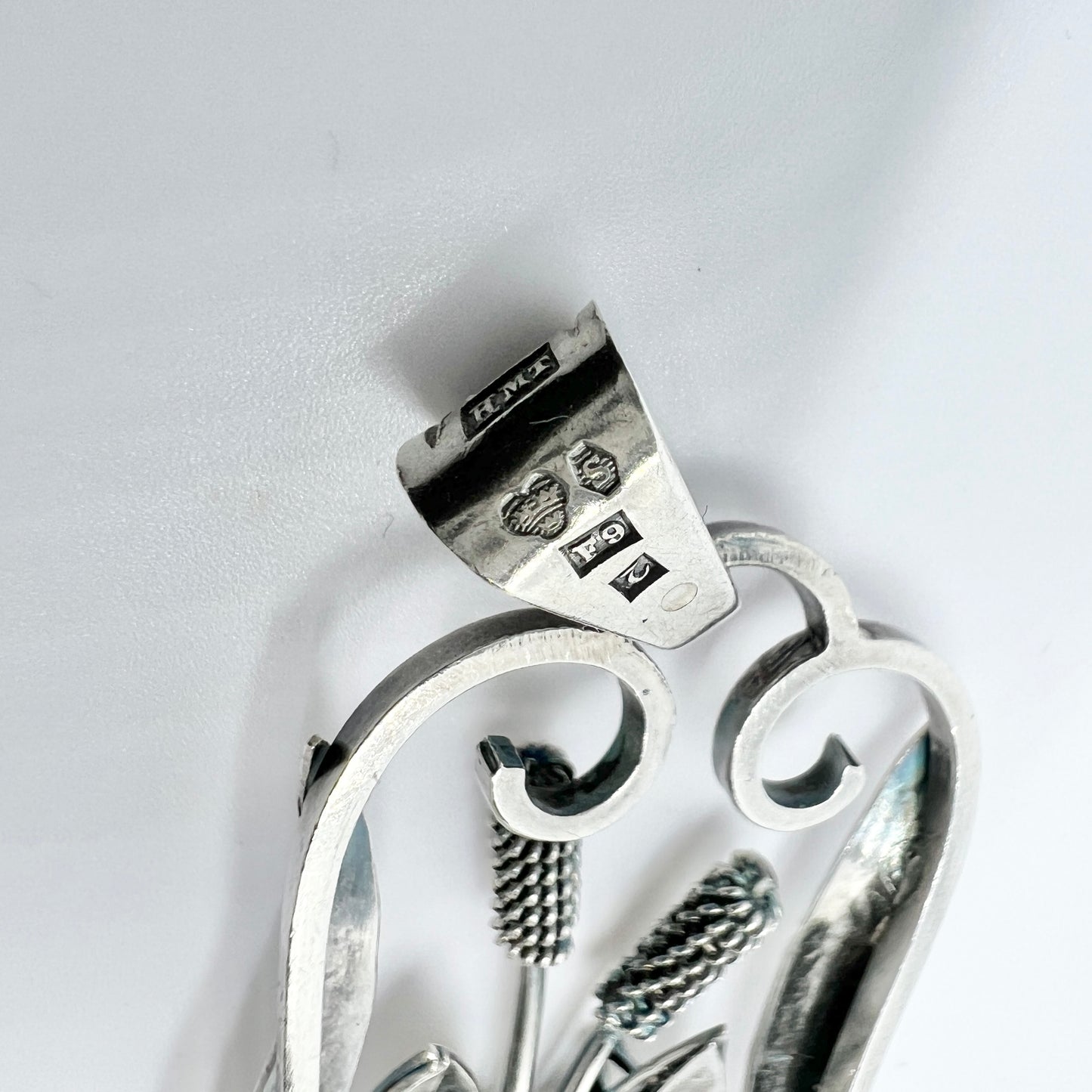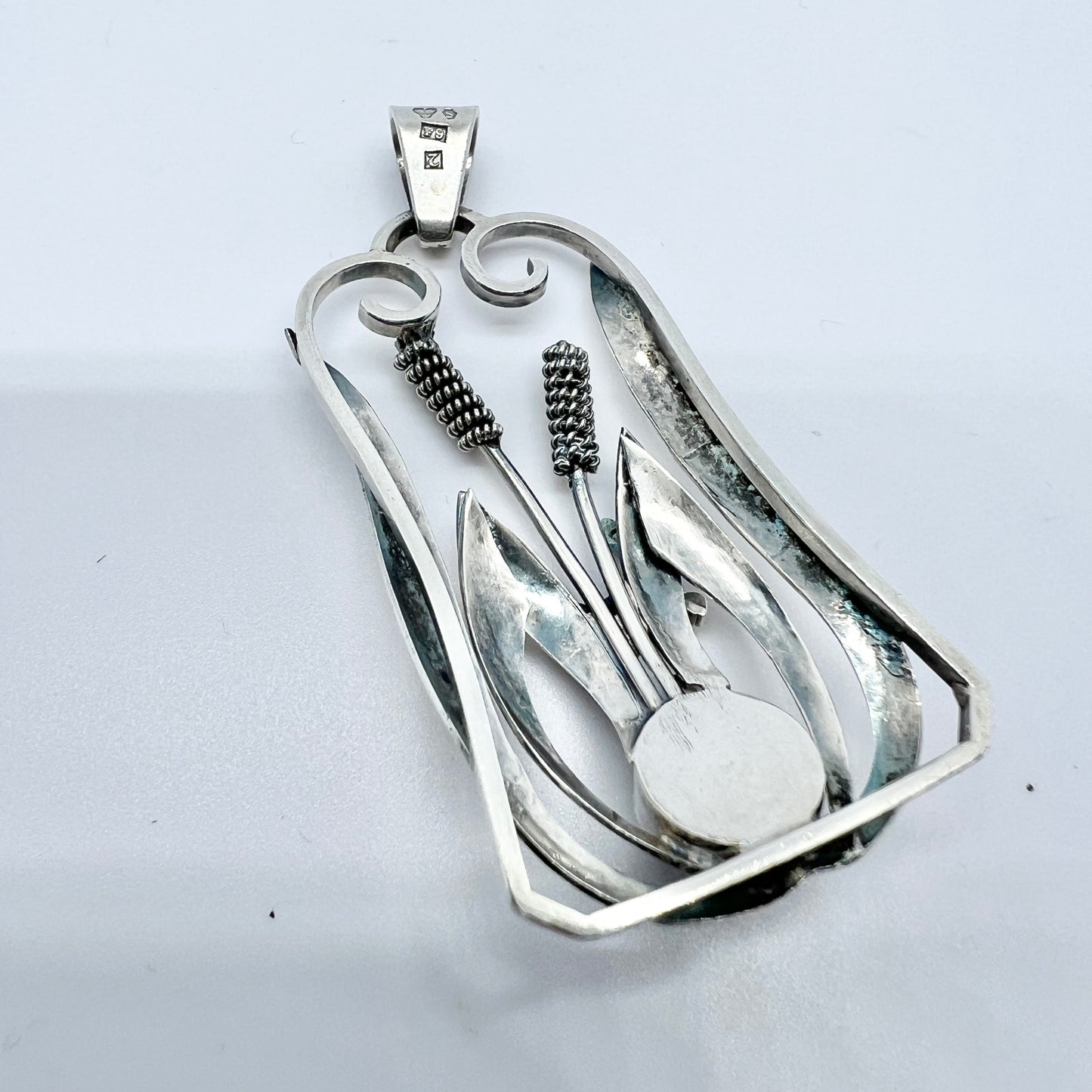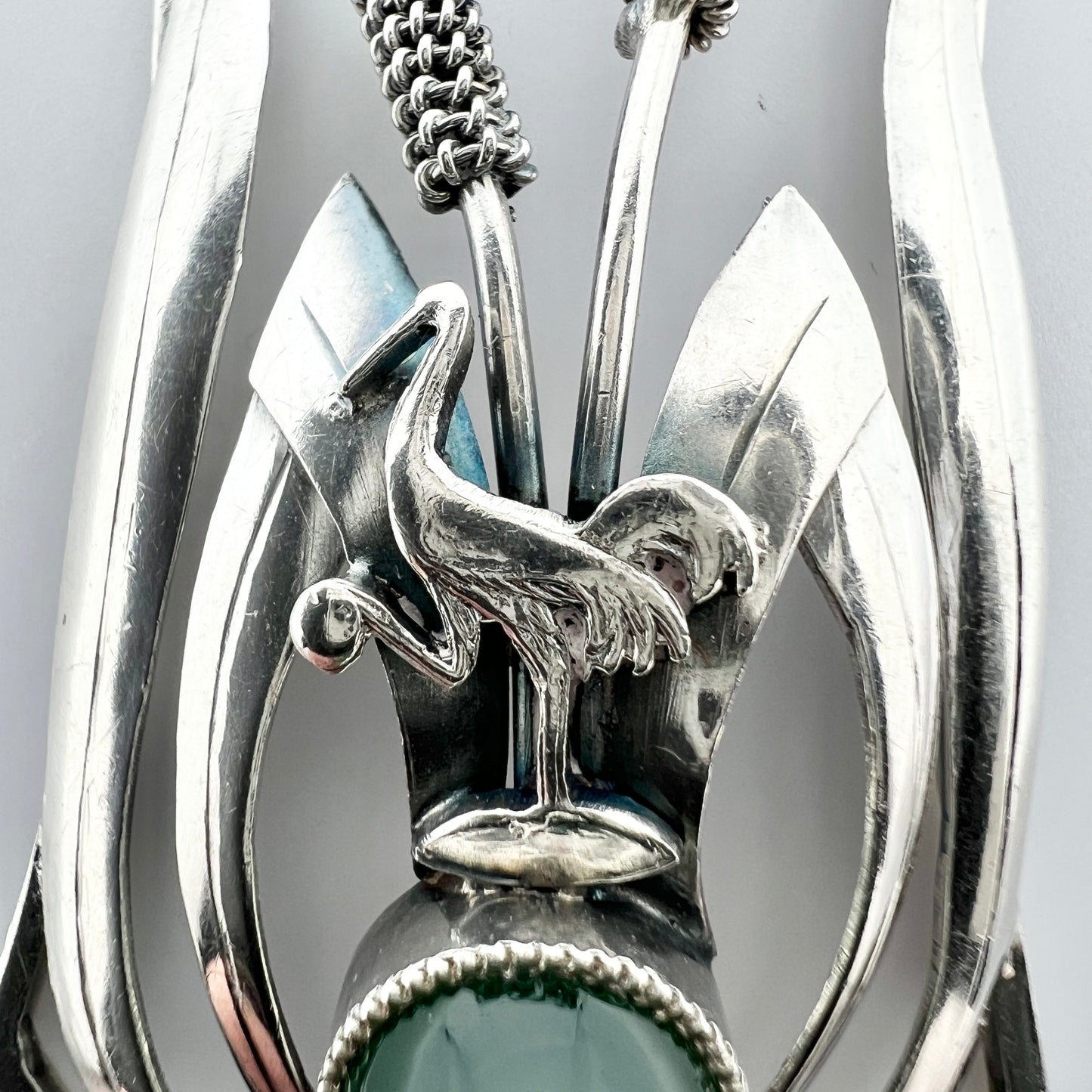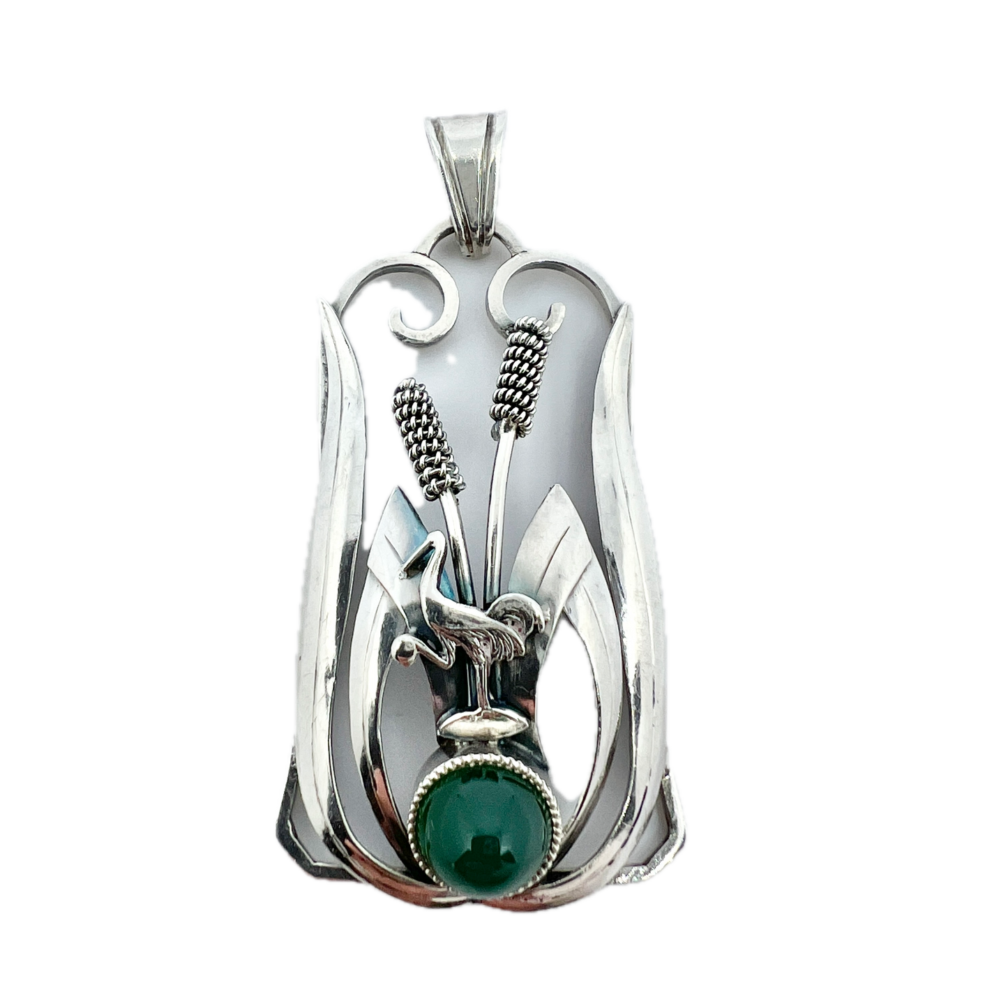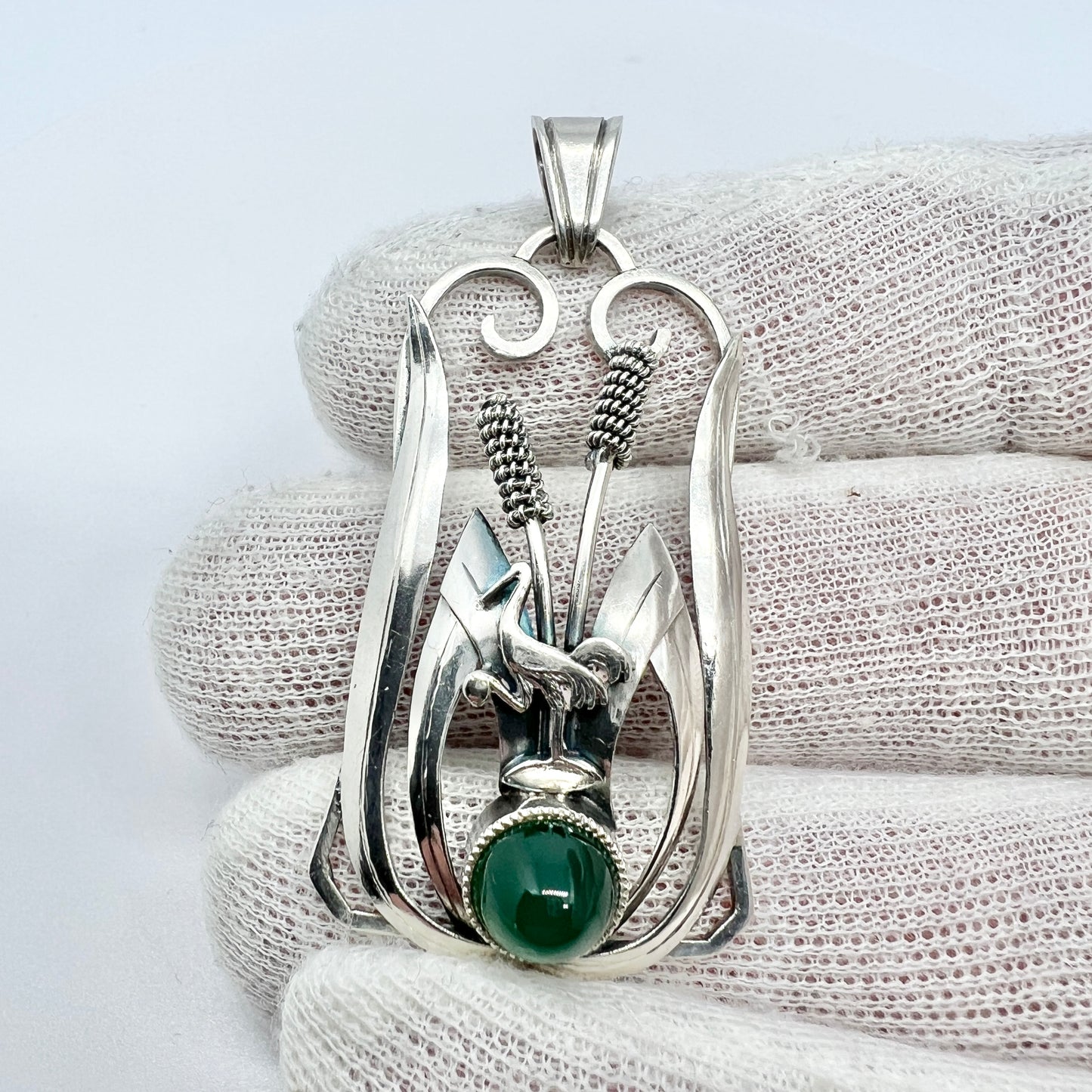 H Malmqvist, Sweden 1956. Vintage Sterling Silver Chrysoprase Bird Pendant.
