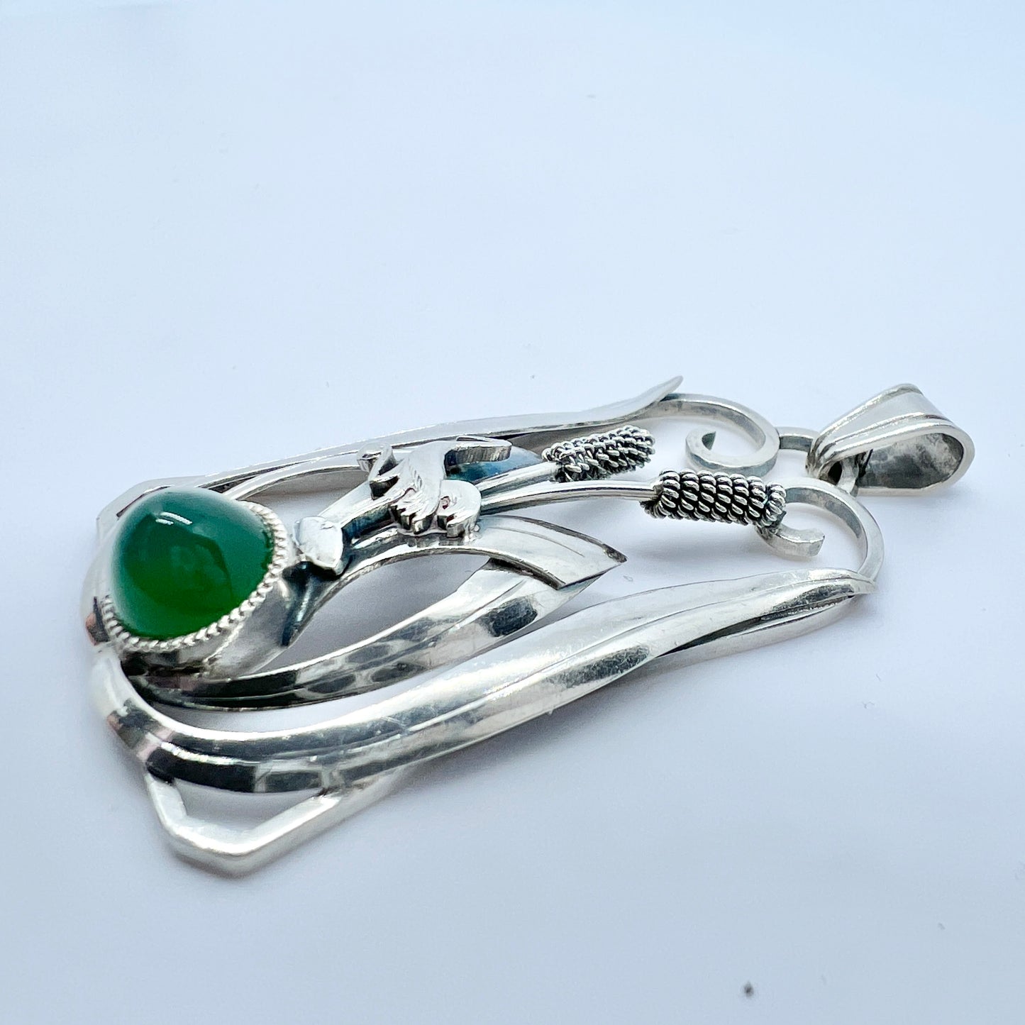 Wonderful and rare vintage sterling silver chrysoprase pendant. Fully hallmarked for H Malmqvist, Sweden year 1956.