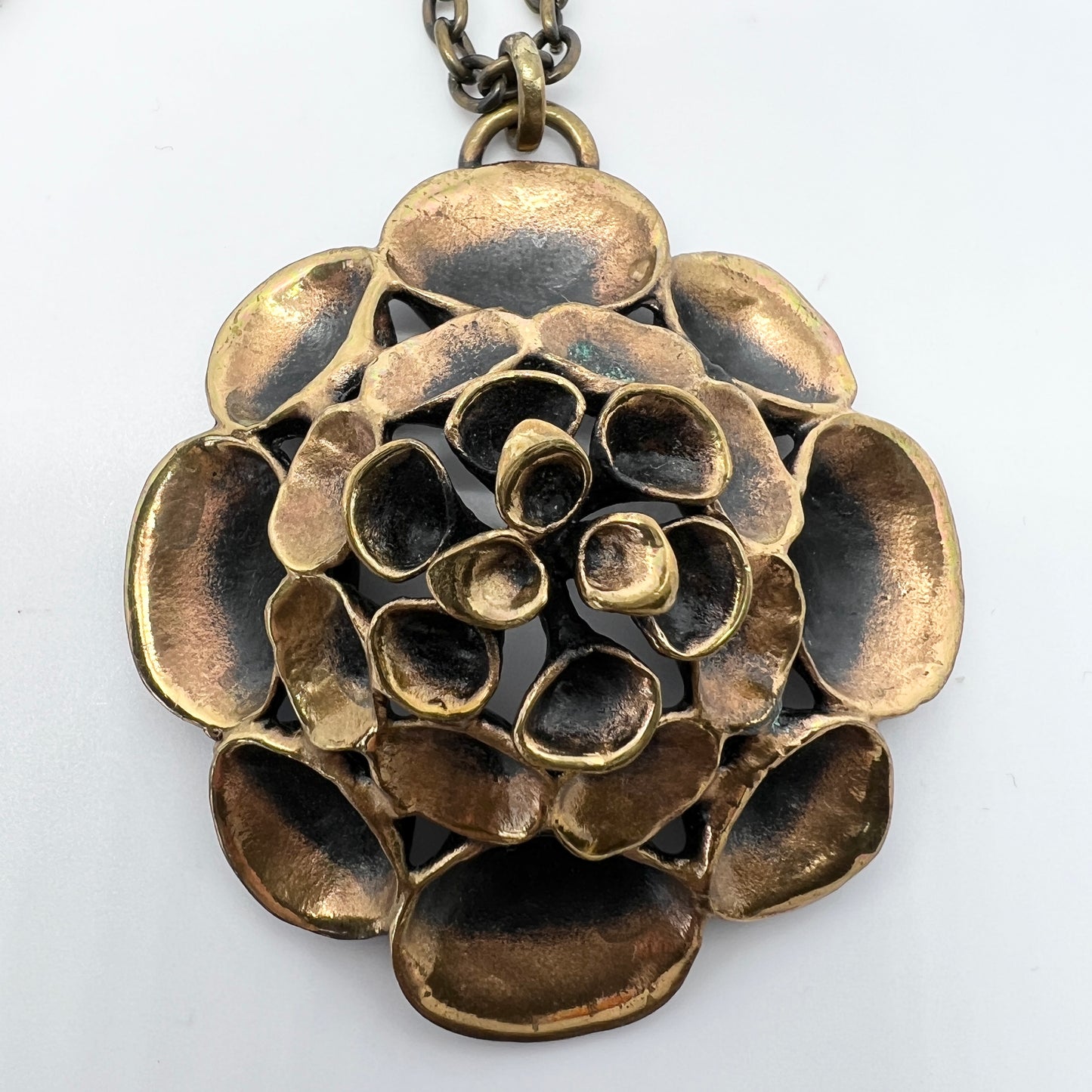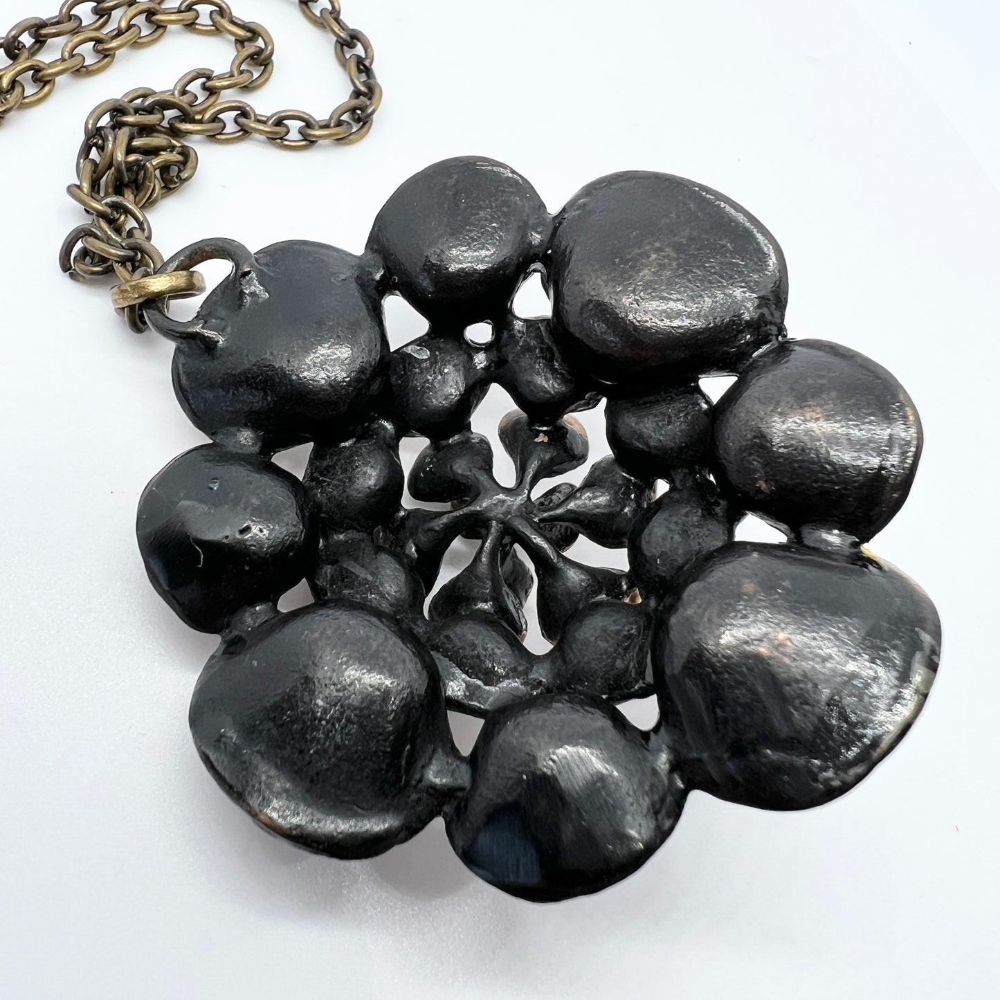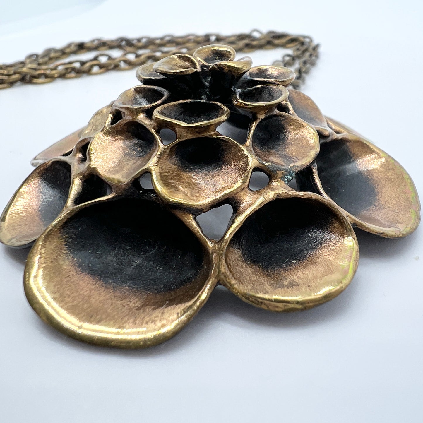 Beautiful vintage bronze pendant necklace. Reindeer moss design, by Hannu Ikonen Finland 1970s