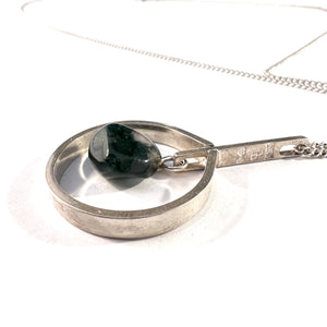 Hedberg, Sweden 1959. Vintage Solid Silver Moss Agate Pendant Necklace.