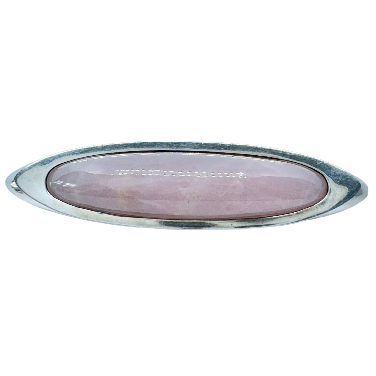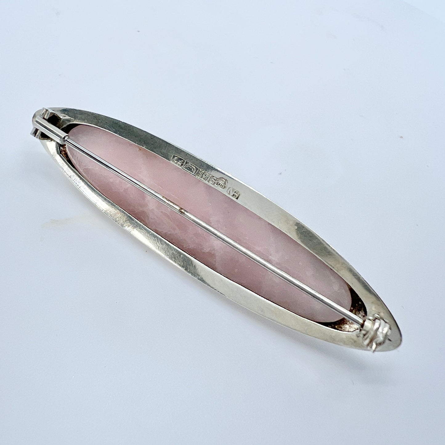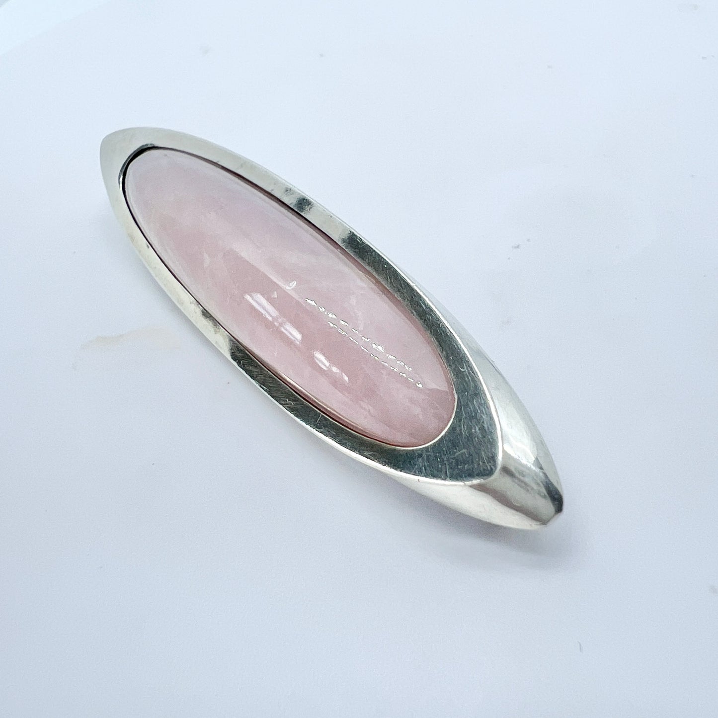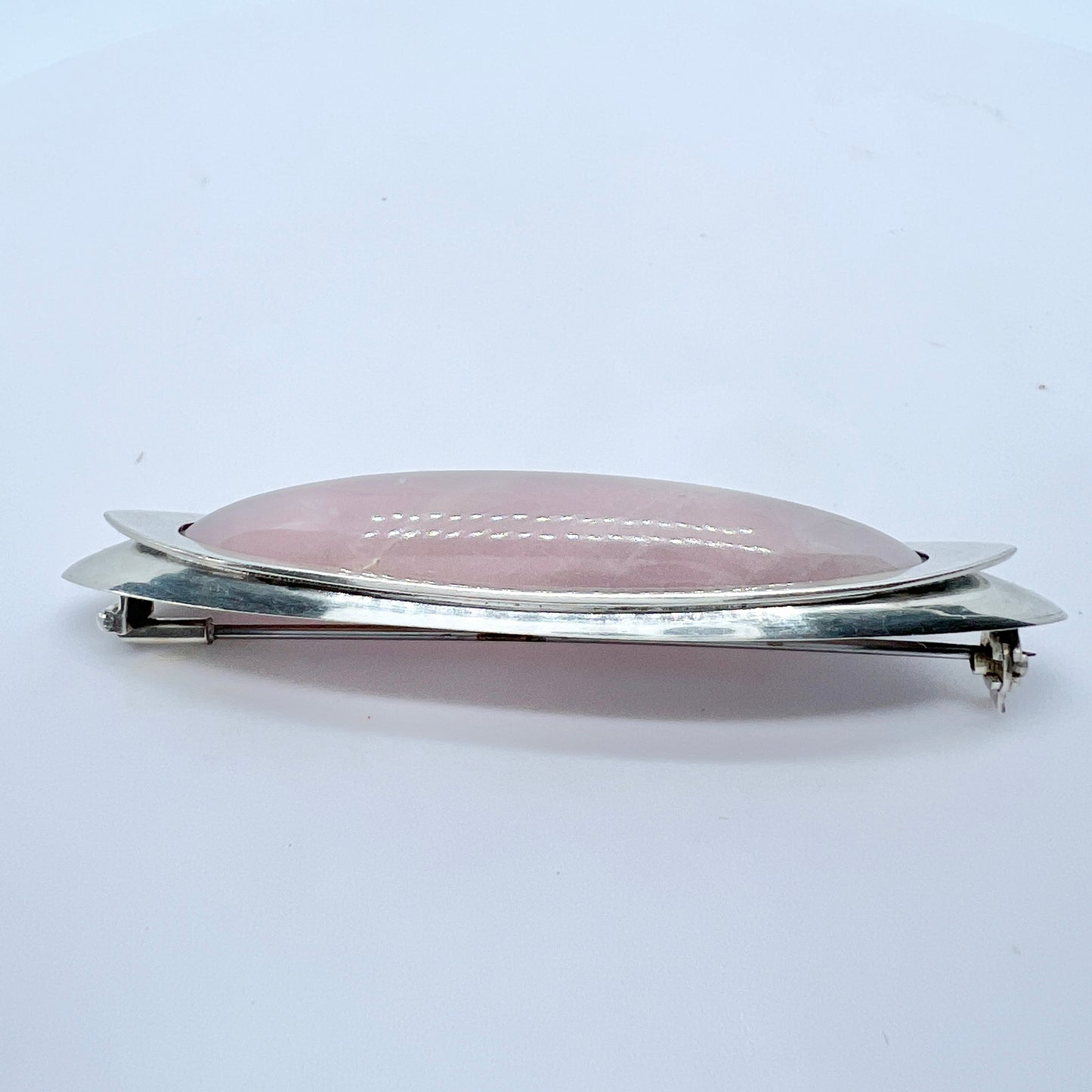Helge Narsakka, Finland 1959. Vintage Mid-Century Modern Solid Silver Rose Quartz Brooch.