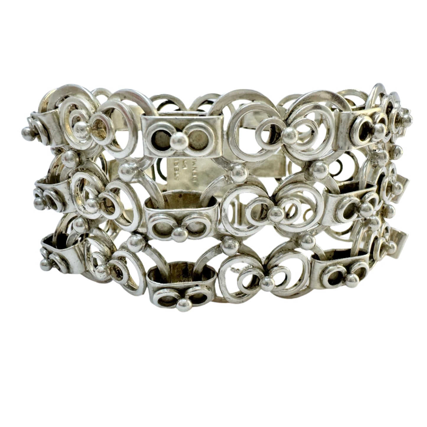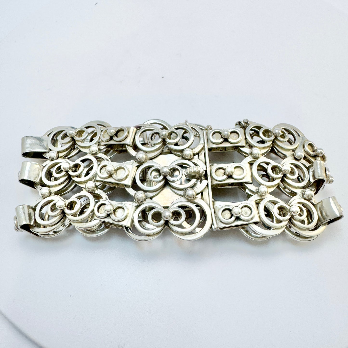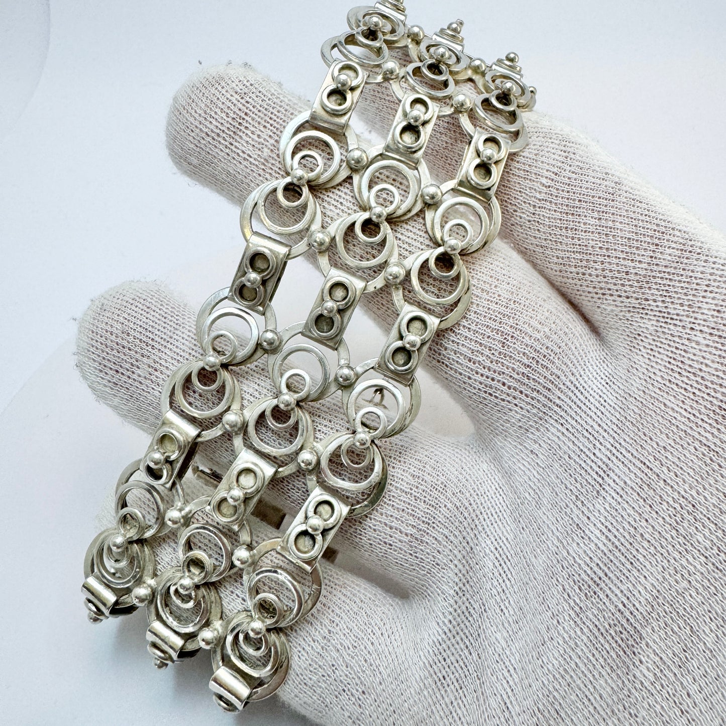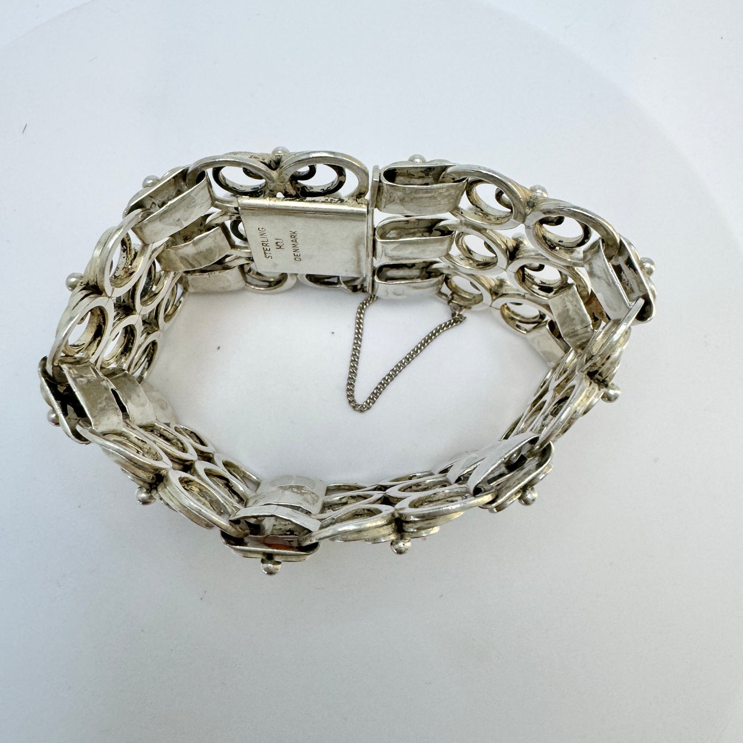 Wonderful and bold vintage sterling silver bracelet. Fully hallmarked for Hermann Ole Jacobsen, Copenhagen, Denmark c 1950. (active 1947-57)