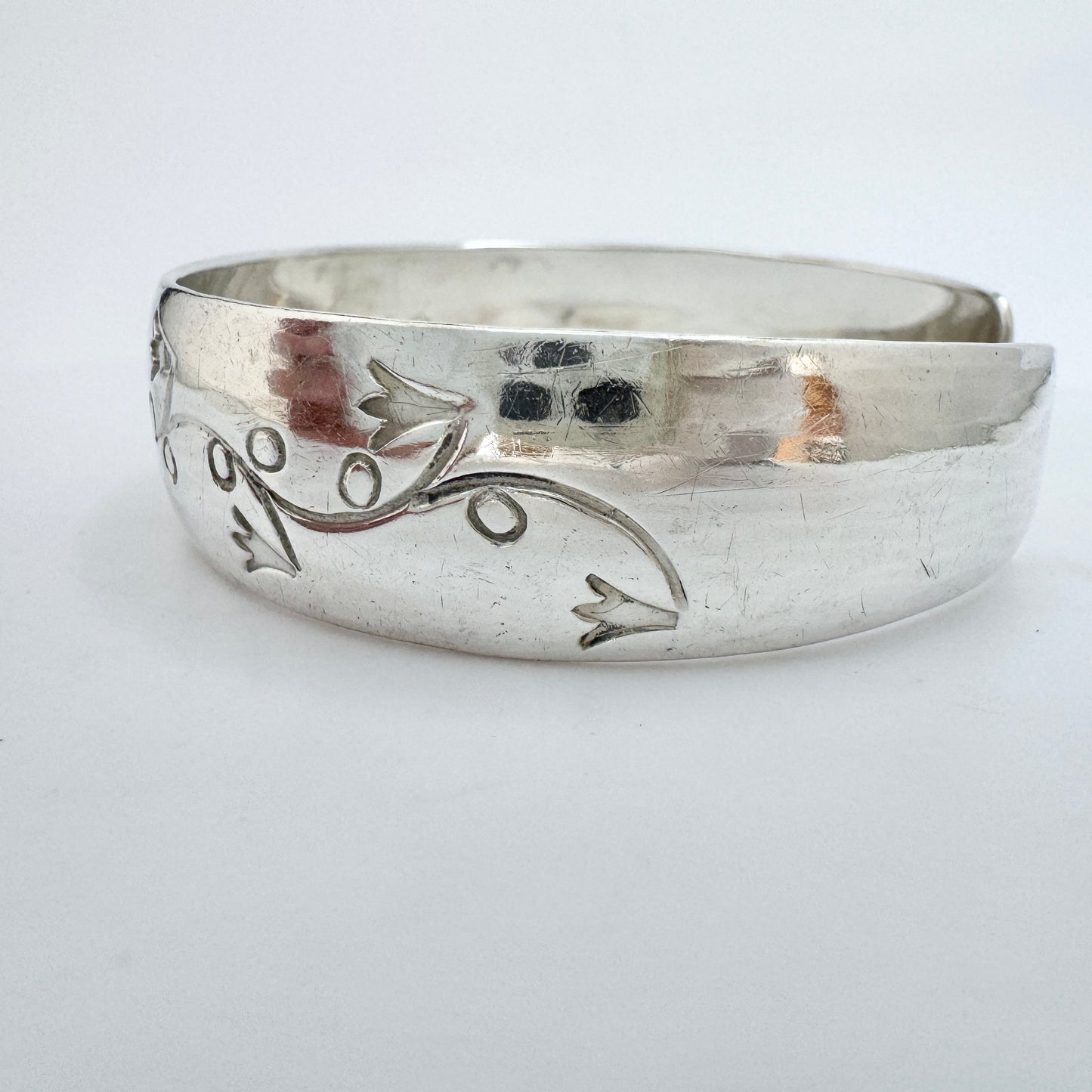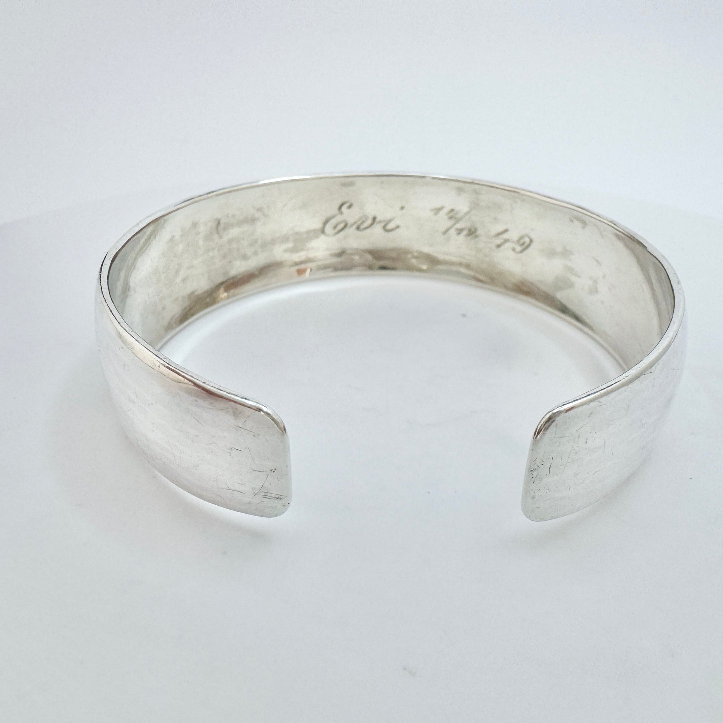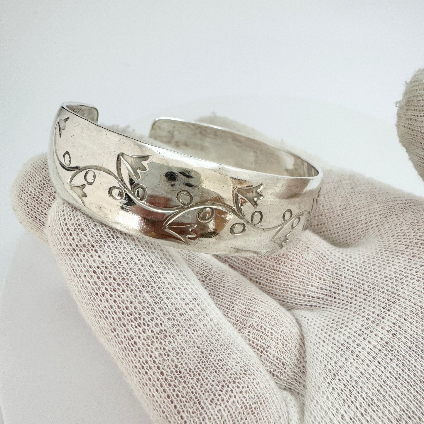 Beautiful vintage sterling silver cuff bracelet. Fully hallmarked for Holmström, Sweden year 1949.