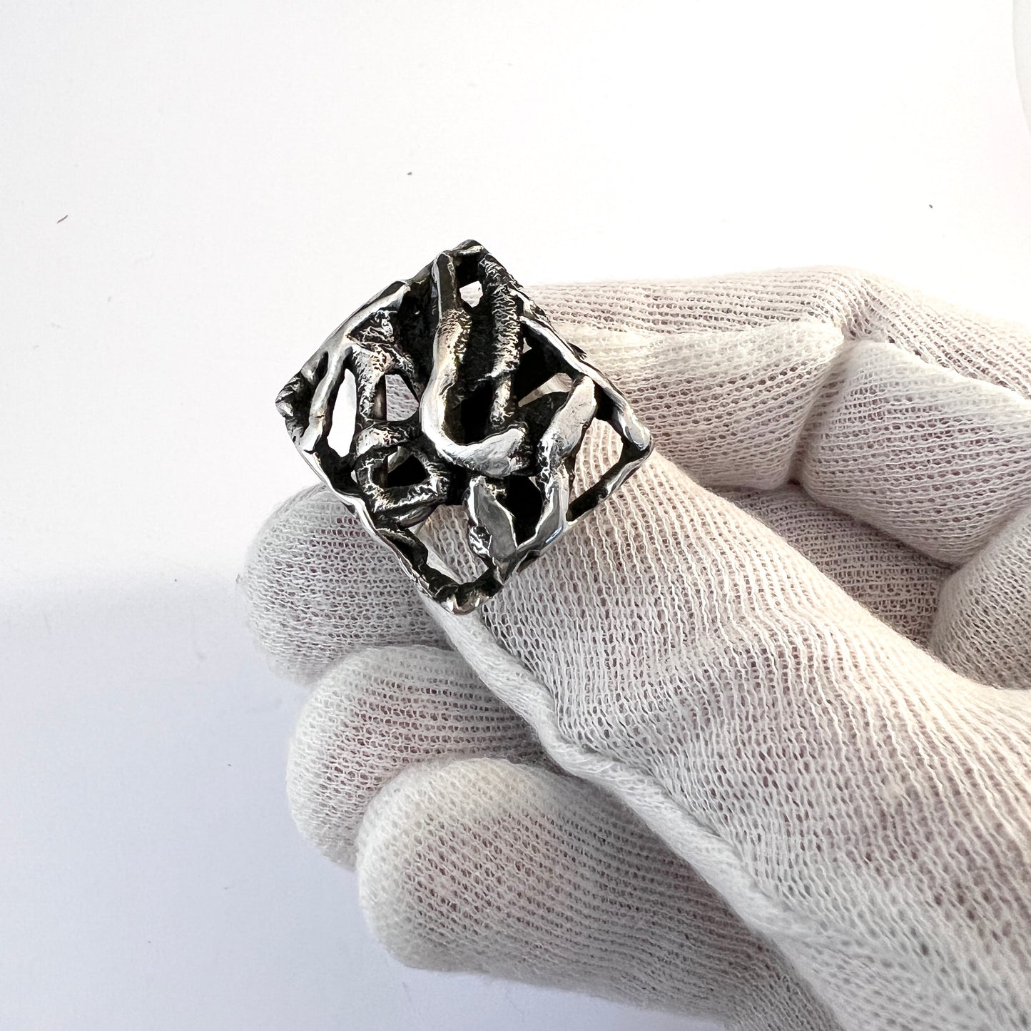 Iceland, Vintage 1970s. Modernist Solid Silver Ring. Maker's Mark.
