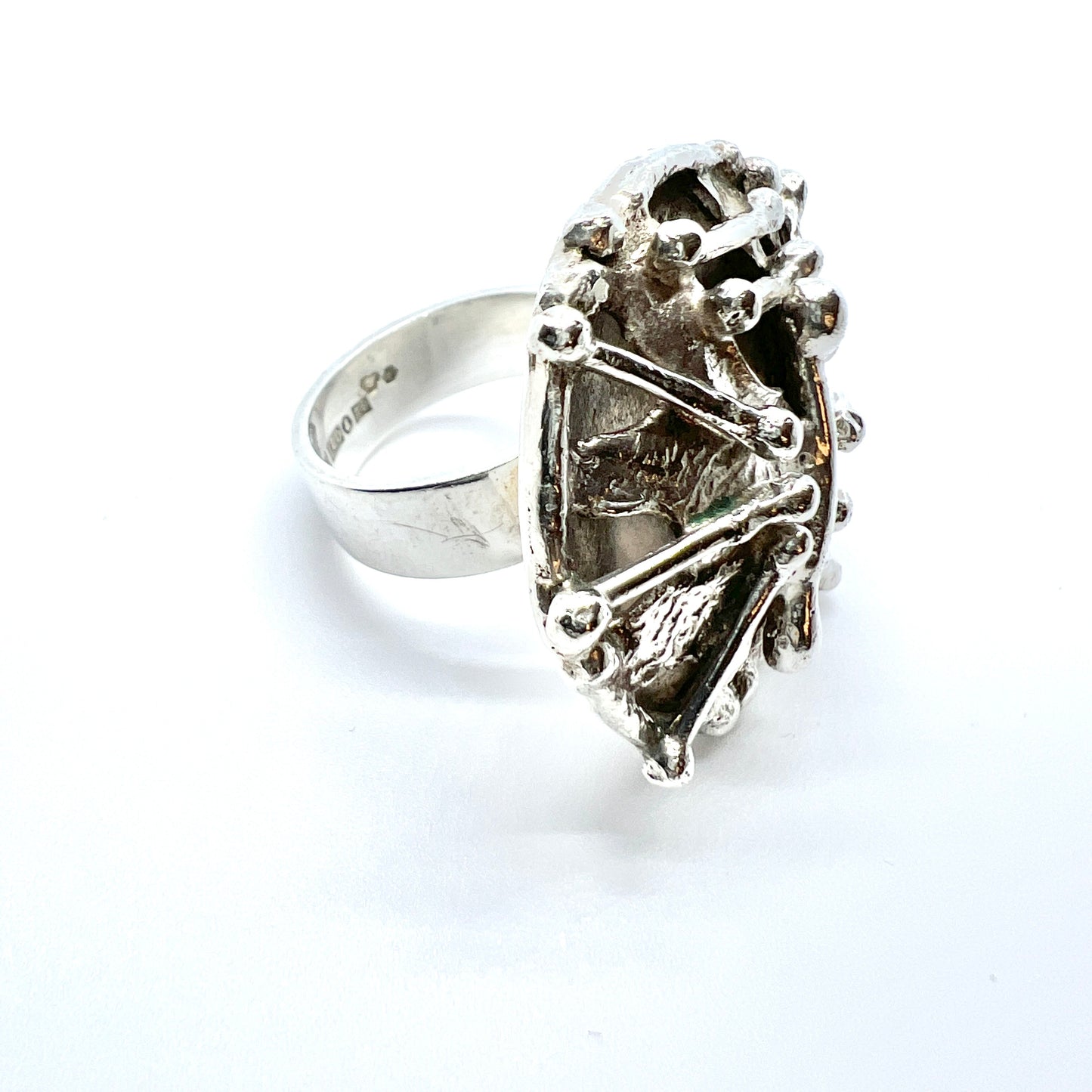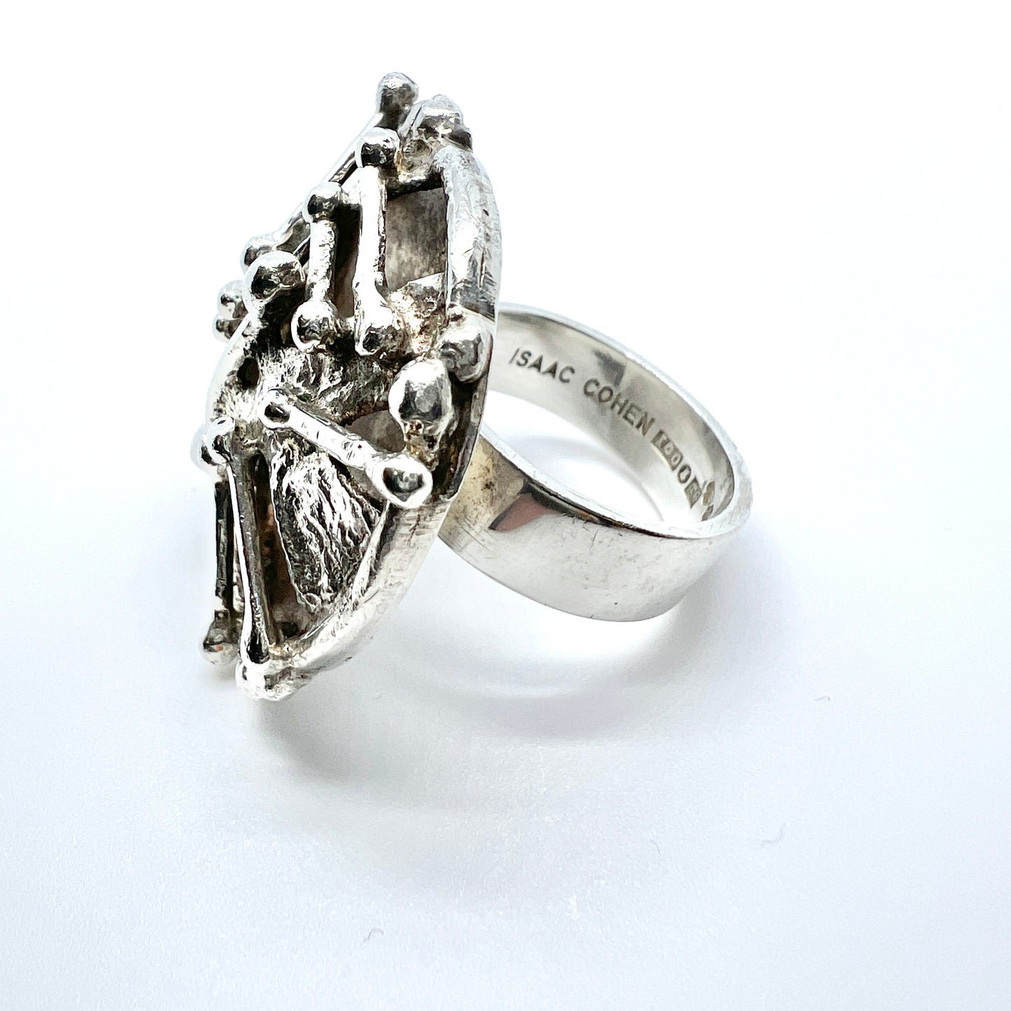 Isaac Cohen, Sweden 1969 Bold Vintage Modernist Sterling Silver Ring. Signed