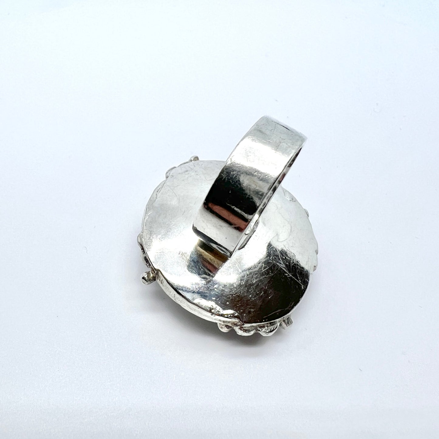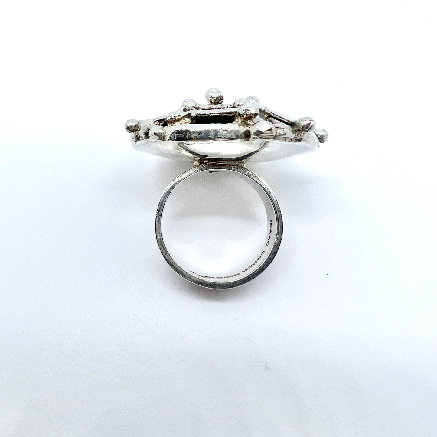 Wonderful and much sought after large vintage modernist sterling silver ring. Fully hallmarked and signed for renowned Isaac Cohen, Stockholm, Sweden year 1969.