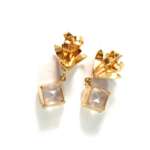 J Petterson, Sweden c 1950s. Mid Century 18k Gold Rock Crystal Earrings.