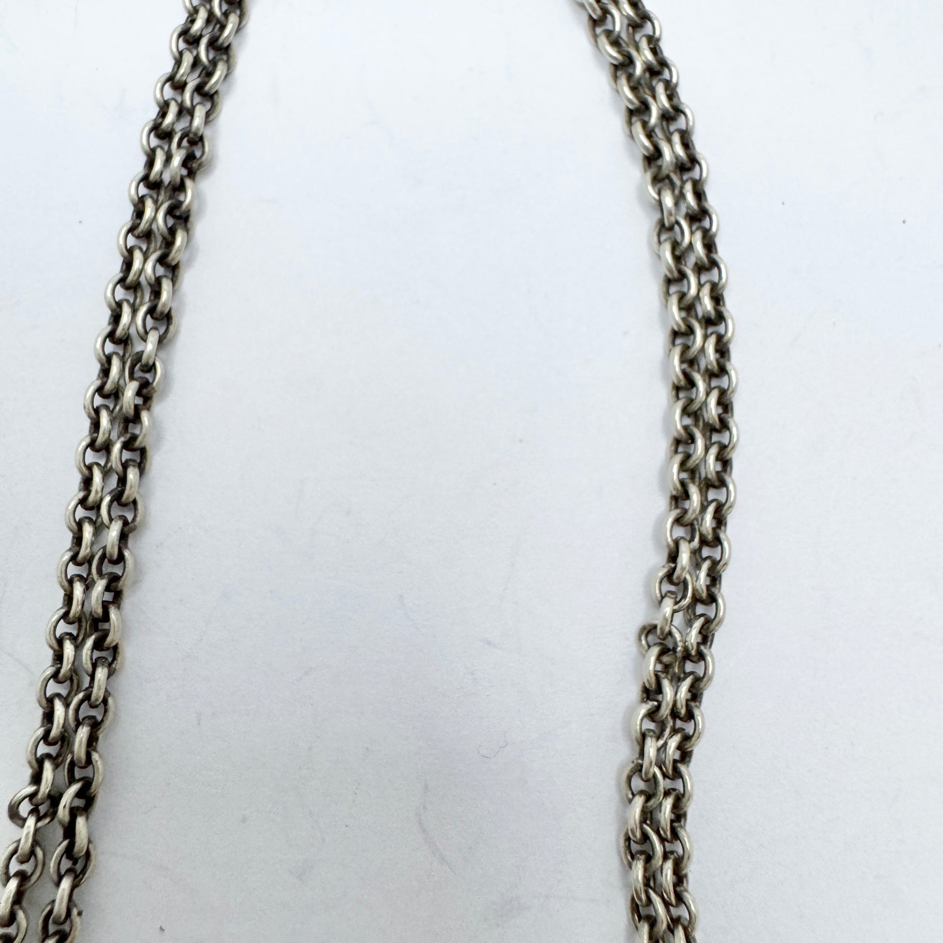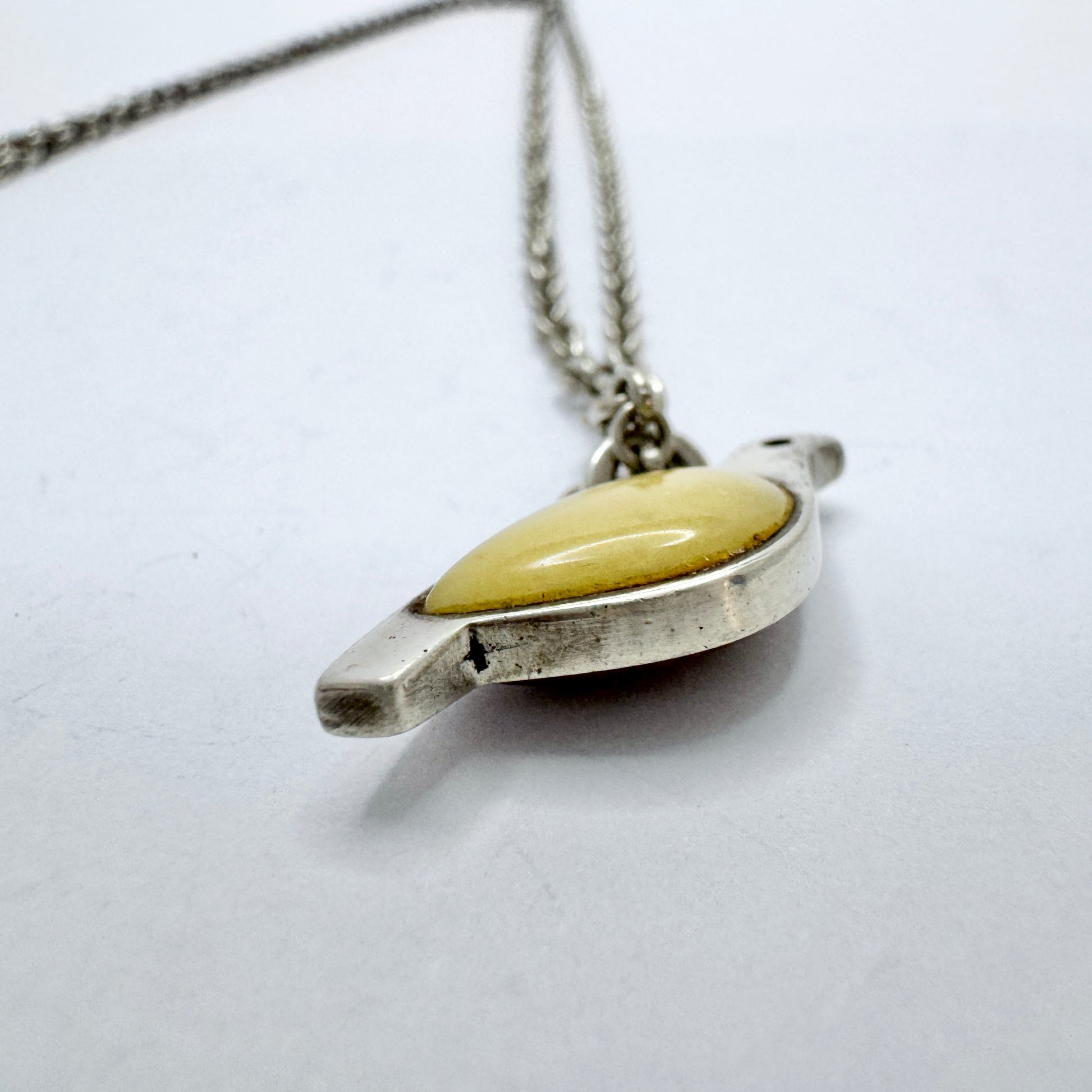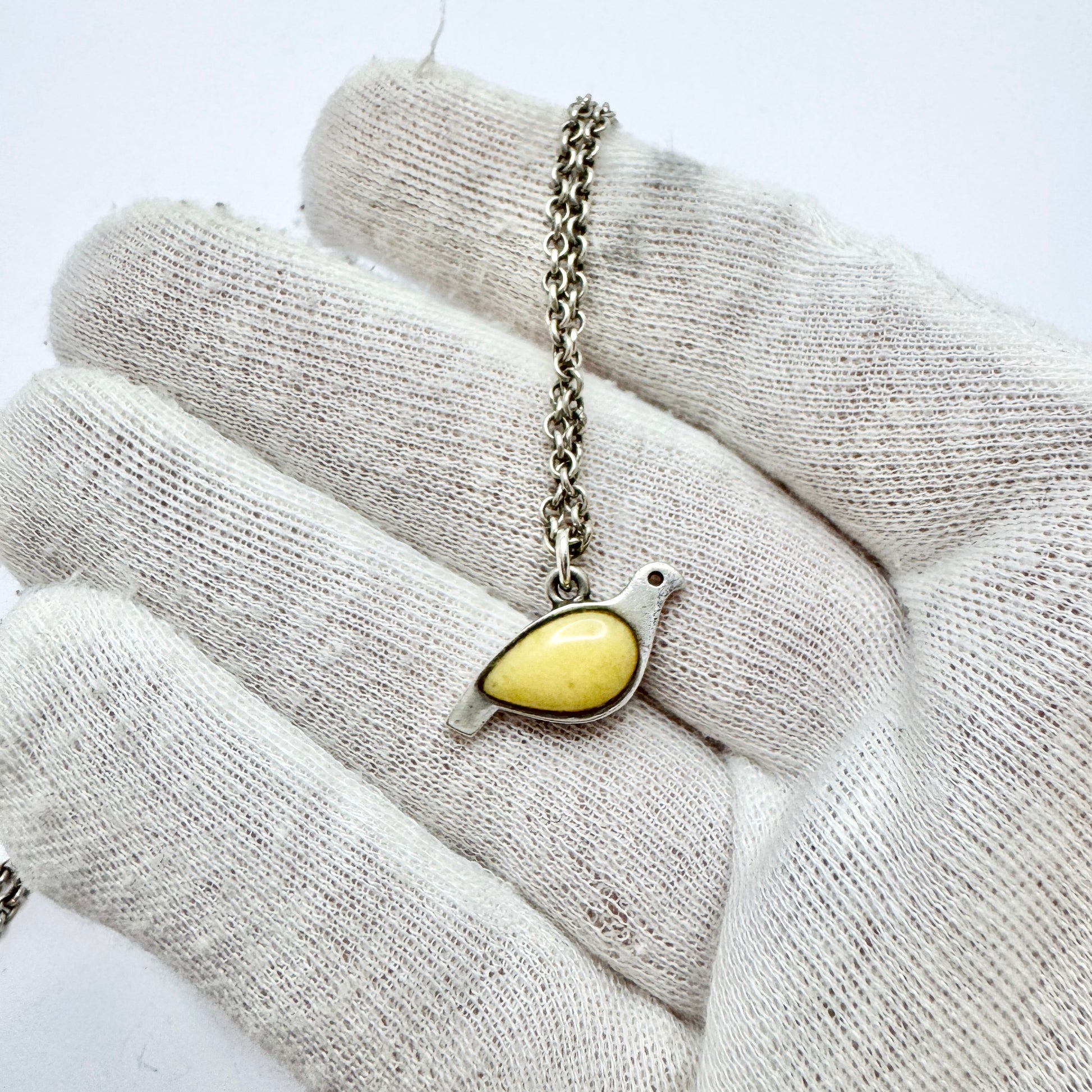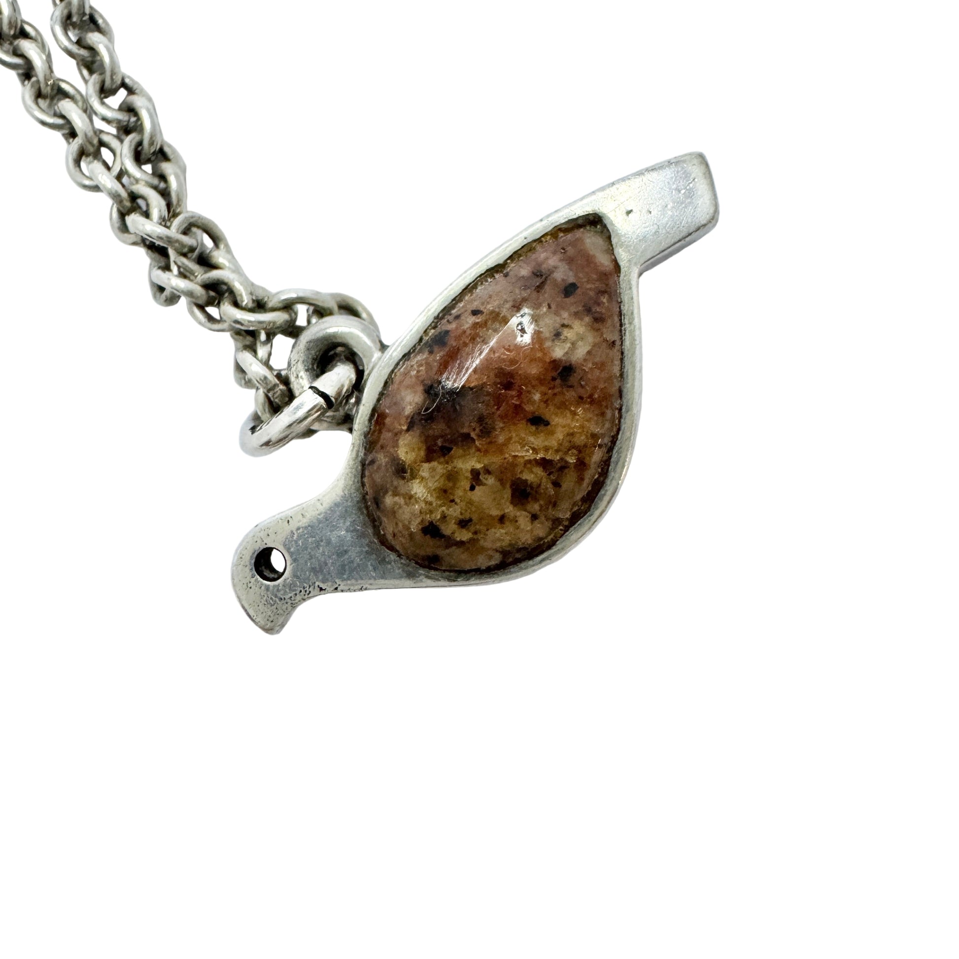 JAN, Finland. Vintage Sterling Silver Hardstone Bird Pendant Necklace.