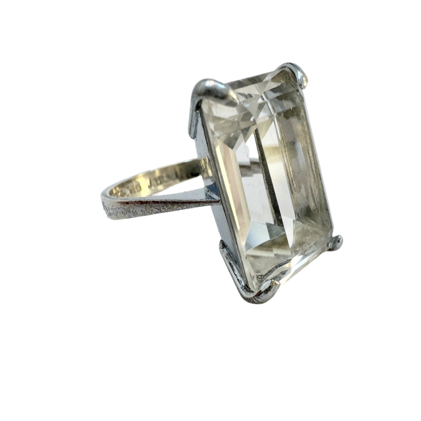 Japan, Vintage Sterling Silver Rock Crystal Ring.