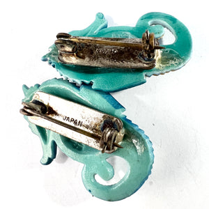 Japan 1950-60s. Vintage Toshikane Porcelain Pair of Seahorse Brooches.