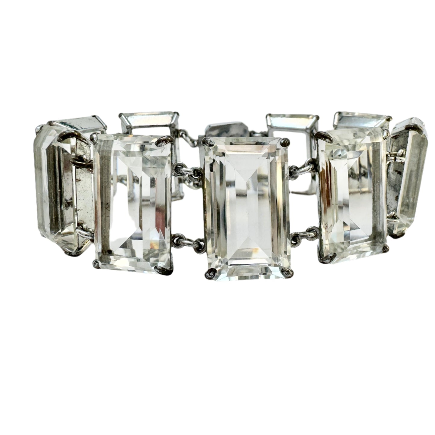 Wonderful and bold vintage sterling silver rock crystal bracelet. Hallmarked for sterling silver, Japan. Vintage.