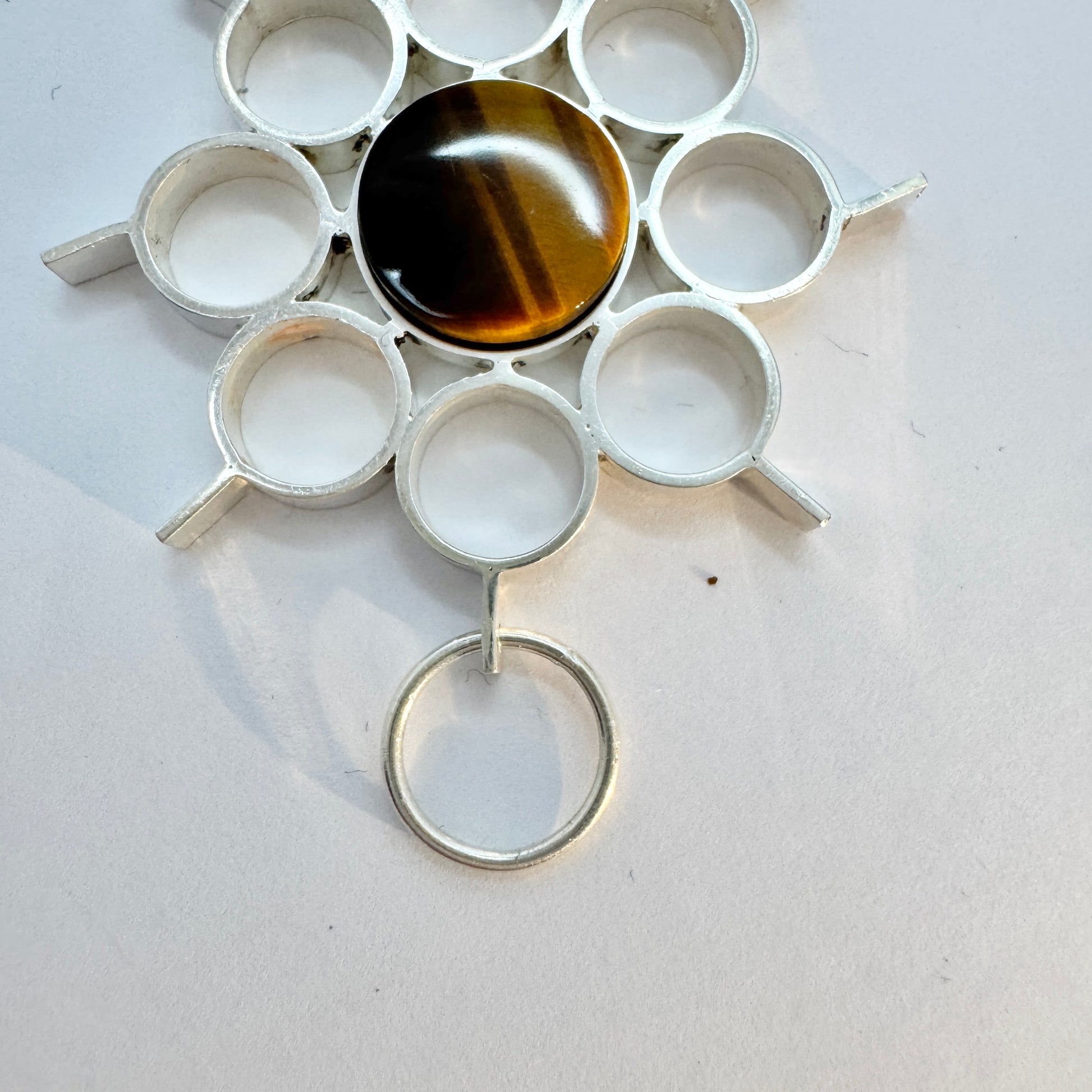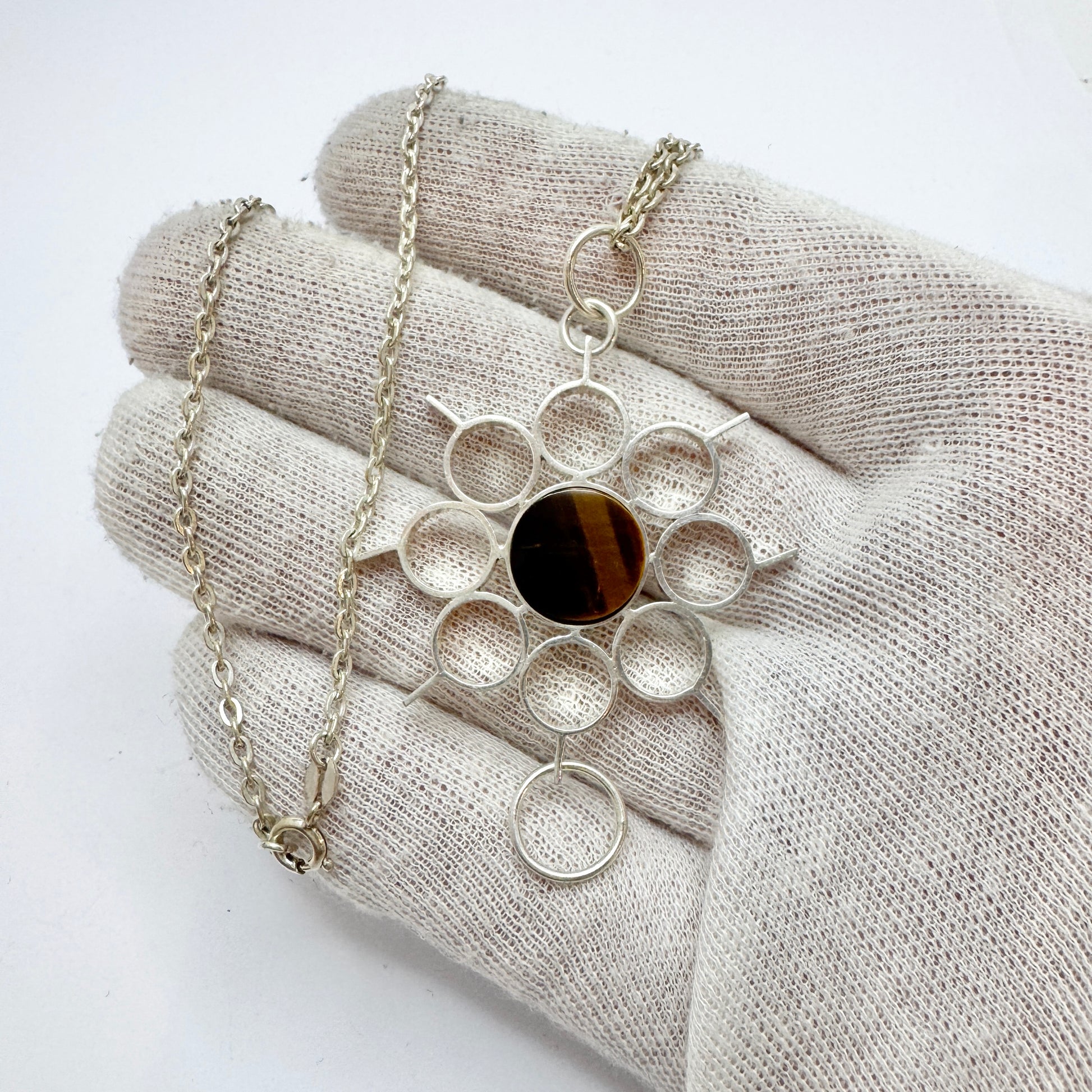 Jorma Laine for Kultateollisuus, Finland 1973. Silver Tiger's Eye Pendant Necklace