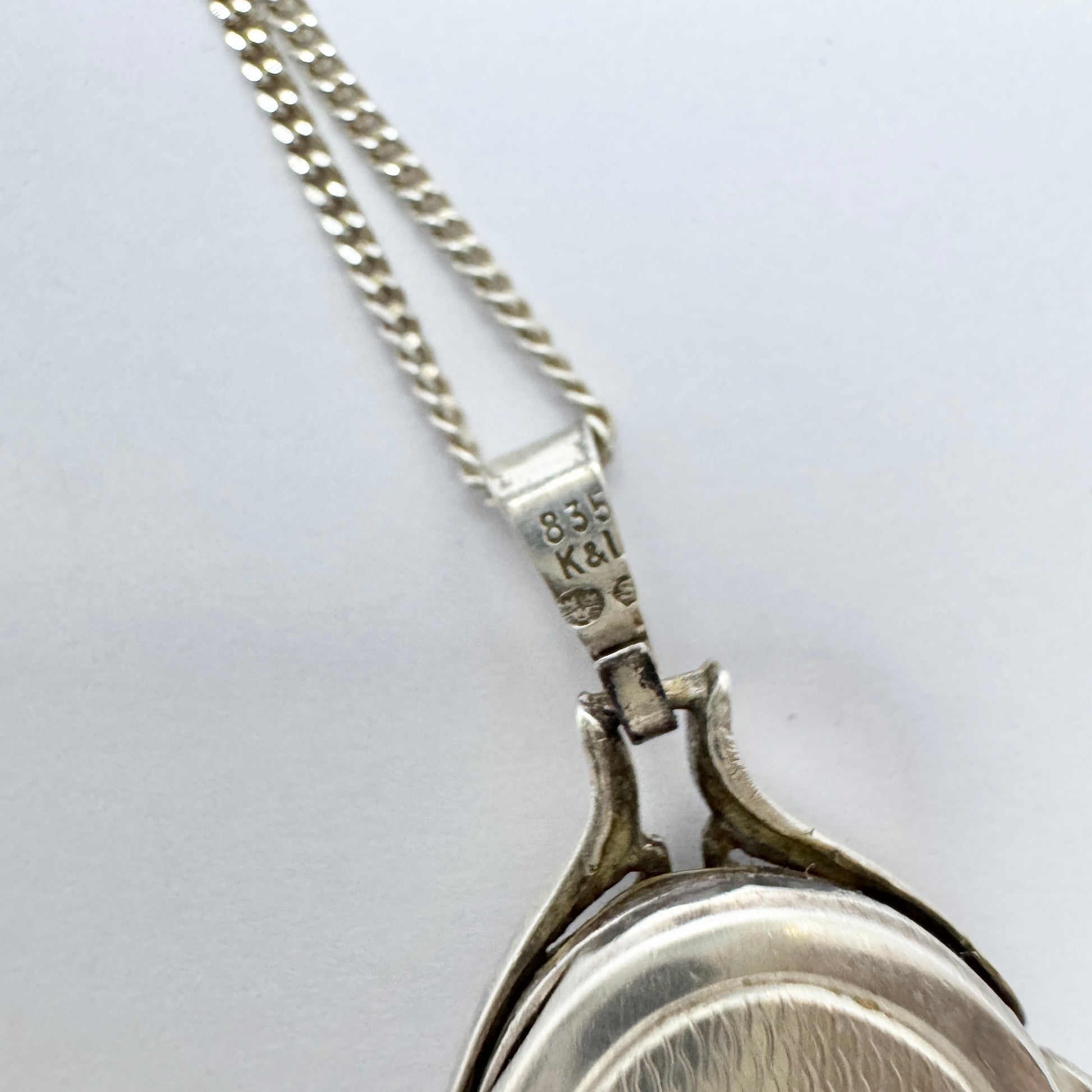 K&L-Kordes Lichtenfels, Germany ca 1950s. Solid Silver Locket Pendant Necklace.