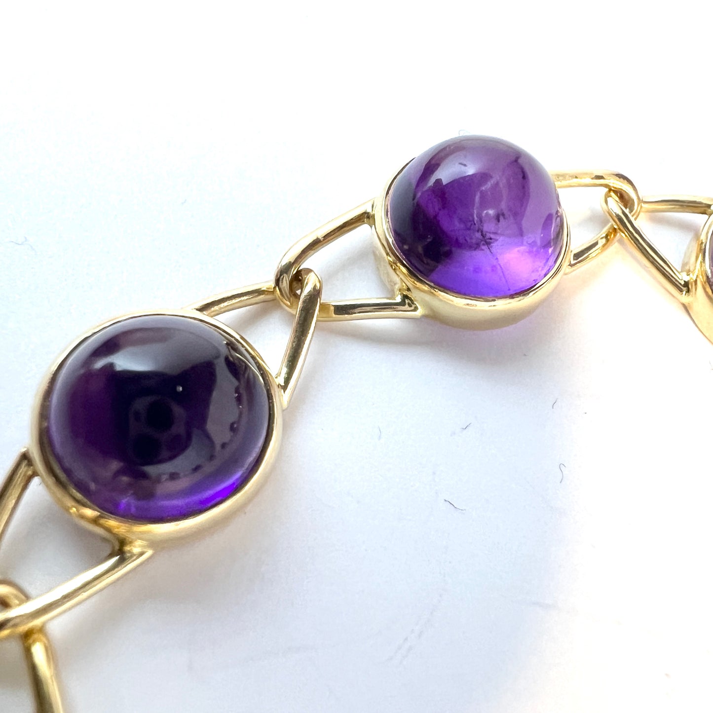 K.Torndals, Stockholm 1965. Vintage 18k Gold Amethyst Cabochons Bracelet.