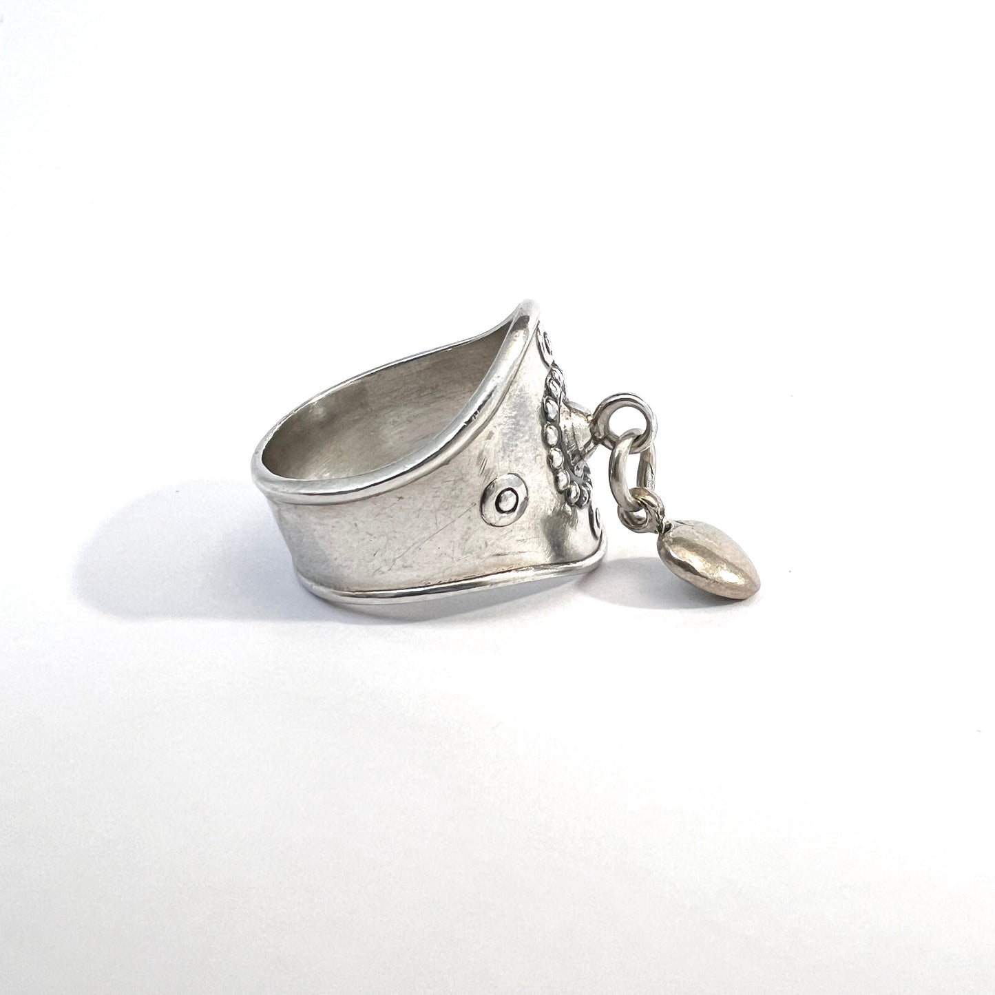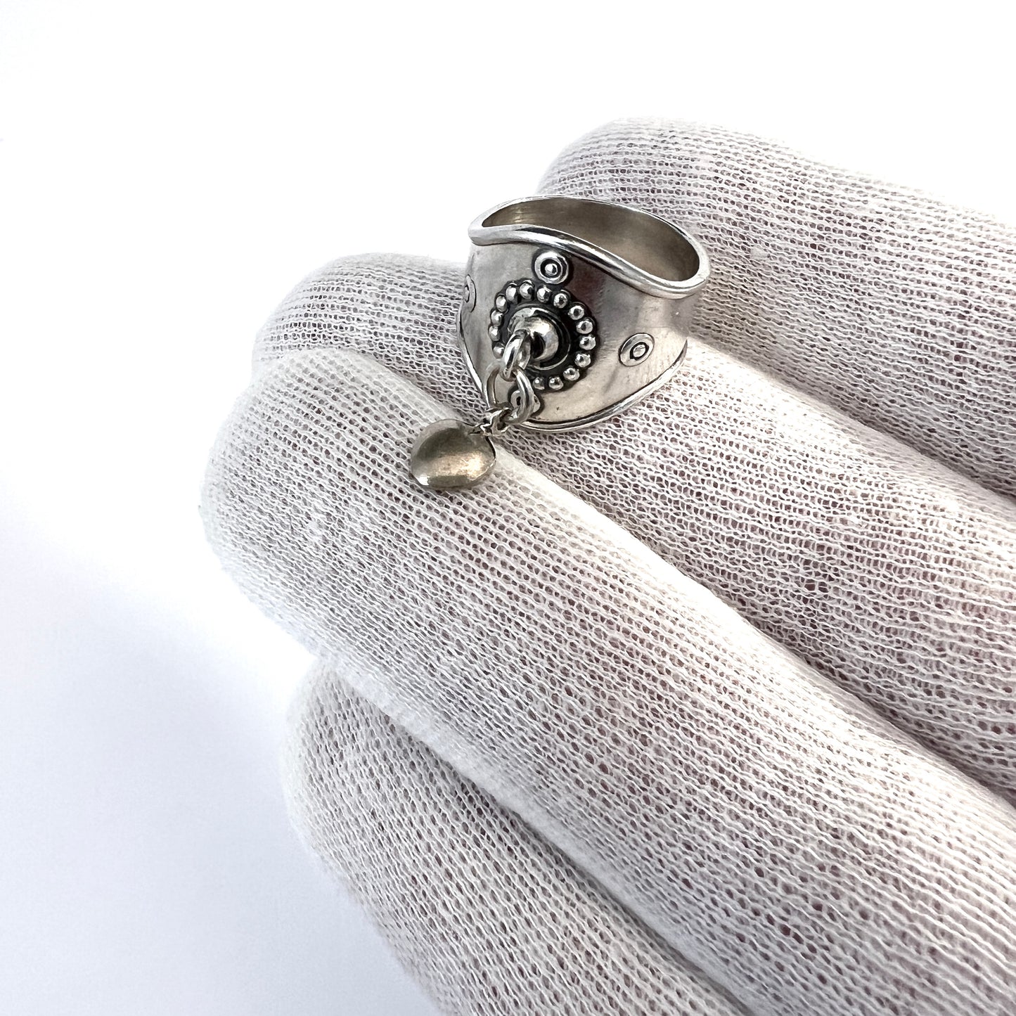 Kalevala Koru, Finland 1965. Vintage Sterling Silver Heart Charm Ring.