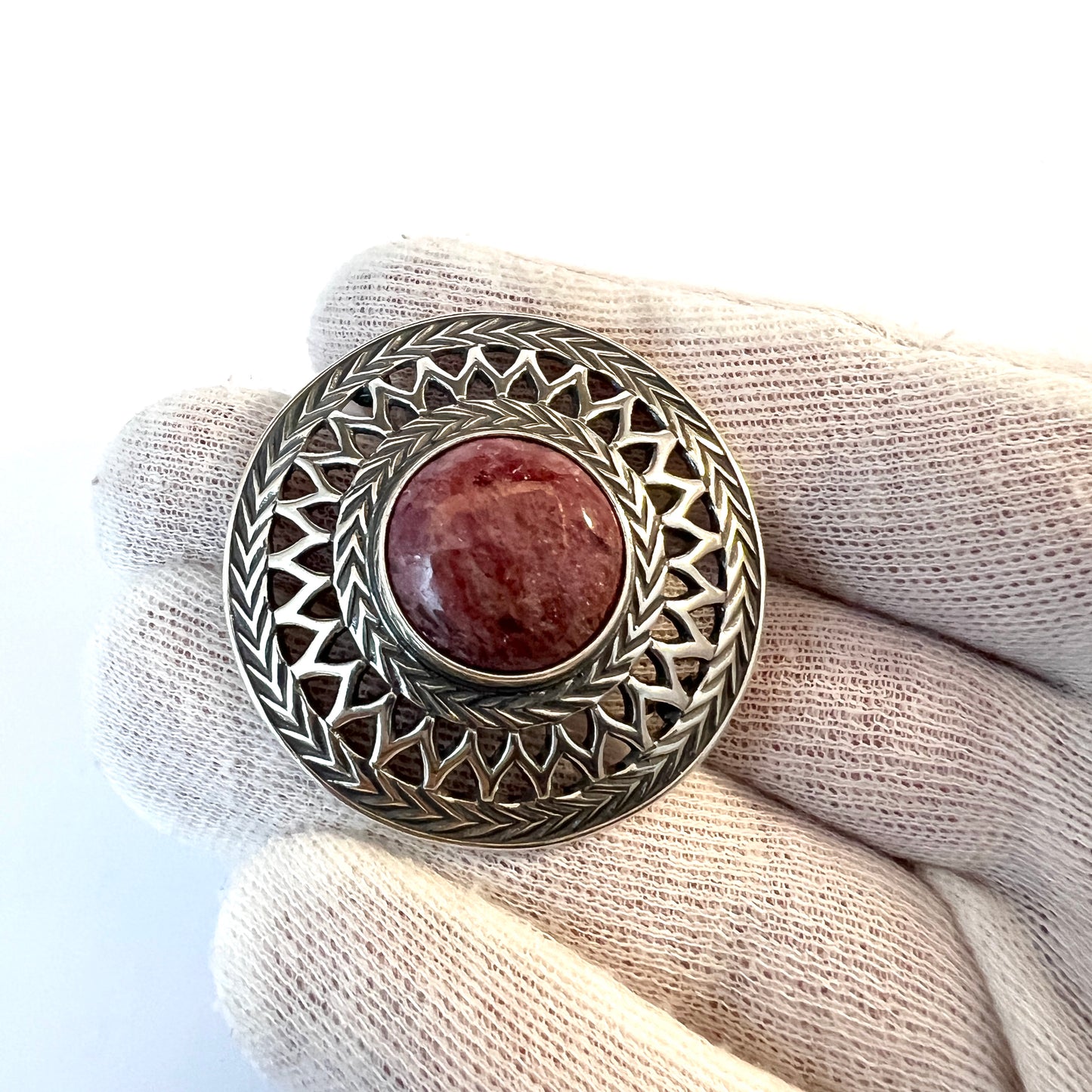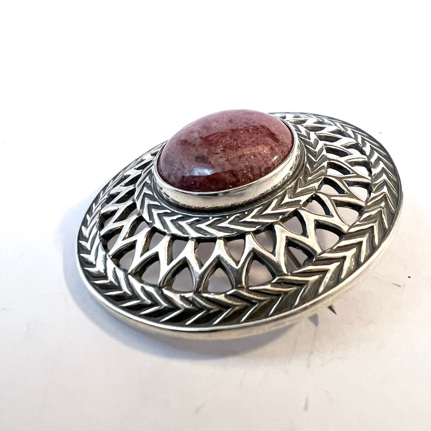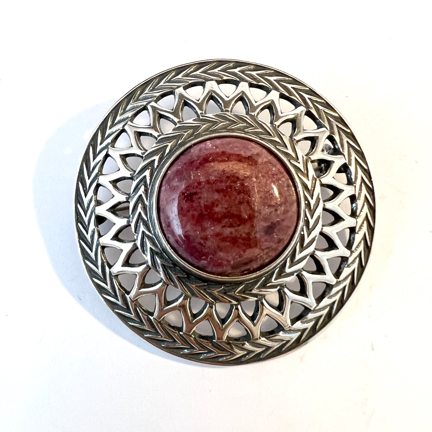 Kalevala Koru, Finland 1988. Vintage Sterling Silver Rhodonite Brooch.