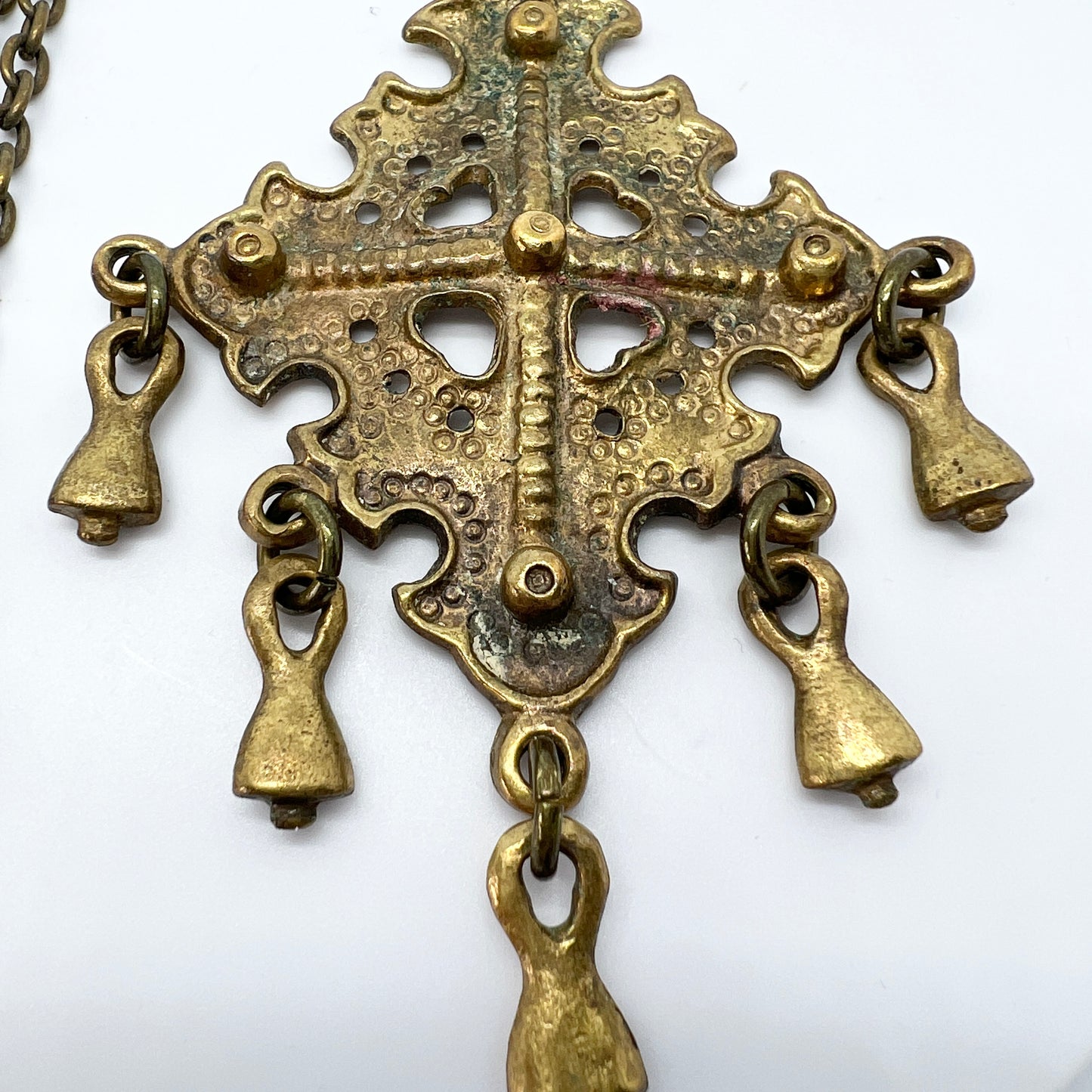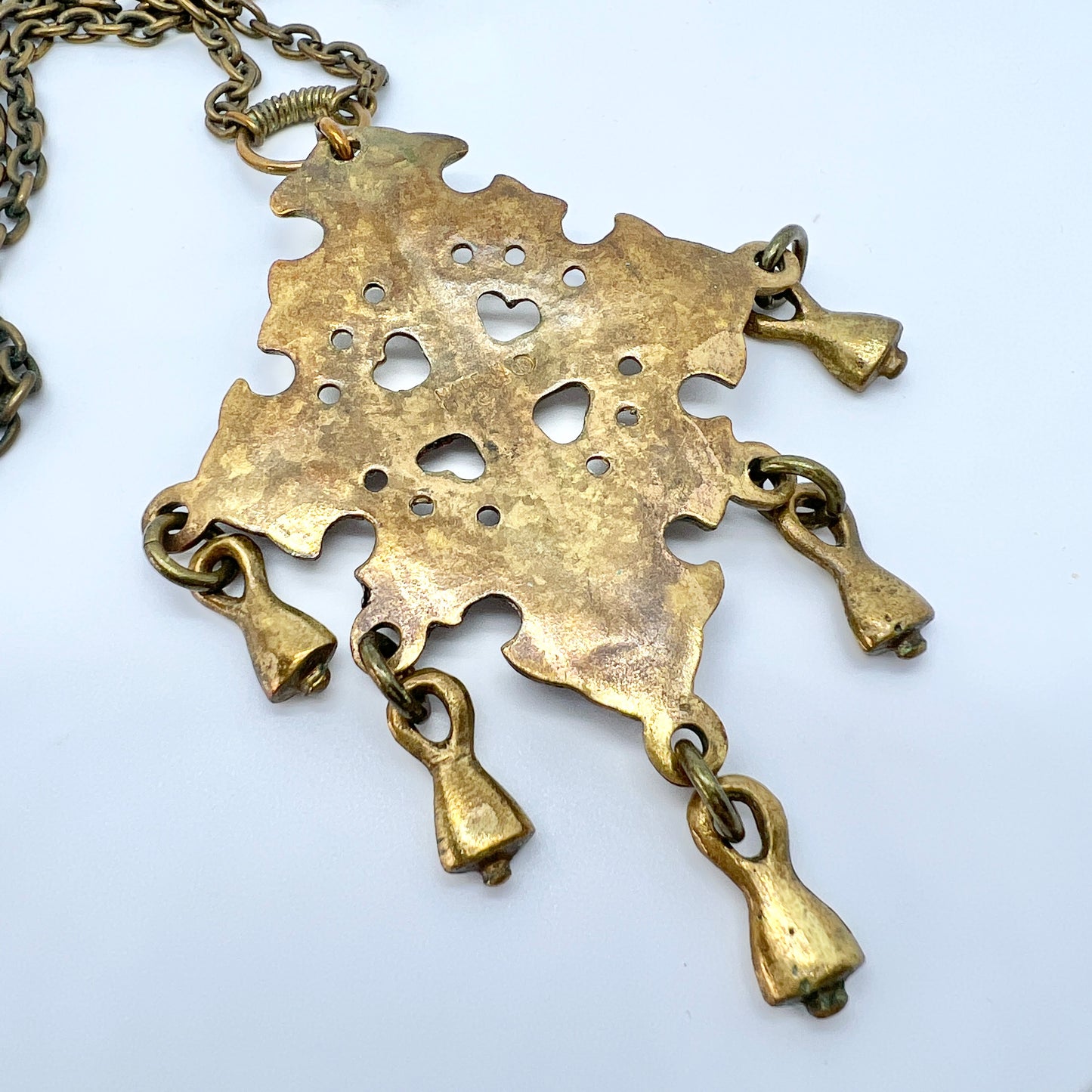 Beautiful and large viintage bronze pendant necklace. Marked for Kalevala Koru, Finland, c 1970s.