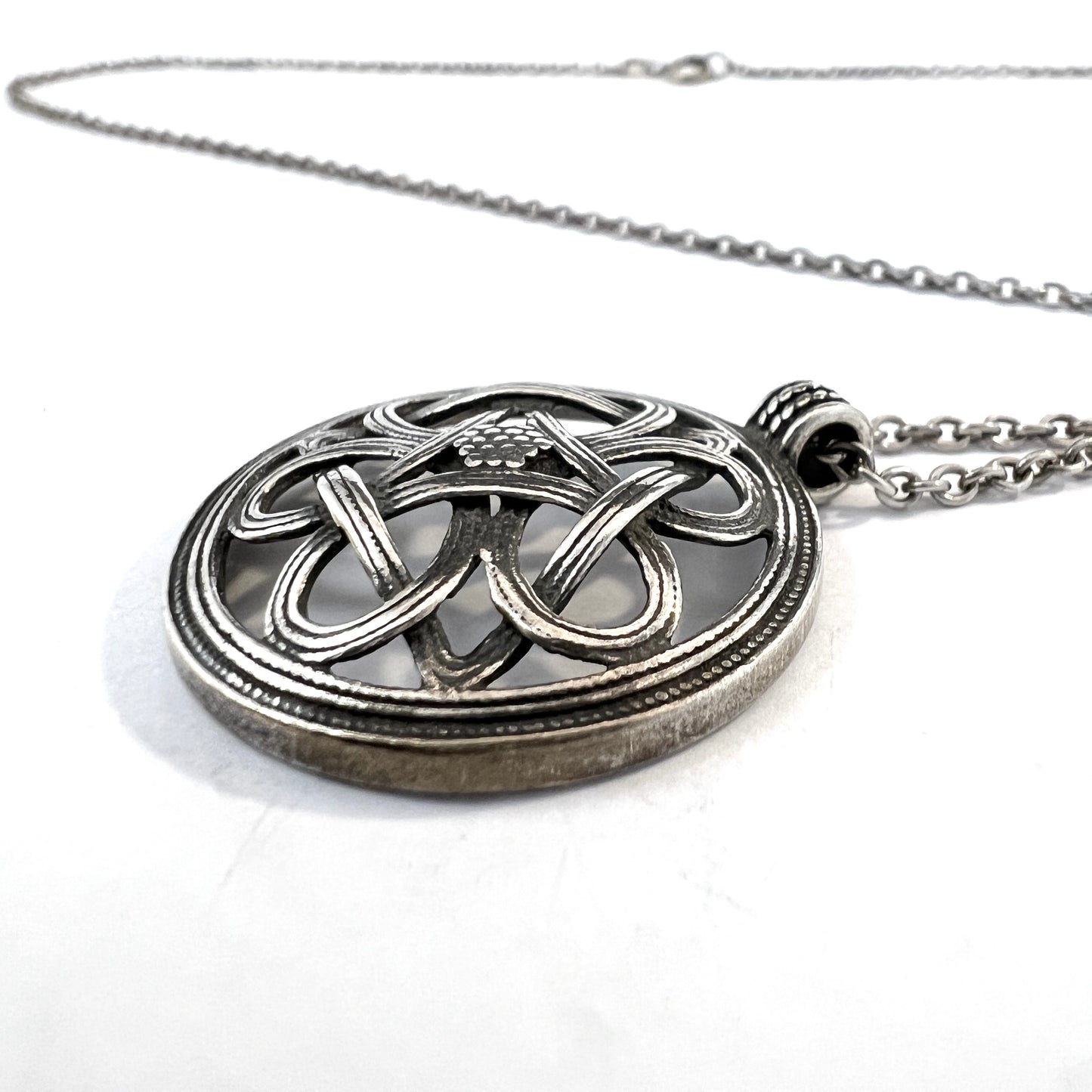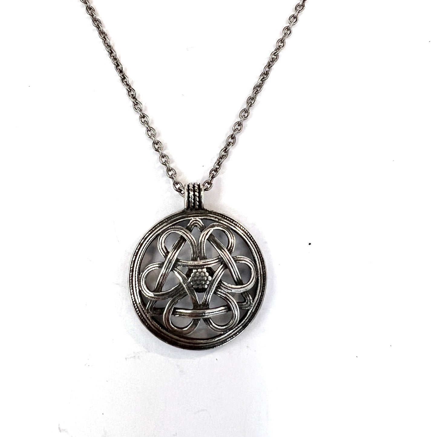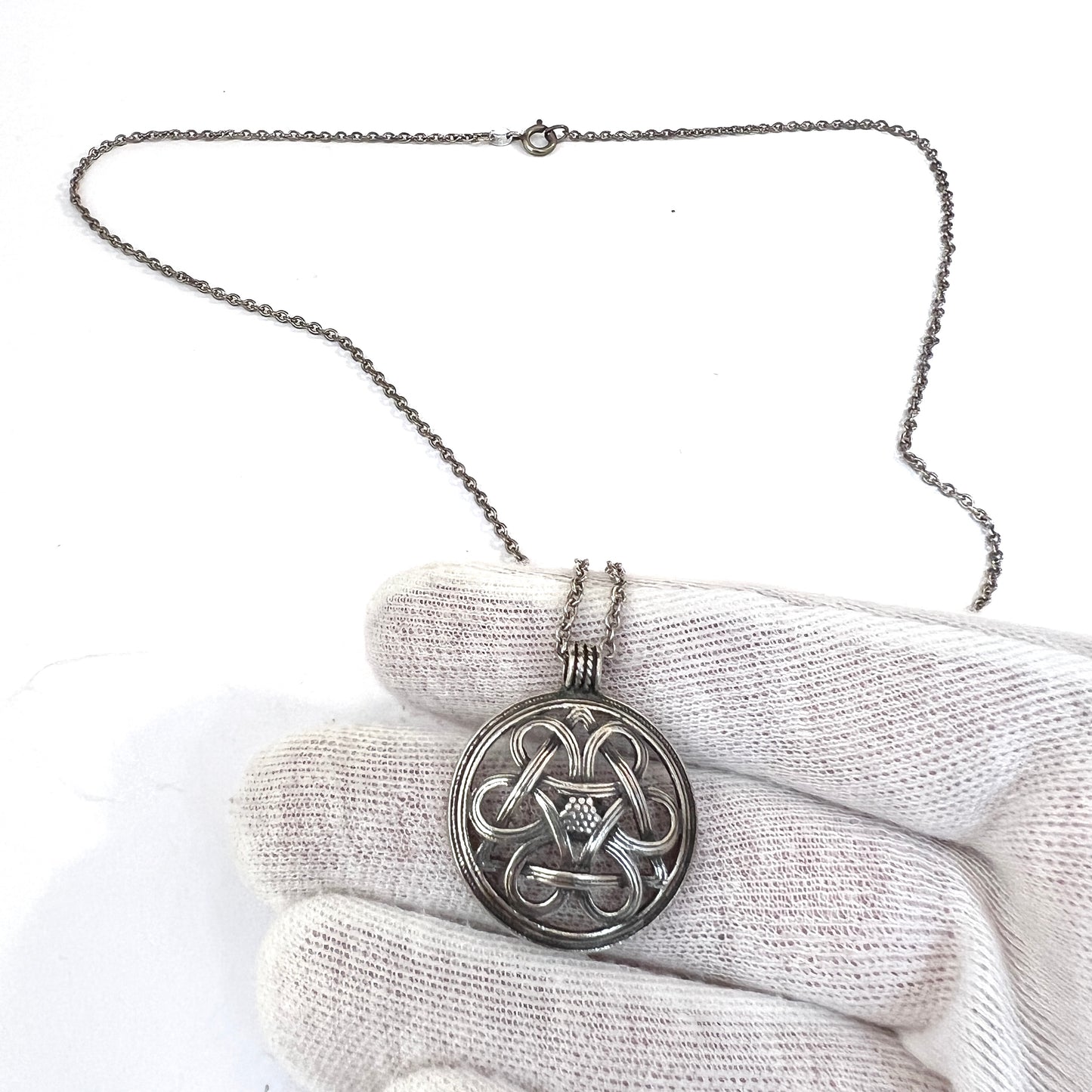Kalevala Koru, Finland. Vintage Sterling Silver Pendant Long Chain Necklace.