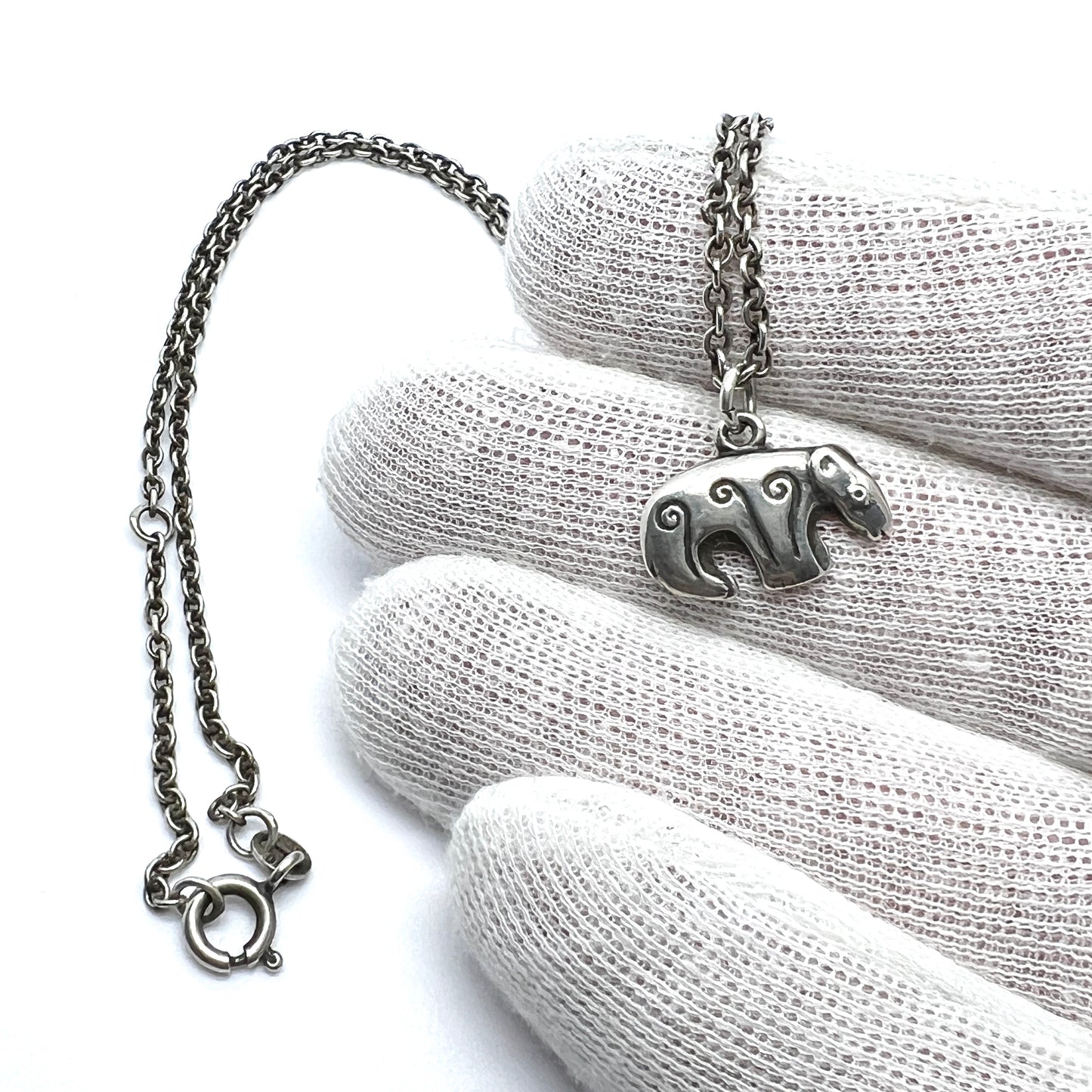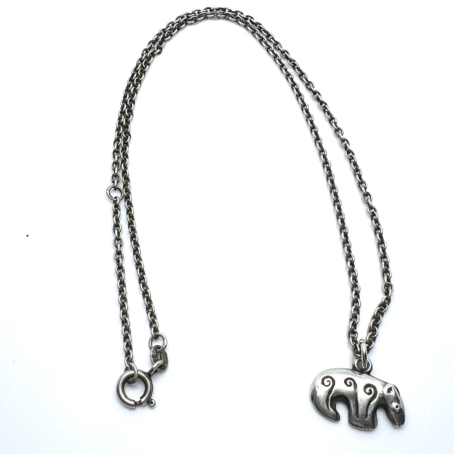 Kalevala Koru, Finland. Vintage Sterling Silver Polar Bear Pendant Necklace.