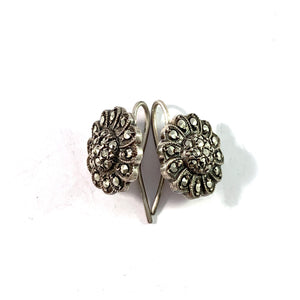 Beautiful vintage mid century sterling silver marcasite flower earrings. Fully hallmarked for Kaplan, Stockholm, Sweden year 1948.