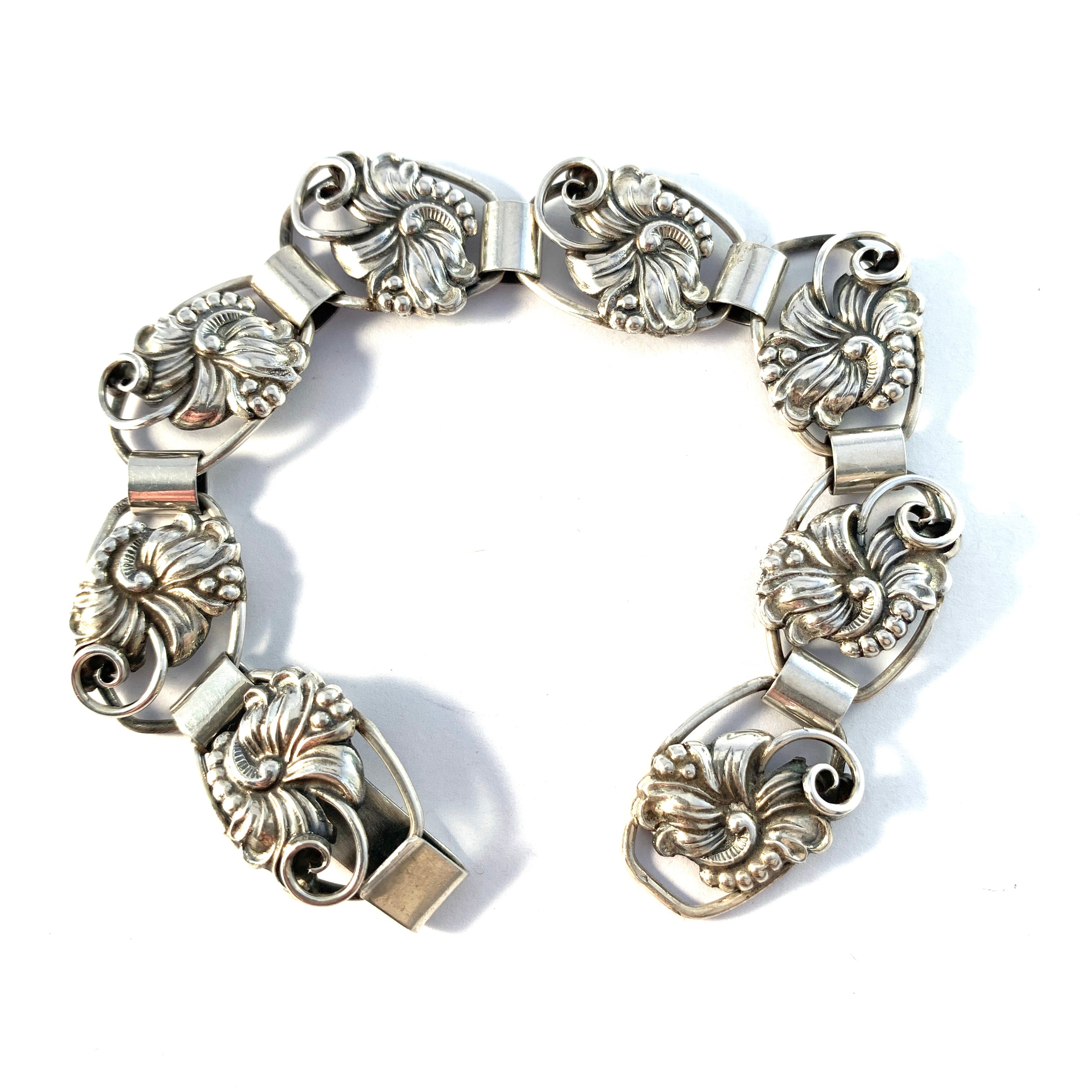 Kaplan, Stockholm 1951. Vintage Mid Century Solid Silver Flower Link Bracelet.