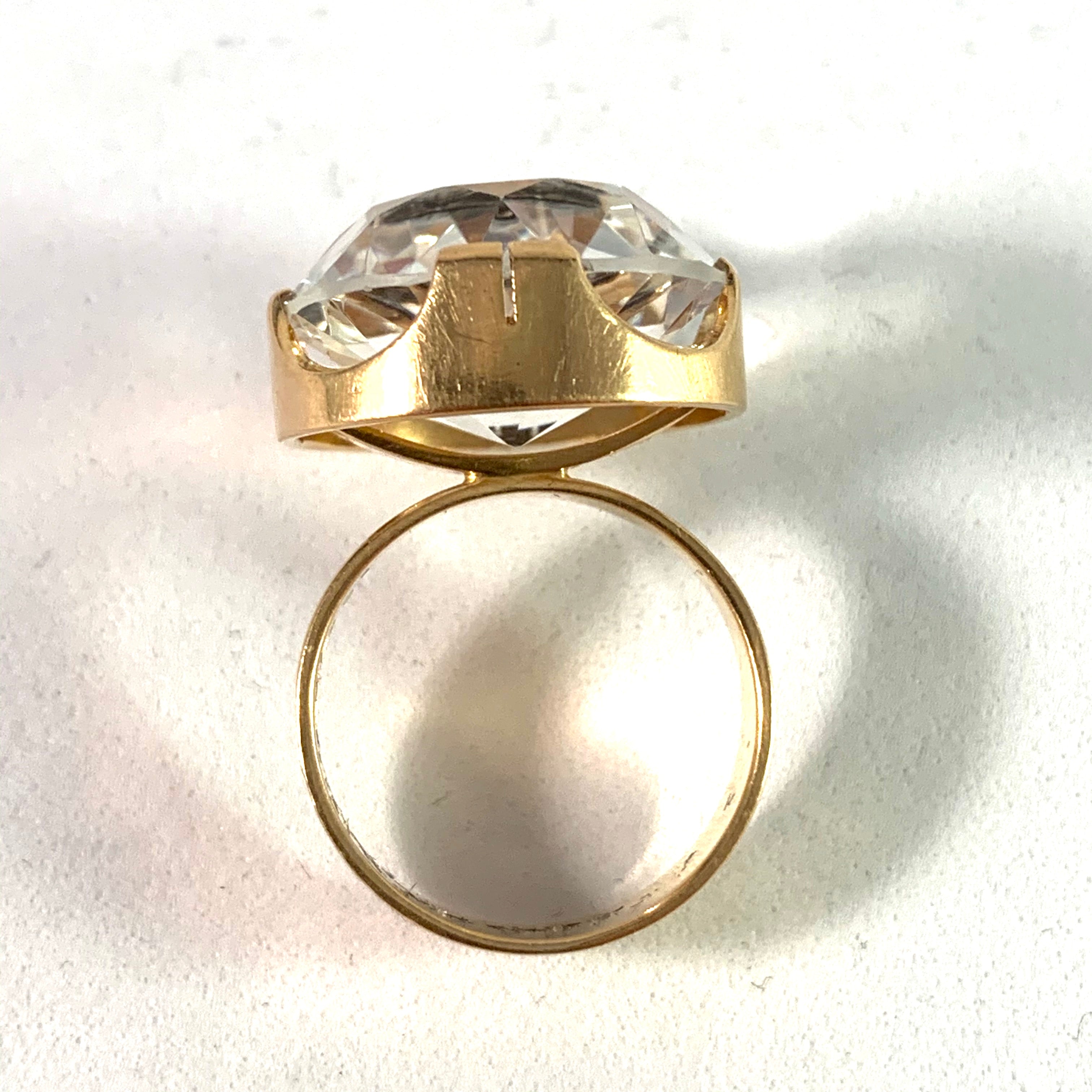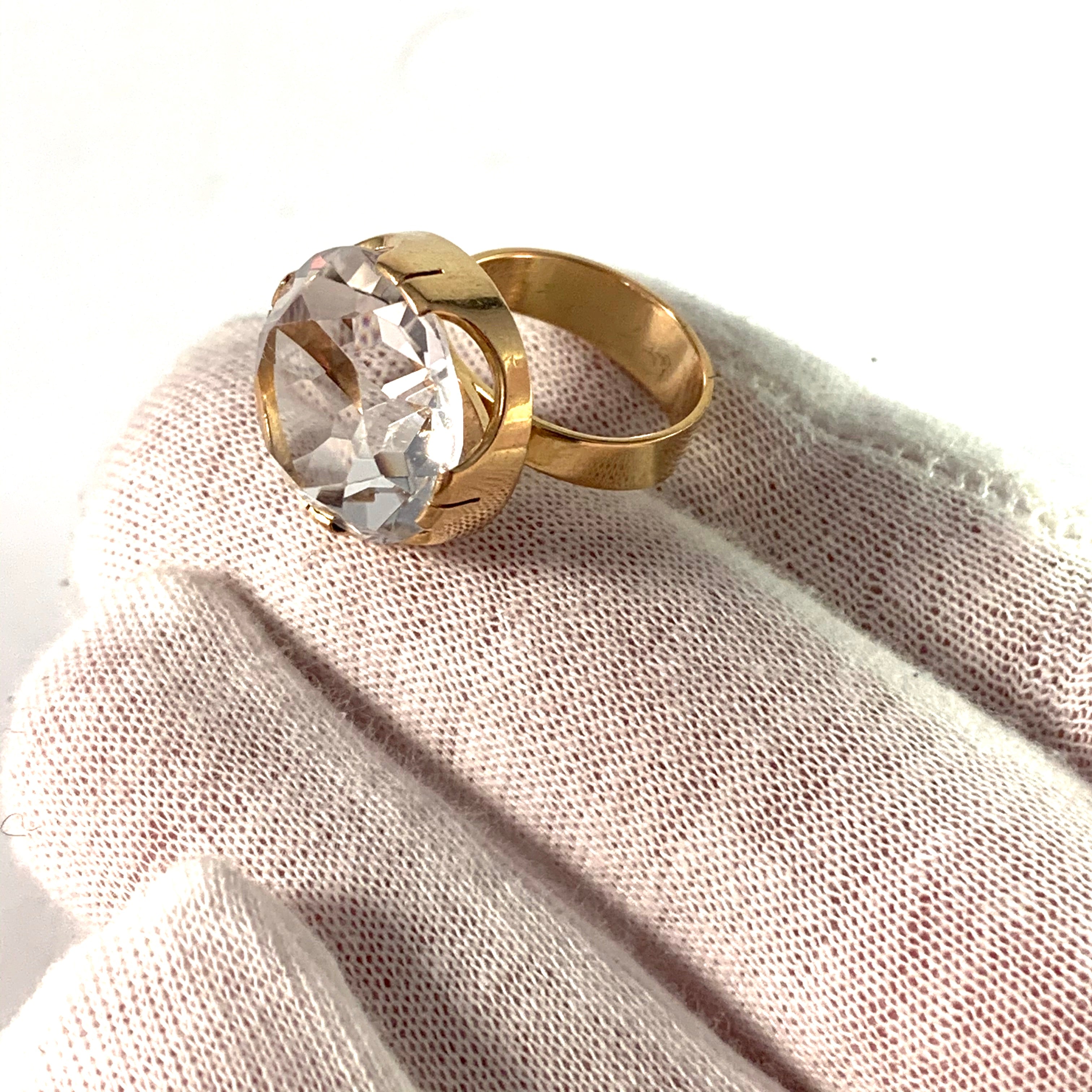 Wonderful modernist 18k gold rock crystal ring. Fully hallmarked for Kaplan, Stockholm, Sweden year 1969.