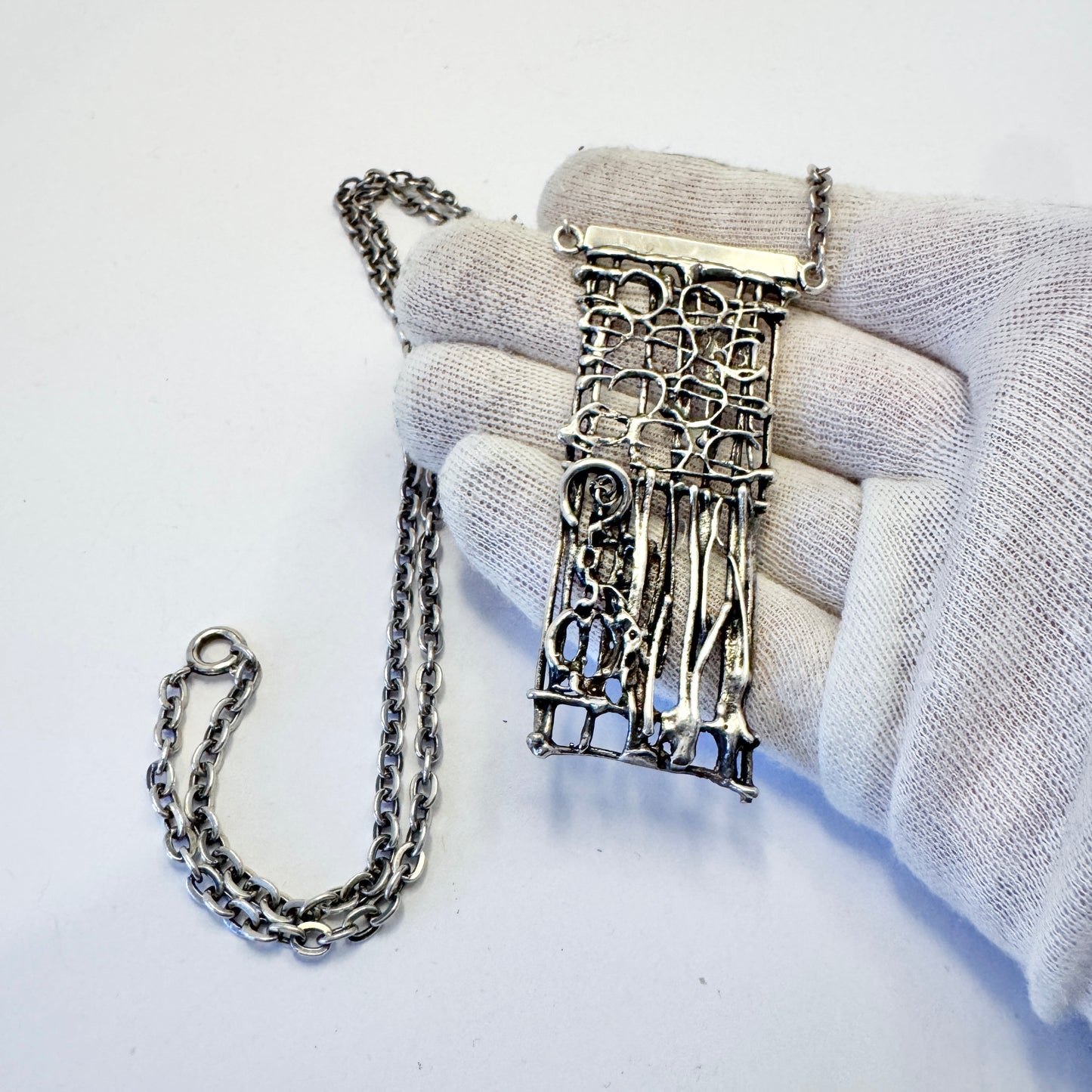 Kaplan, Stockholm 1969. Bold Vintage Modernist Sterling Silver Pendant Necklace.
