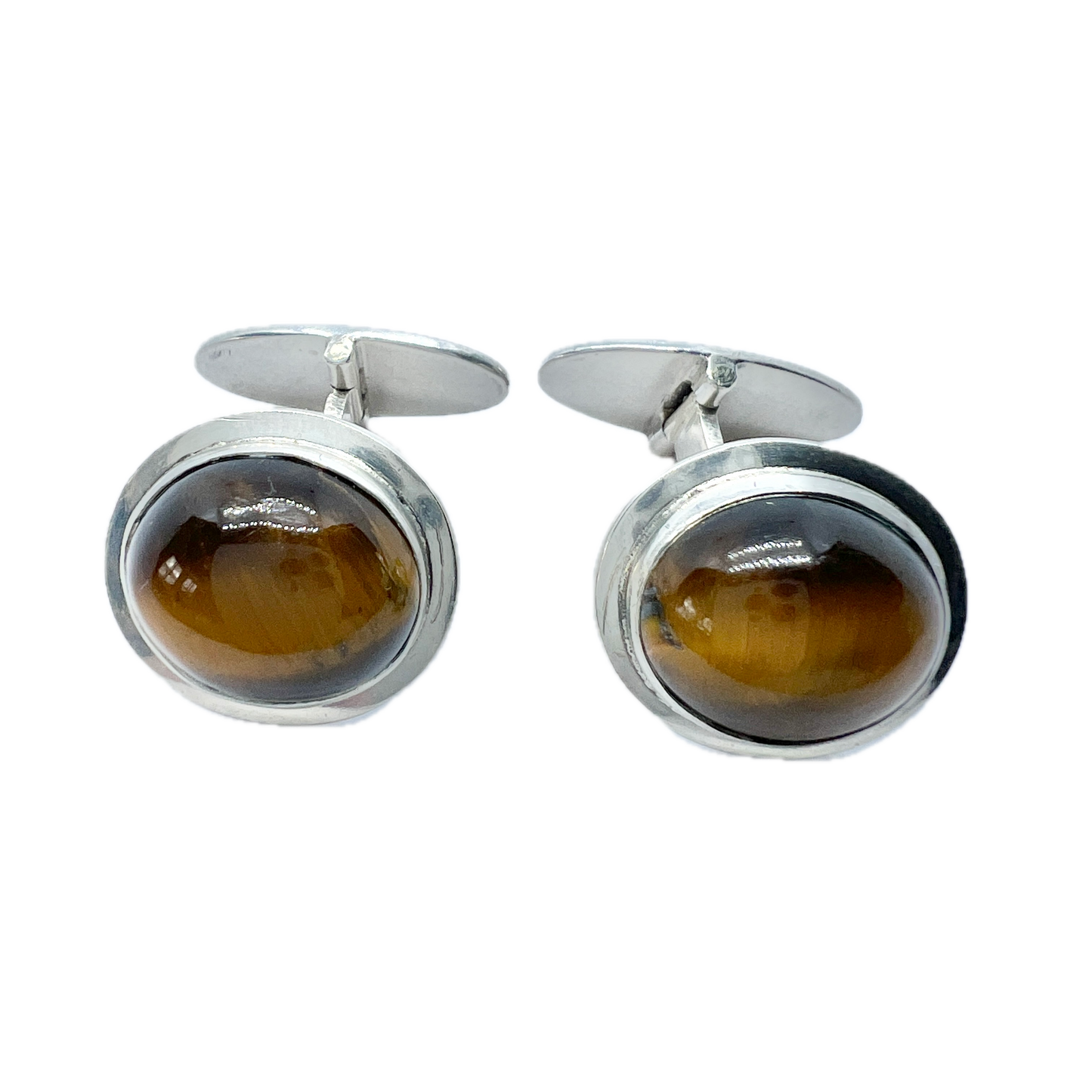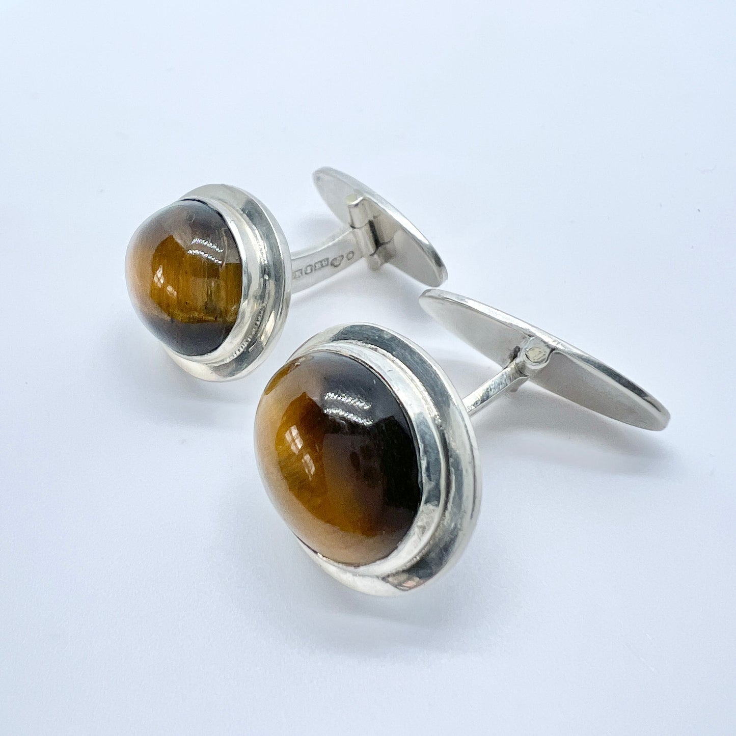Kaplan, Sweden 1952 Vintage Sterling Silver Tiger's Eye Cufflinks