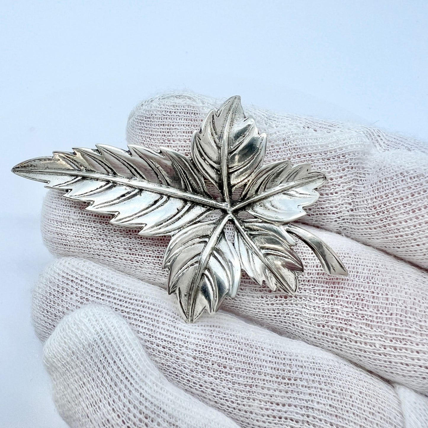Kaplan, Sweden 1953 Vintage Solid Silver Leaf Brooch.