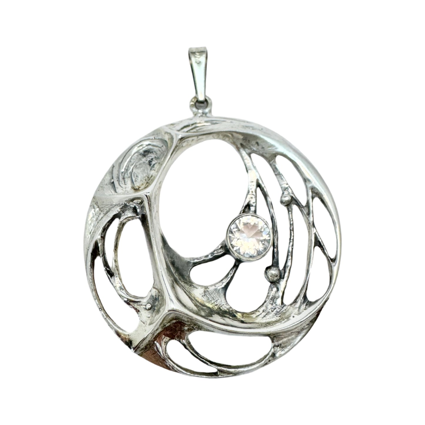 Karl Laine for Sten & Laine, Finland 1978. Vintage Sterling Silver Rock Crystal Pendant.