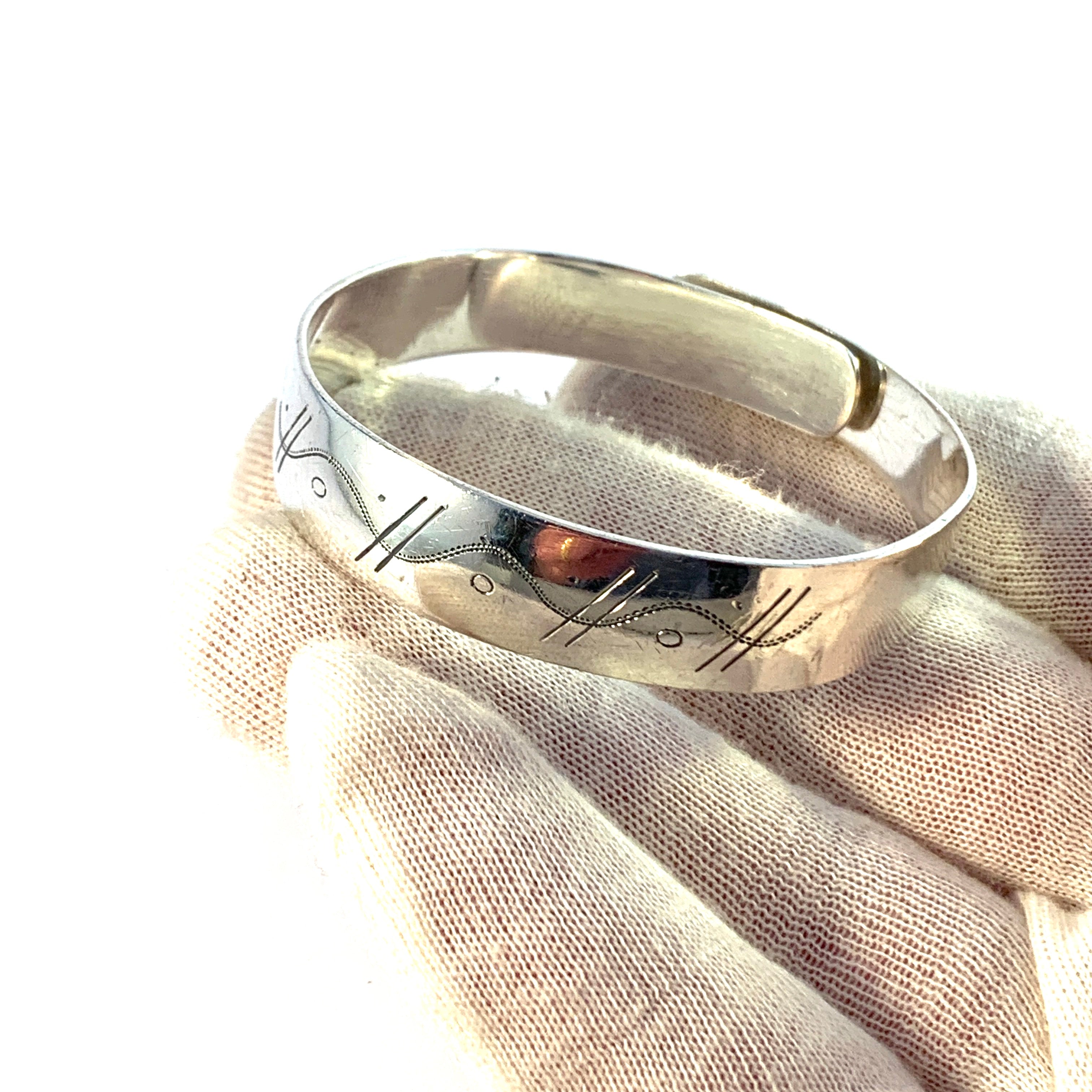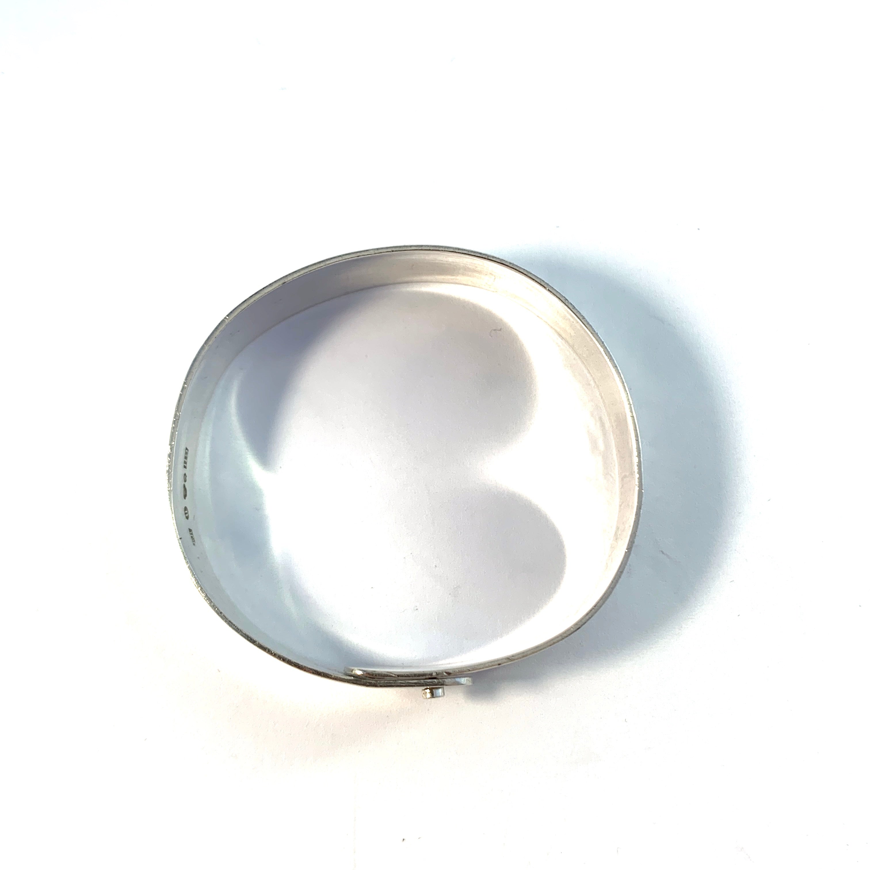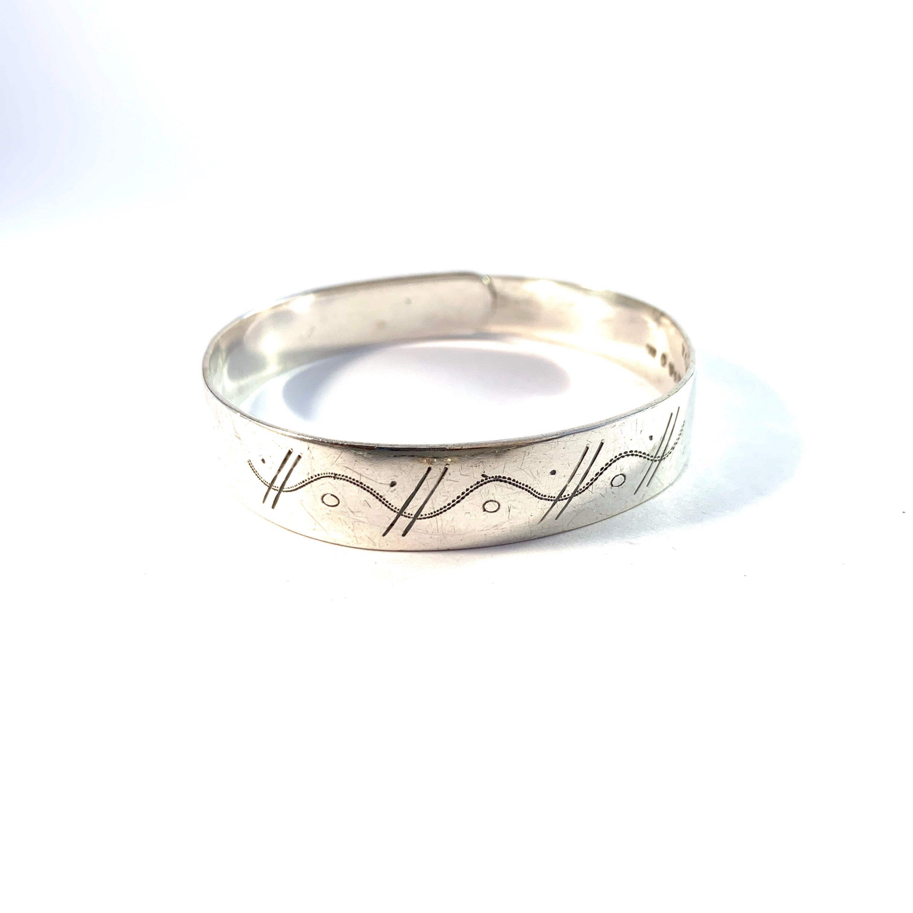 Very charming vintage mid century modern sterling silver open/close bangle bracelet. Hallmarked for Kjellin, Sweden year 1958.