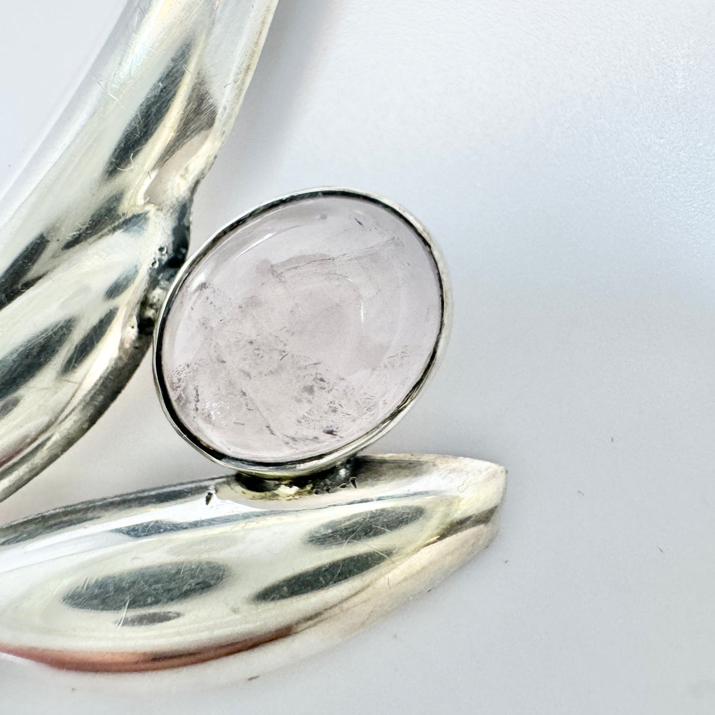 Beautiful vintage solid 813 silver rose quartz brooch. Hallmarked for Kultasepat Salovaara, Finland c 1960s.