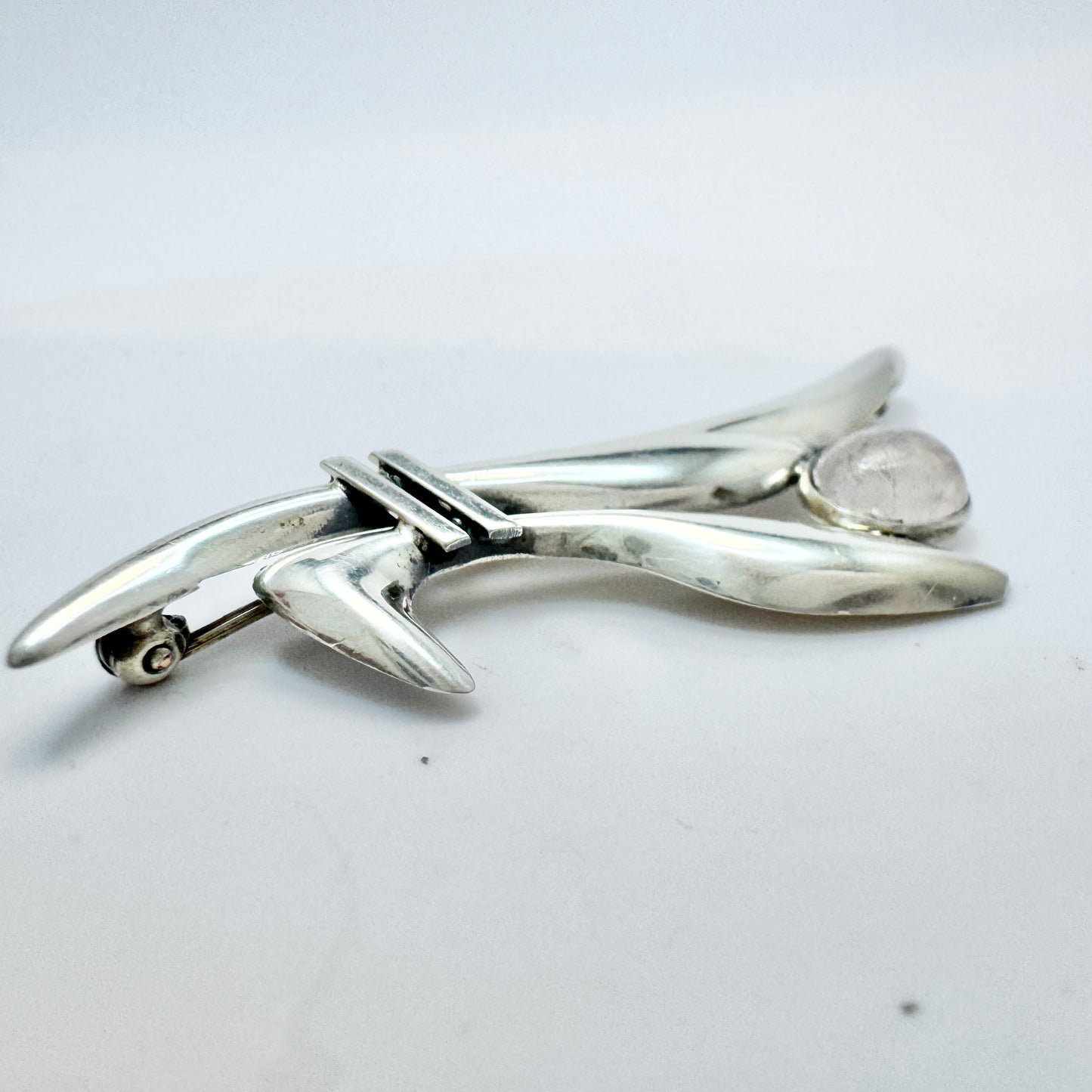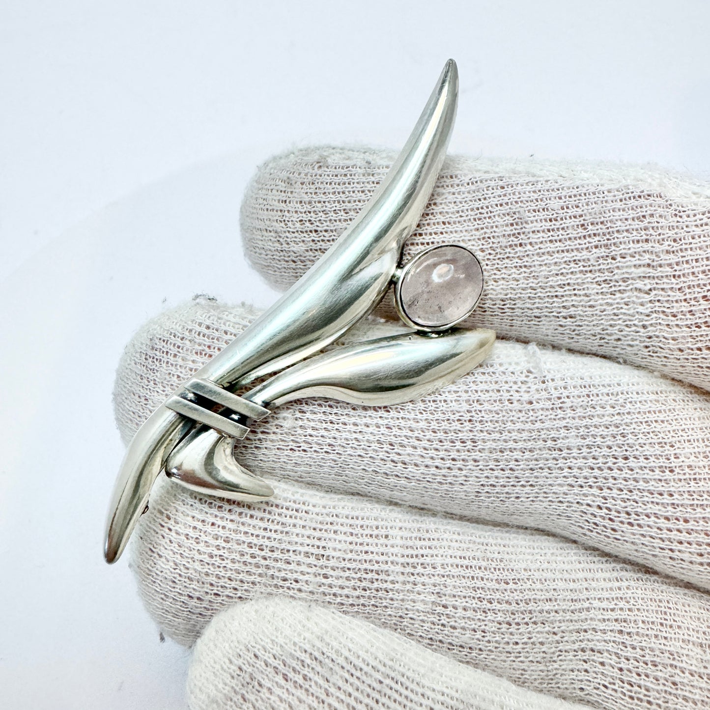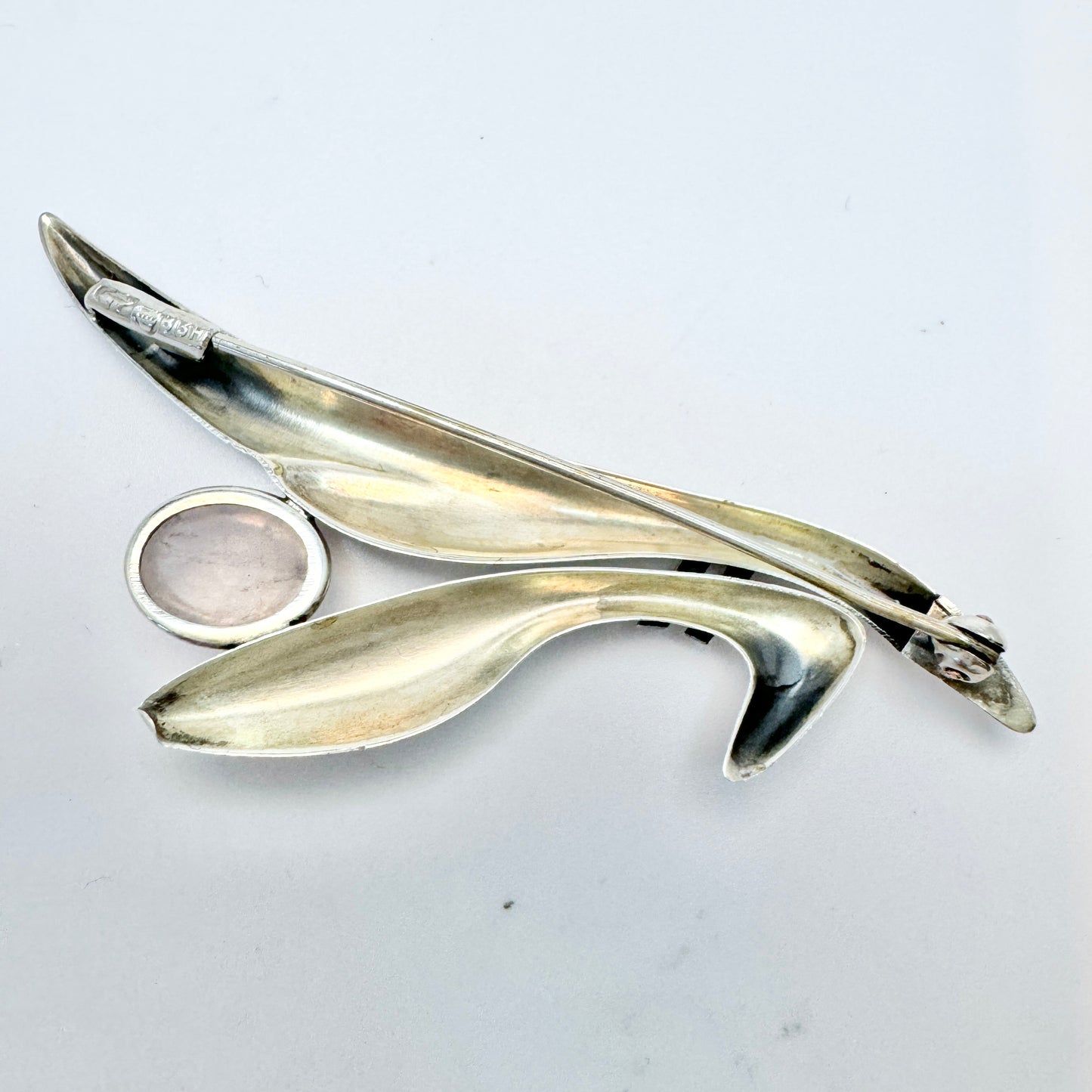 Kultasepat Salovaara, Finland c 1960s Solid Silver Rose Quartz Brooch.