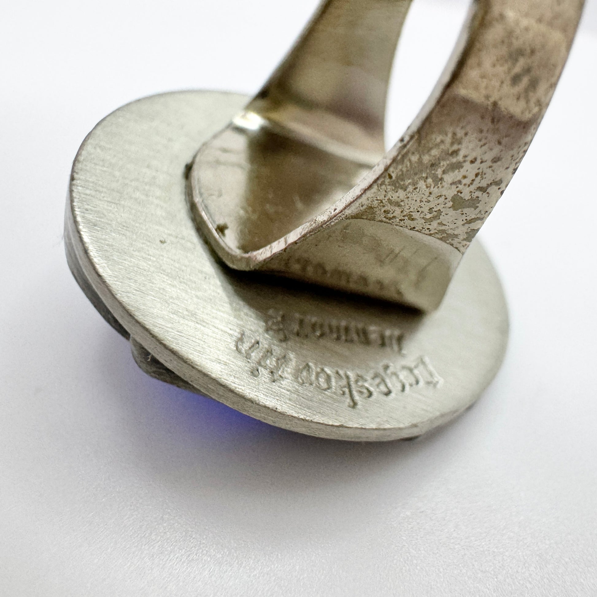 Charming vintage pewter blue glass ring. Marked for Lageskov Tin Denmark ca 1970s.